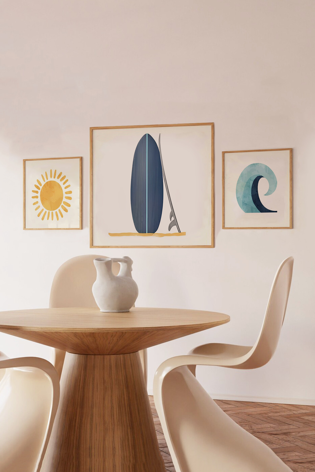 🏄♂️ Güneş - Sörf Tahtası - Dalga Temalı 3’lü MDF Tablo Seti (23x23 cm & 42x42 cm) 4242118