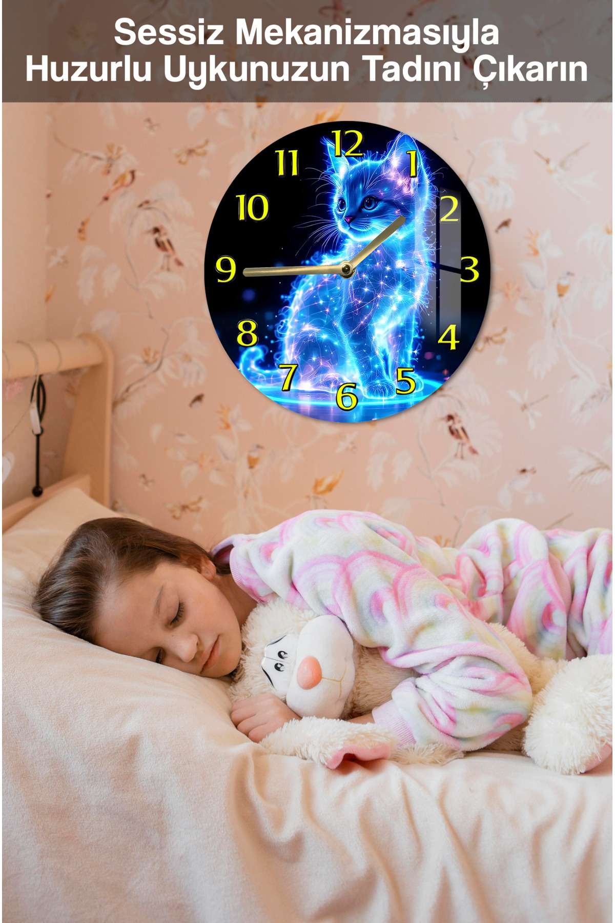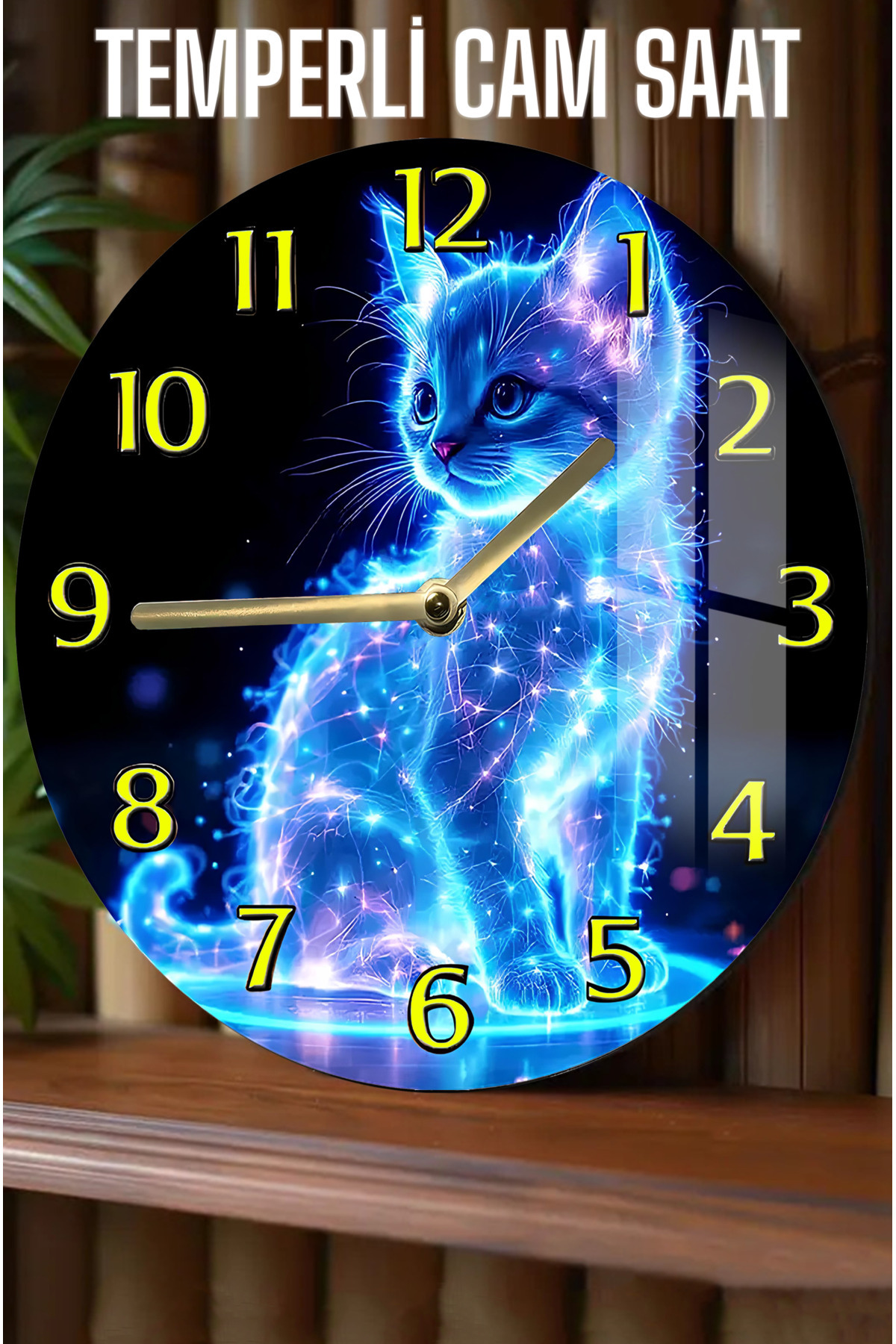 IŞIKLI KEDİ DESENLİ TEMPERLİ CAM SAAT – 33 CM CSDW025