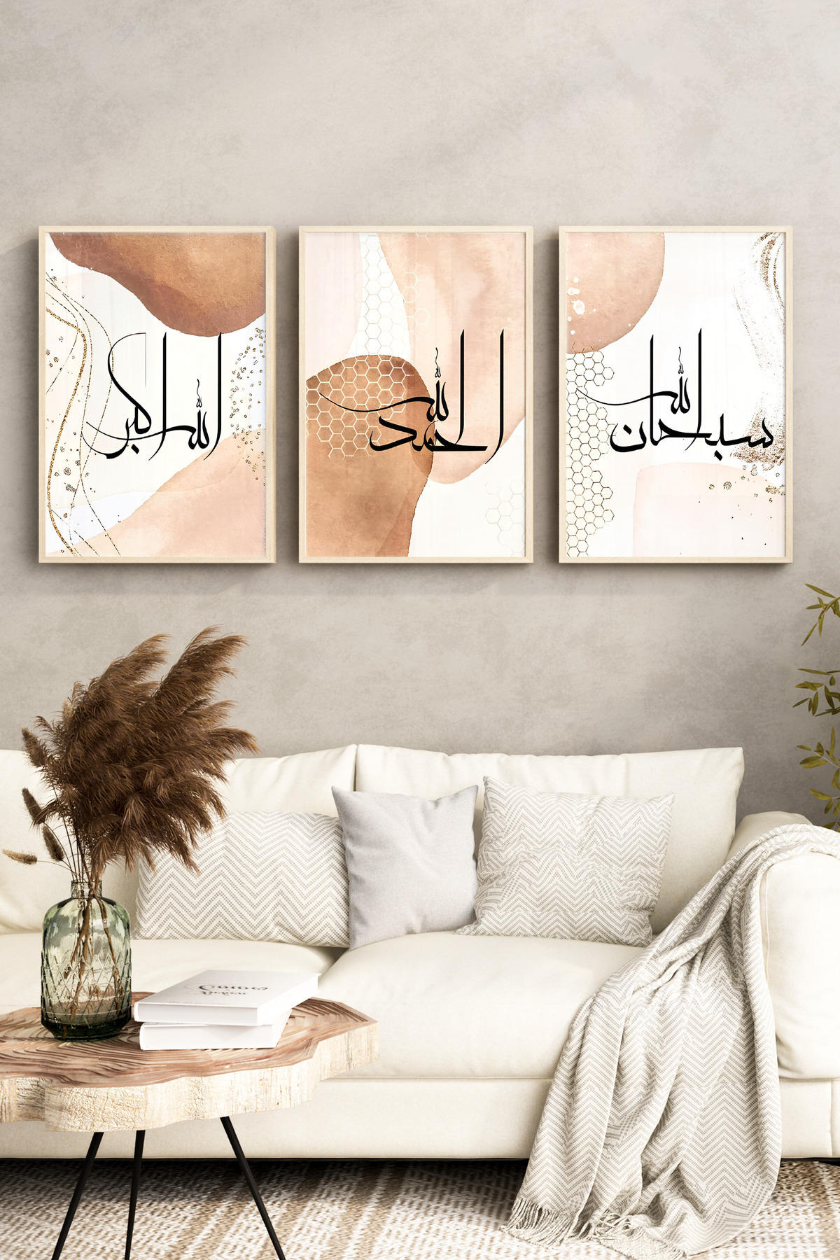 ✨ İslami Hat Sanatı ve Modern Soyut Desenlerin Buluştuğu 3’lü Tablo Seti✨ CRV1083