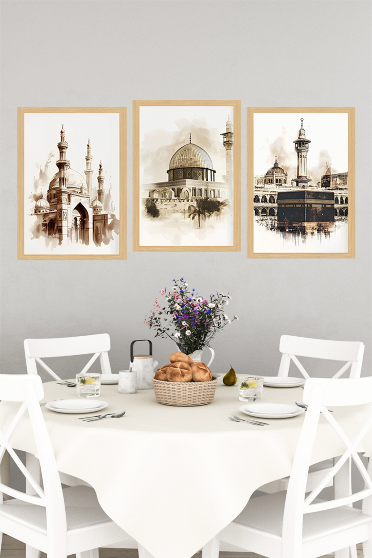 🕋 İslami Mabetler Temalı 3'lü Çerçeve Görünümlü Tablo Seti 🌟 CRVS1079