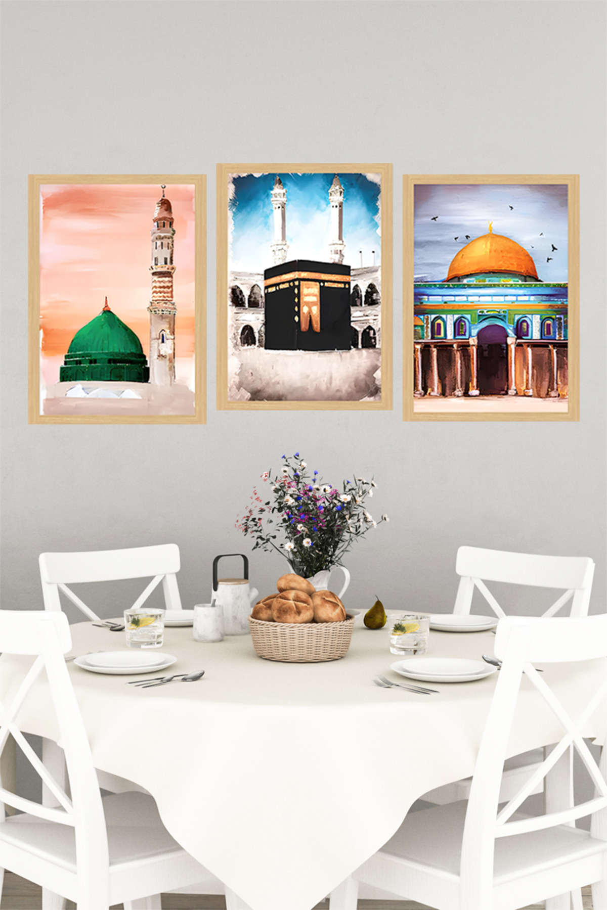 🕋 İslam’ın Kalbinden İlham Alan 3’lü Çerçeve Görünümlü Tablo Seti 🌙 CRVS1232