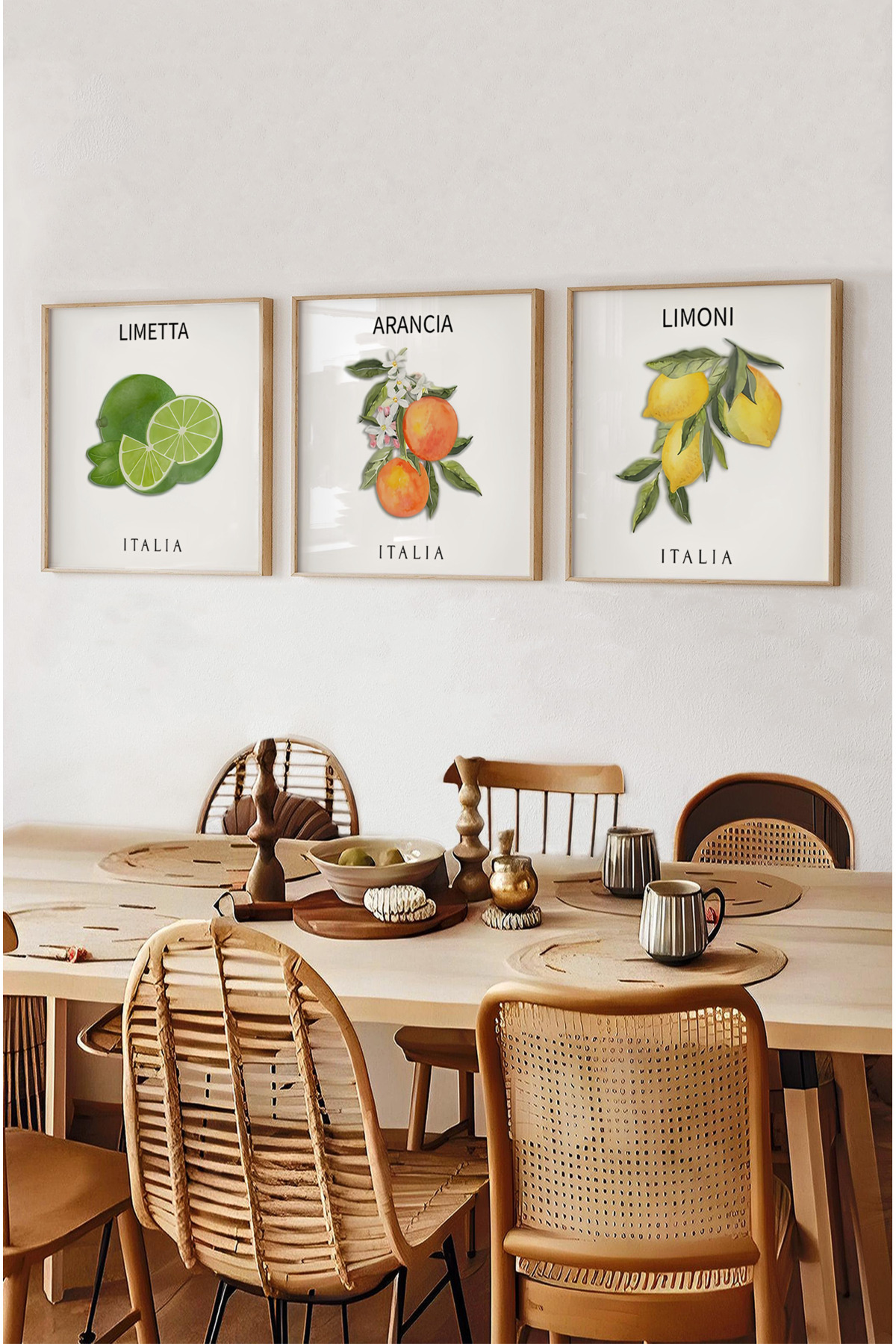 İtalyan Meyve Temalı 3’lü Tablo Seti | Limetta – Arancia – Limoni | UV Baskı Ahşap Çerçeve KR4044