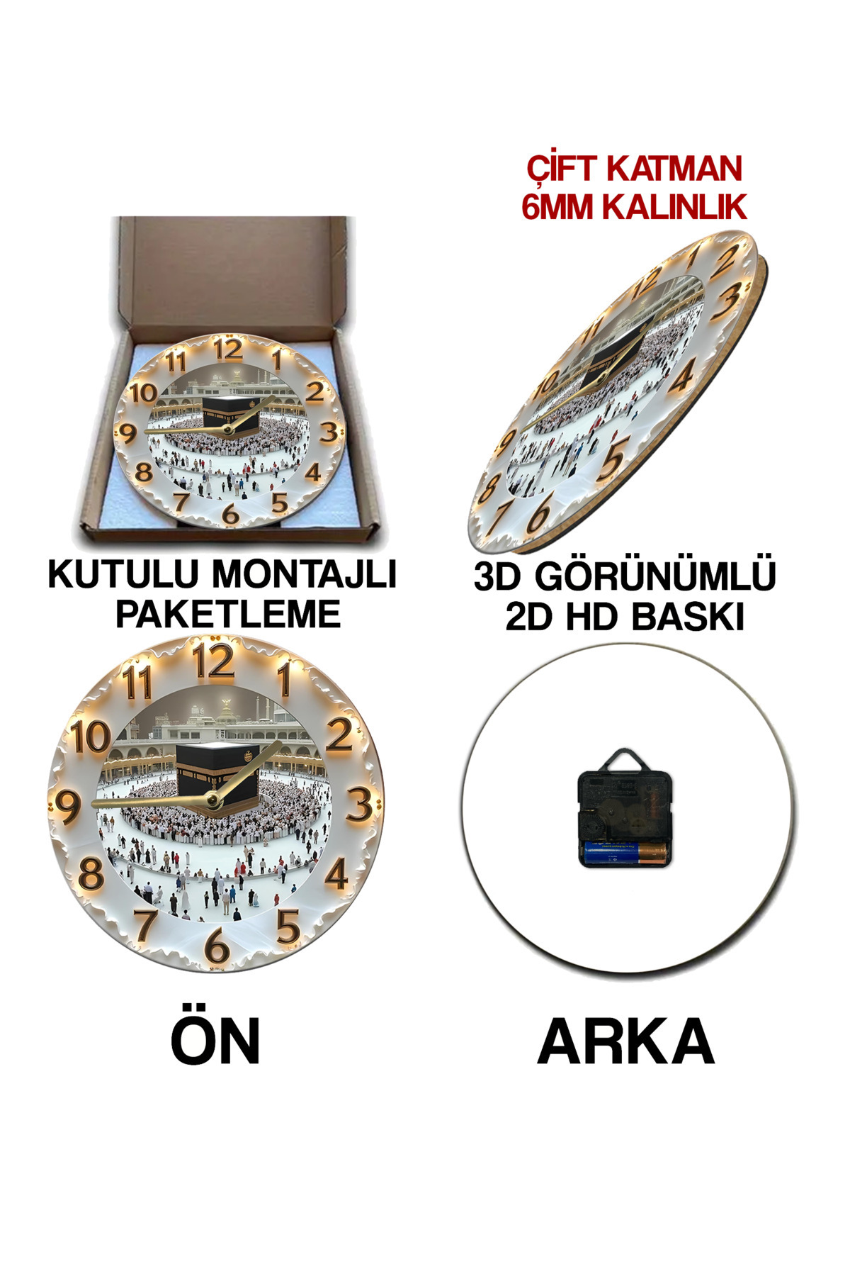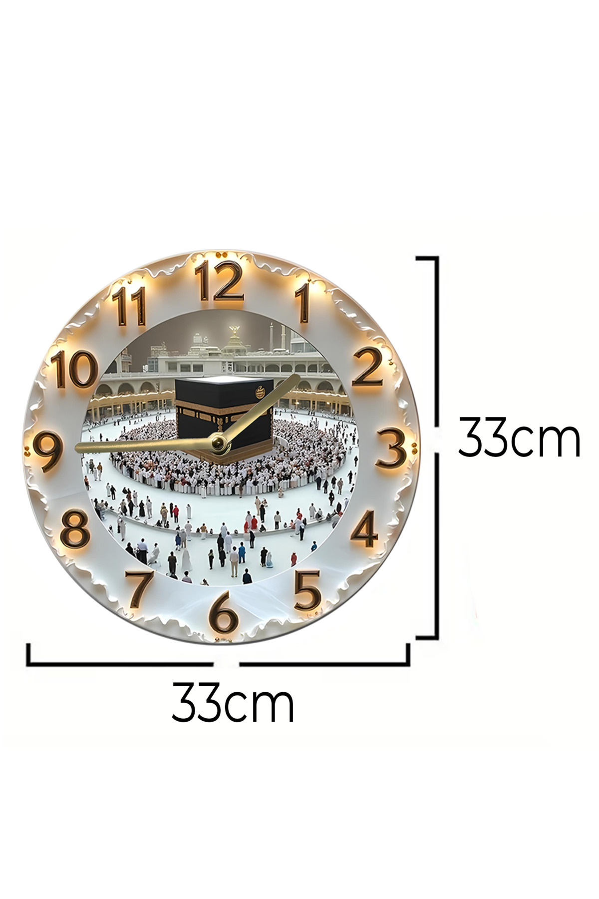 🕋 Kâbe Manzaralı 3D Görünümlü MDF Duvar Saati – 33 cm ✨ sdw92