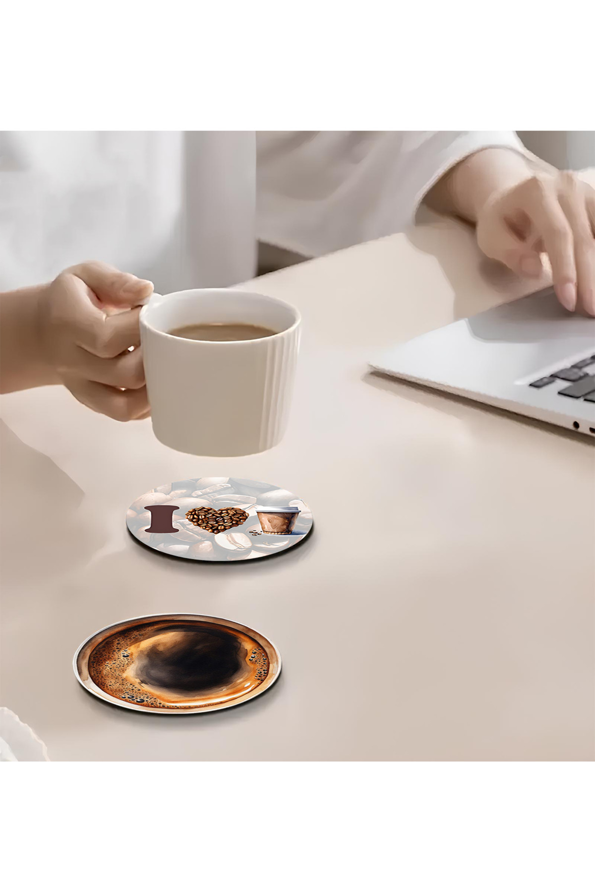 ☕ Kahve Aşkına Özel 6’lı MDF Bardak Altlığı Seti – 10 cm BRD-037