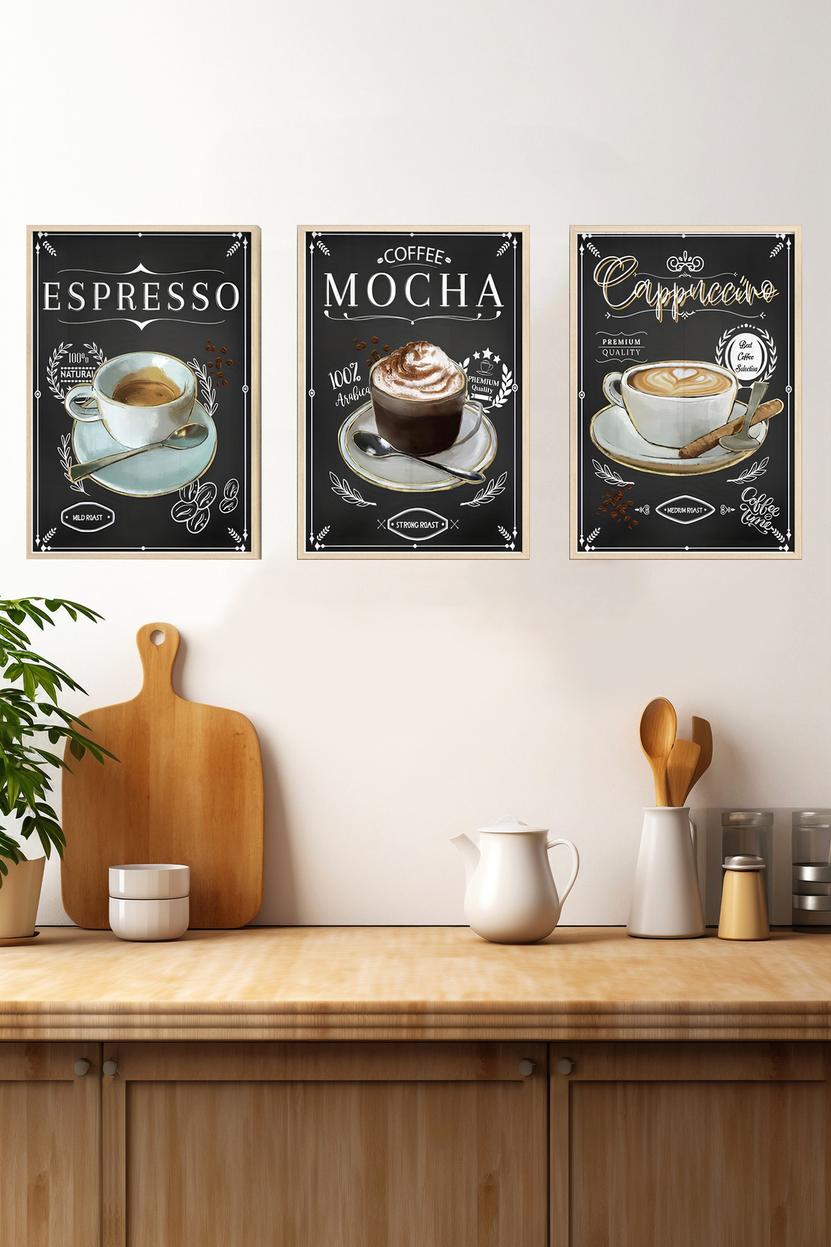 ☕ Kahve Lezzetleri – Espresso, Mocha ve Cappuccino Çerçeveli Tablo Seti (3'lü) CRV1021
