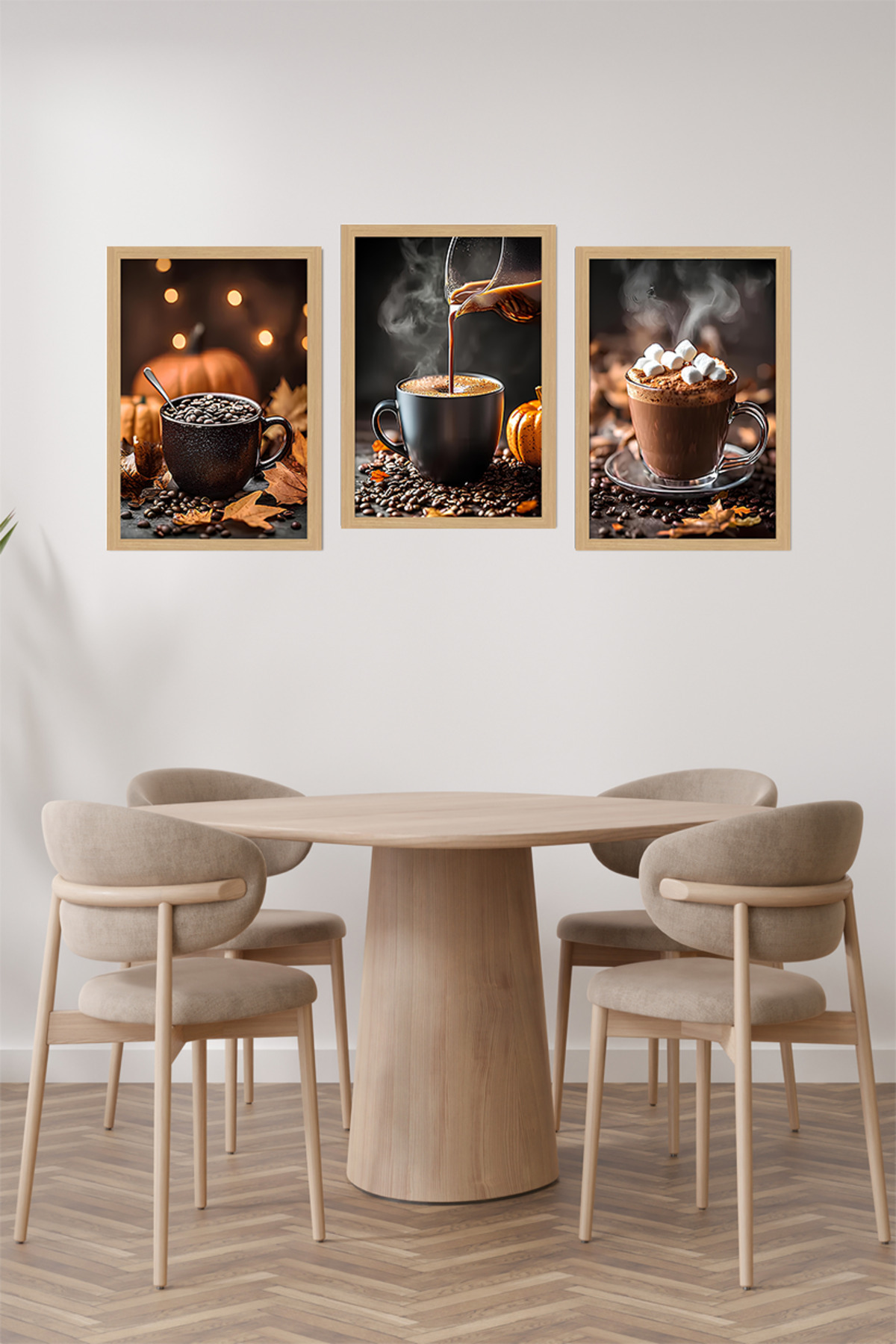 ☕ Kahve Temalı 3'lü MDF Çerçeve Görünümlü Tablo Seti - 13x17 | 21x30 | 30x40 cm CRVS1014