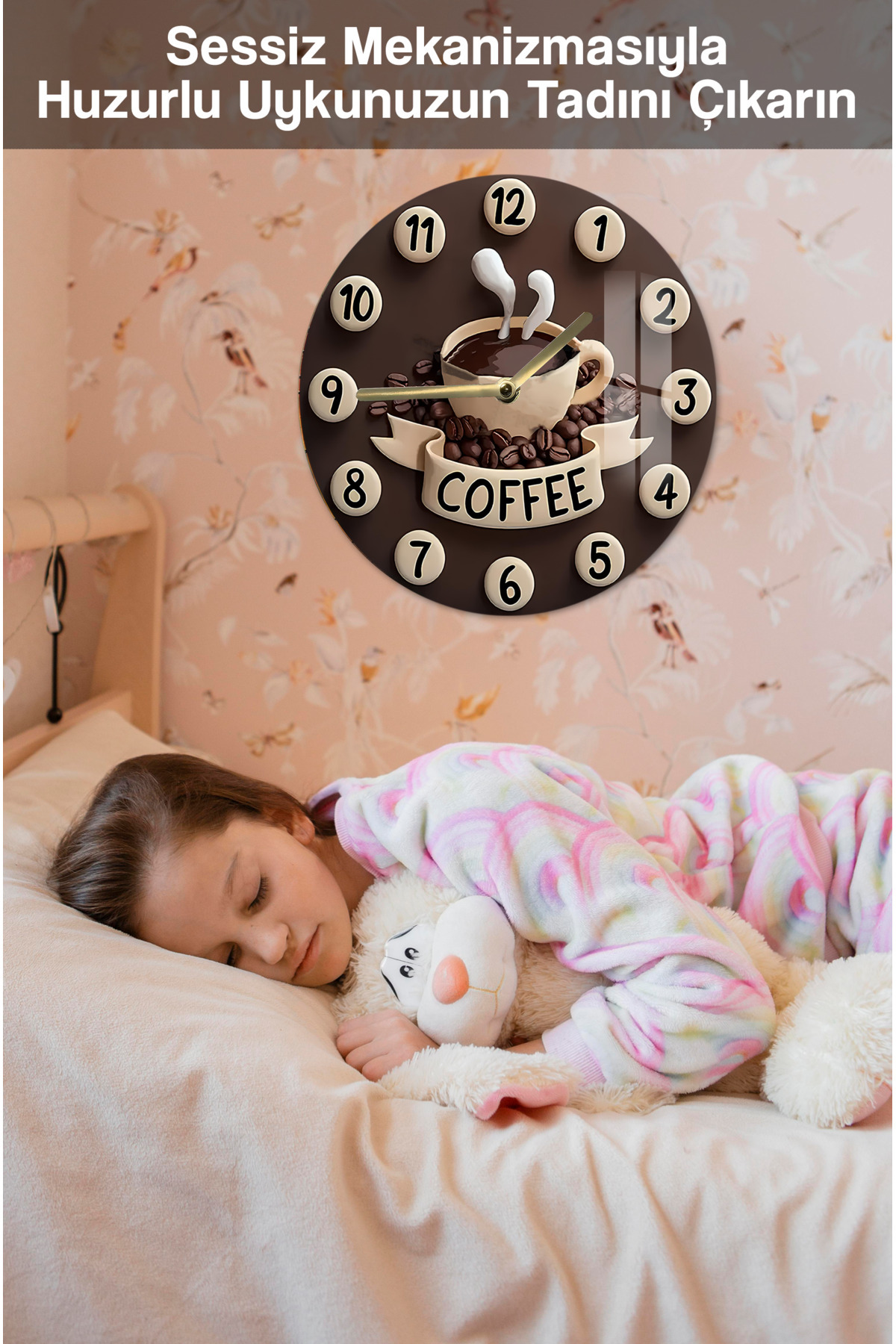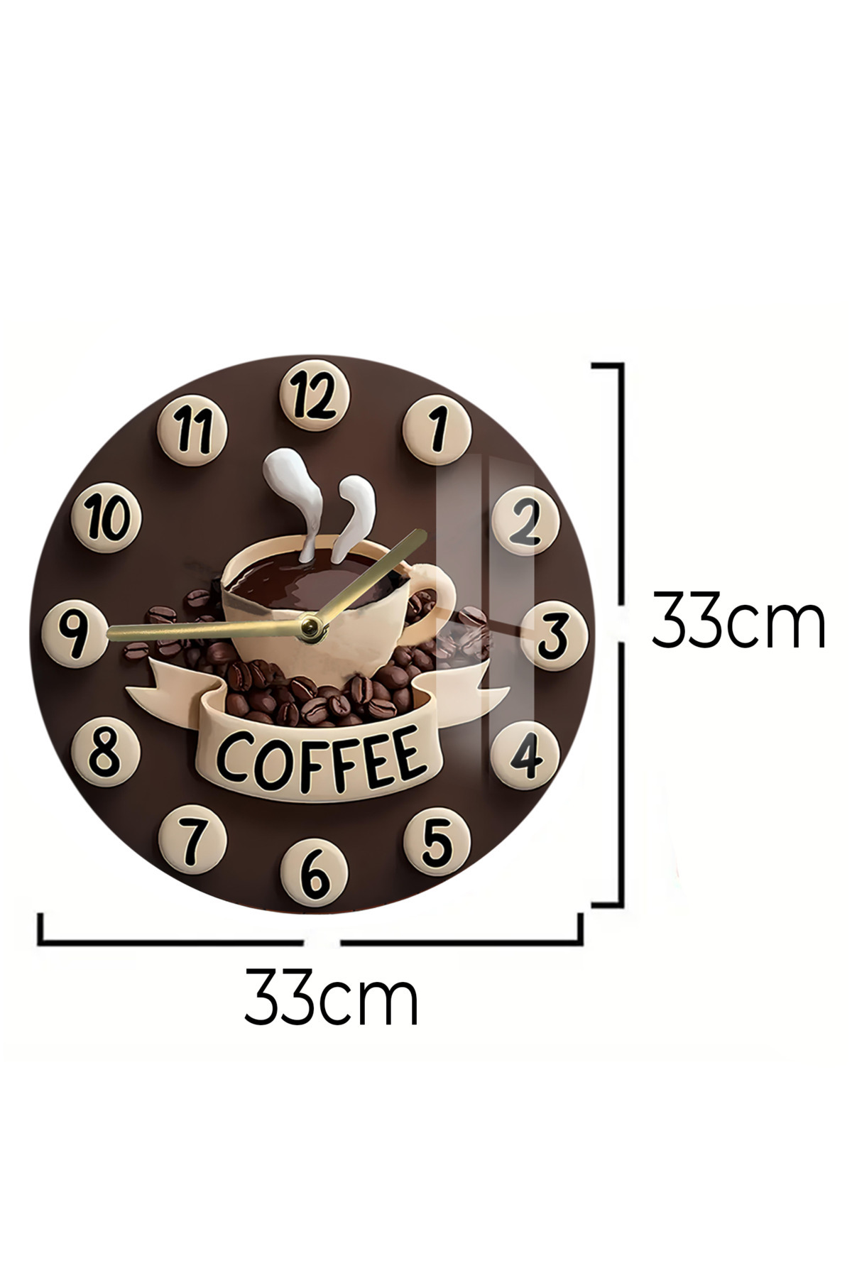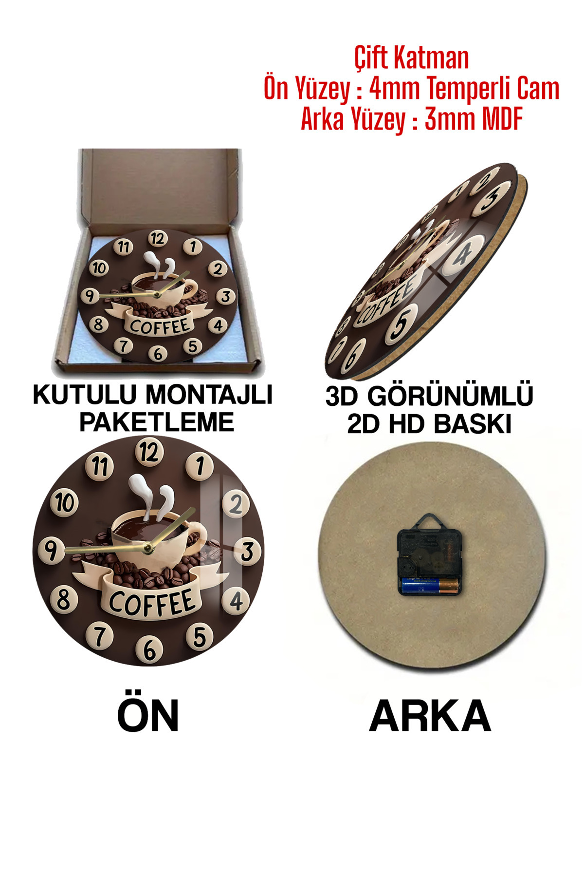 Kahve Tutkunlarına Özel Şık 3D Görünümlü Temperli Cam Saat – 33 cm CSDW331