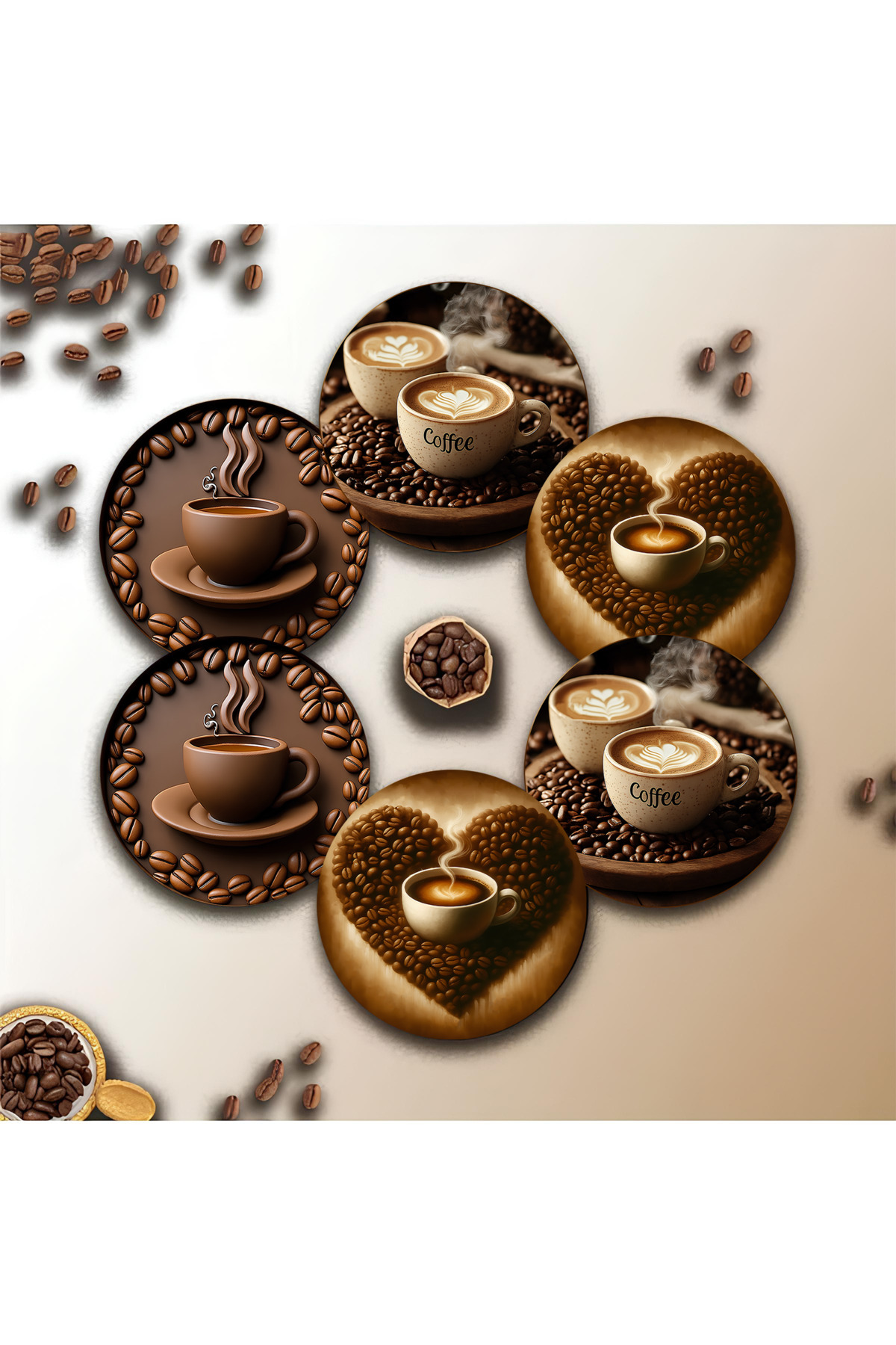 🟤 KAHVE TUTKUNLARINA ÖZEL TASARIM – 6’LI MDF BARDAK ALTLIĞI SETİ ☕️ BRD-024