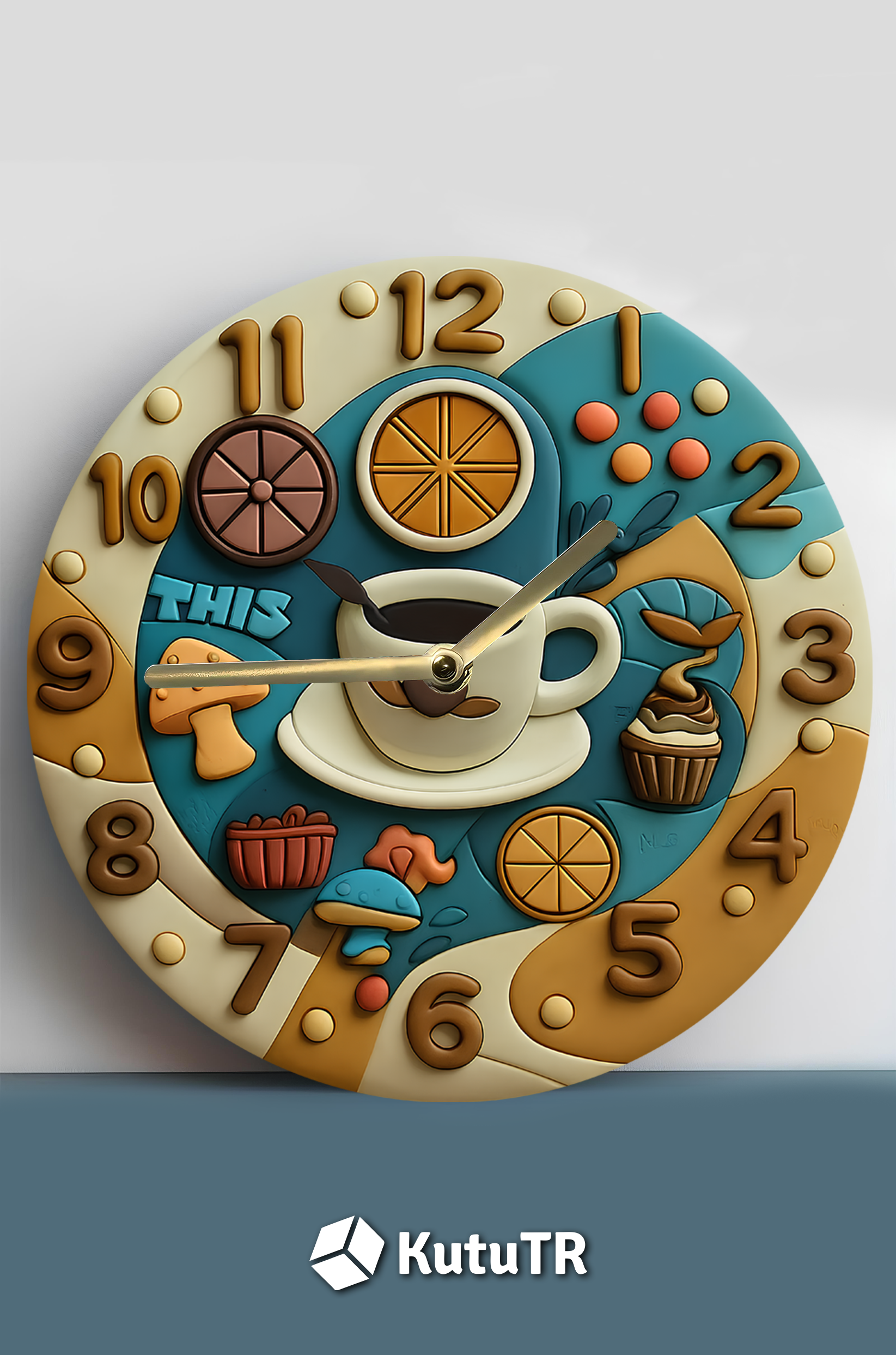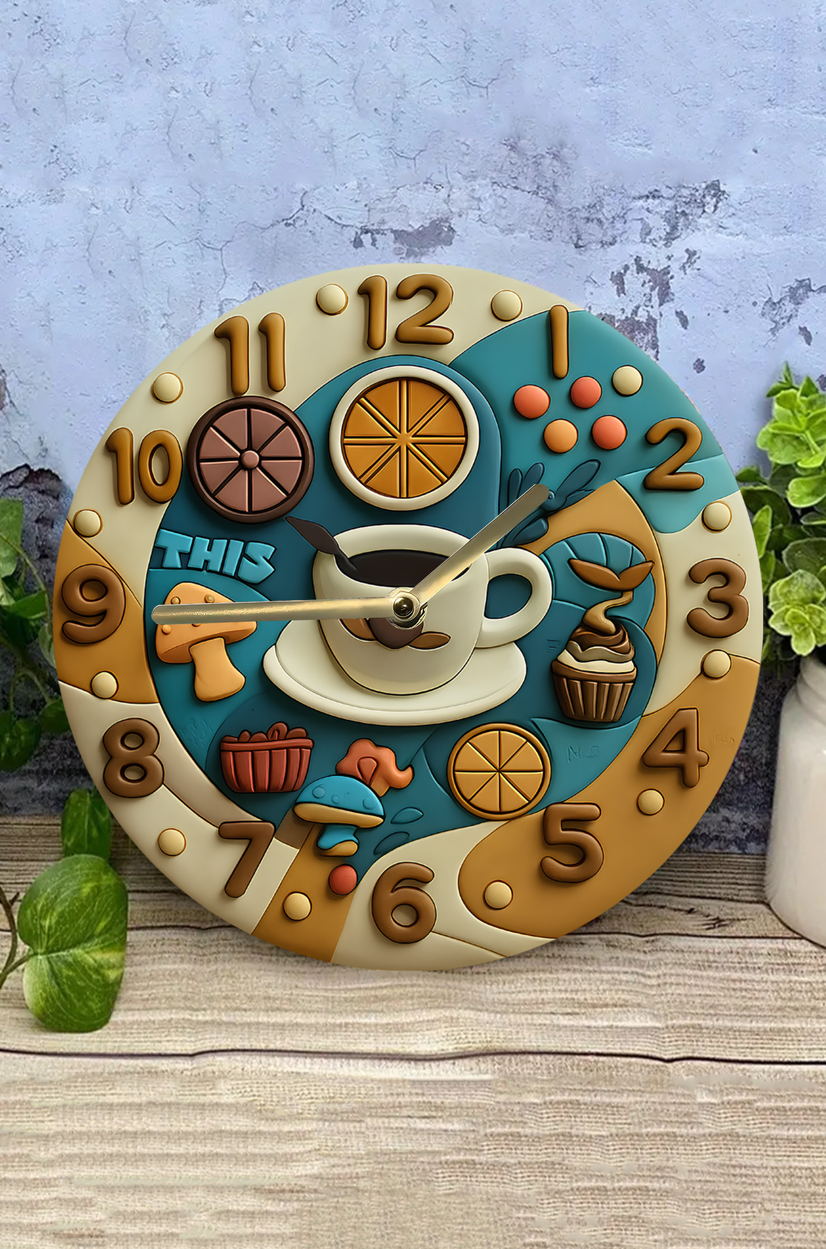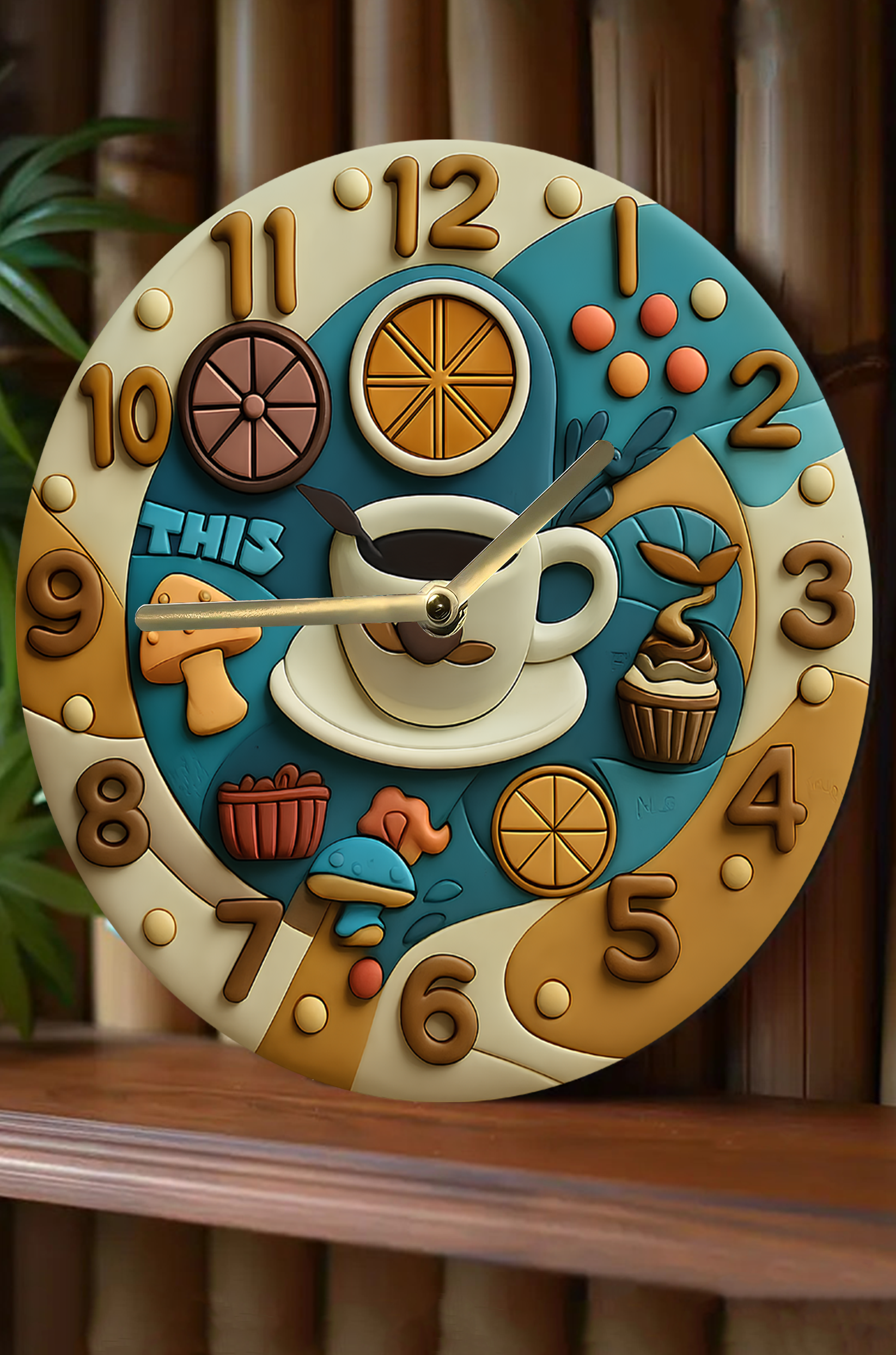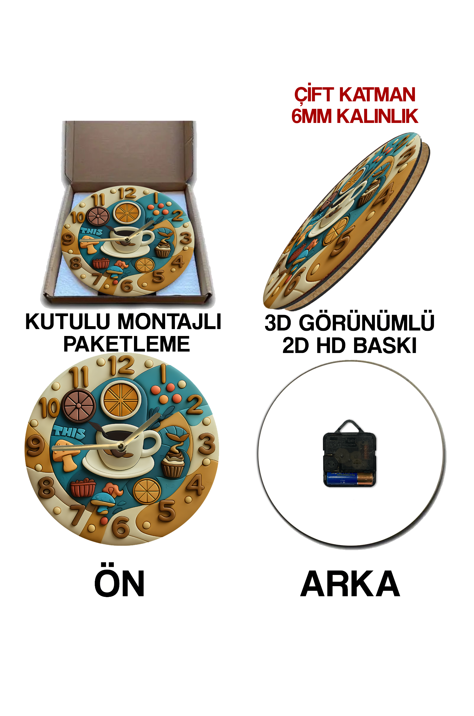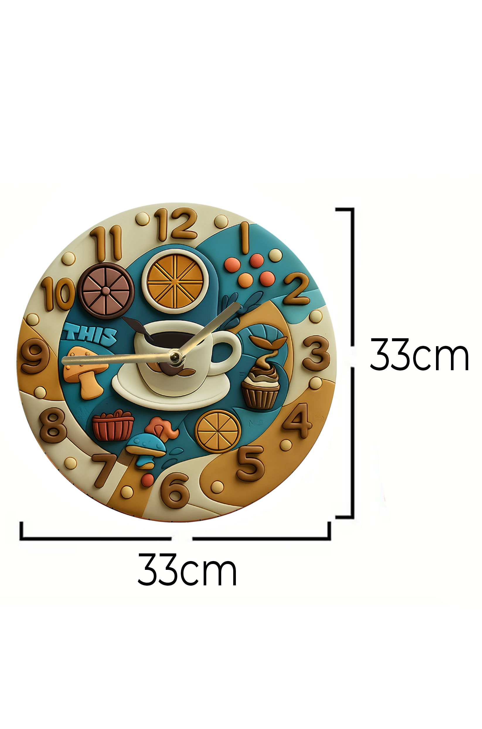 ☕ Kahve ve Tatlı Temalı 3D Görünümlü MDF Duvar Saati – 33 cm 🧁 sdw154