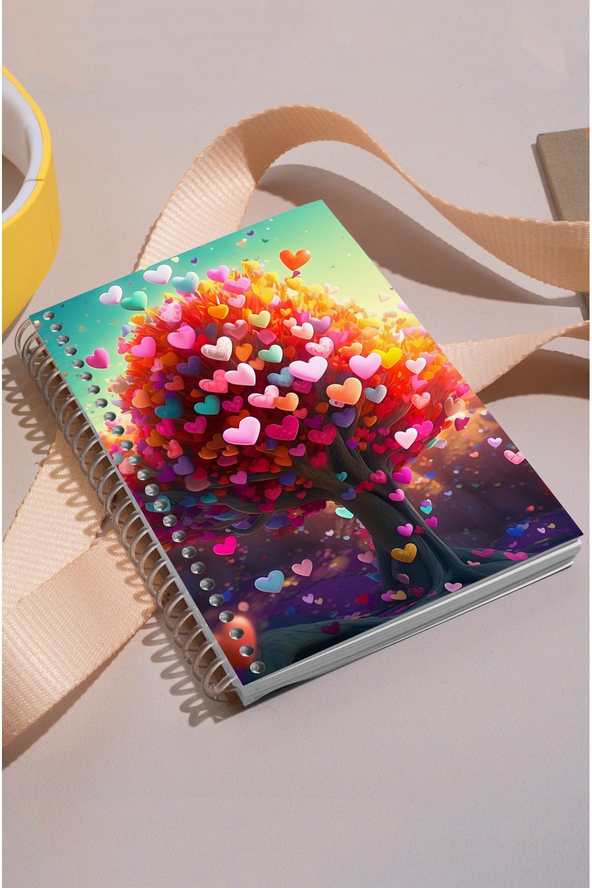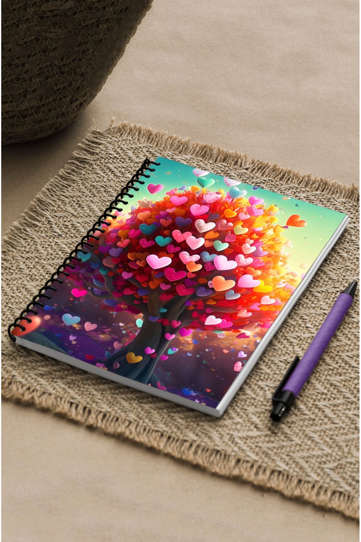 Kalp Ağacı Desen Ahşap Mdf Kapaklı 100 Yaprak Çizgili 15x21 Vip Modelist Defter 80gr/m2 Ç501