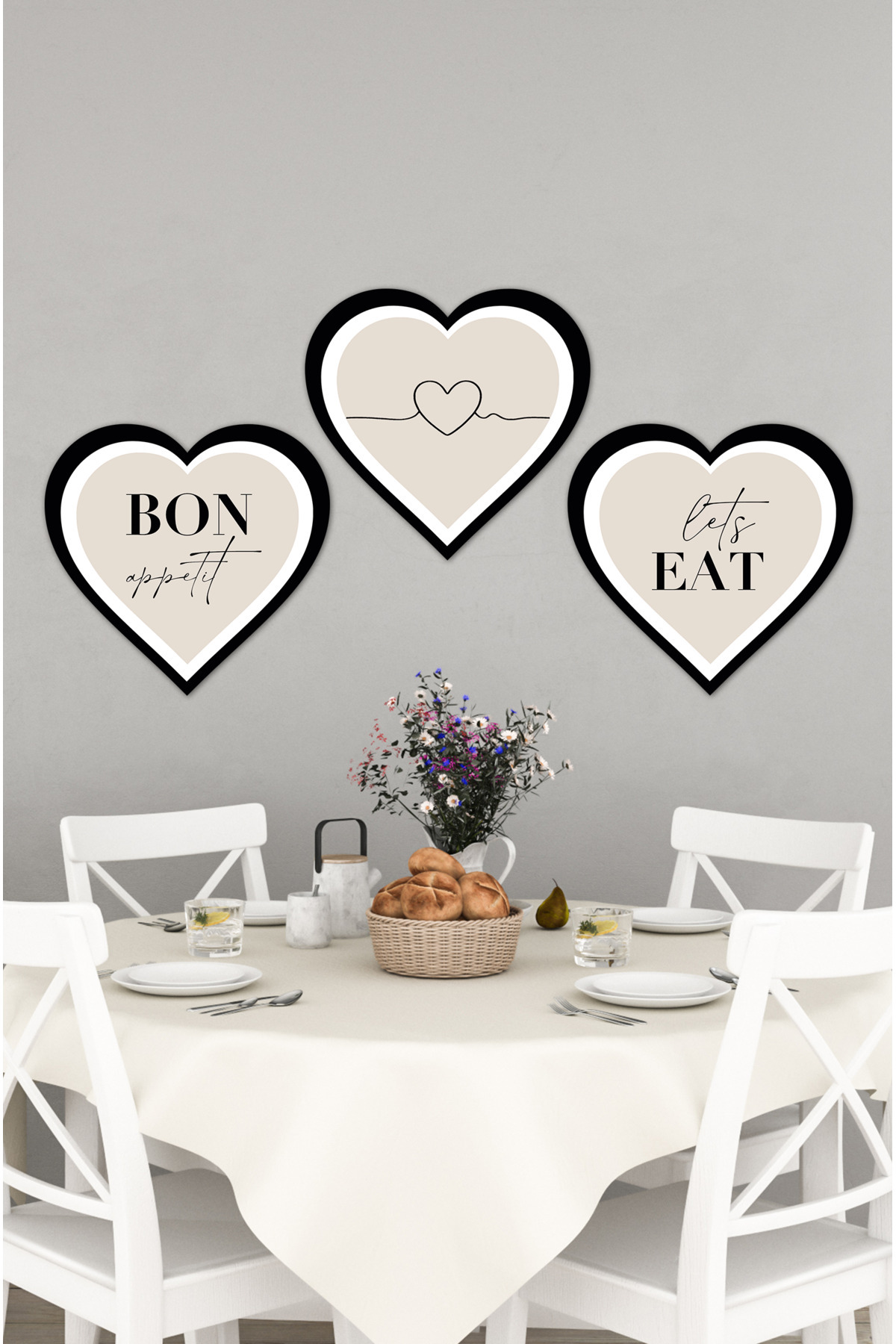 Kalp Şeklinde 3'lü Ahşap Tablo Seti KT3001