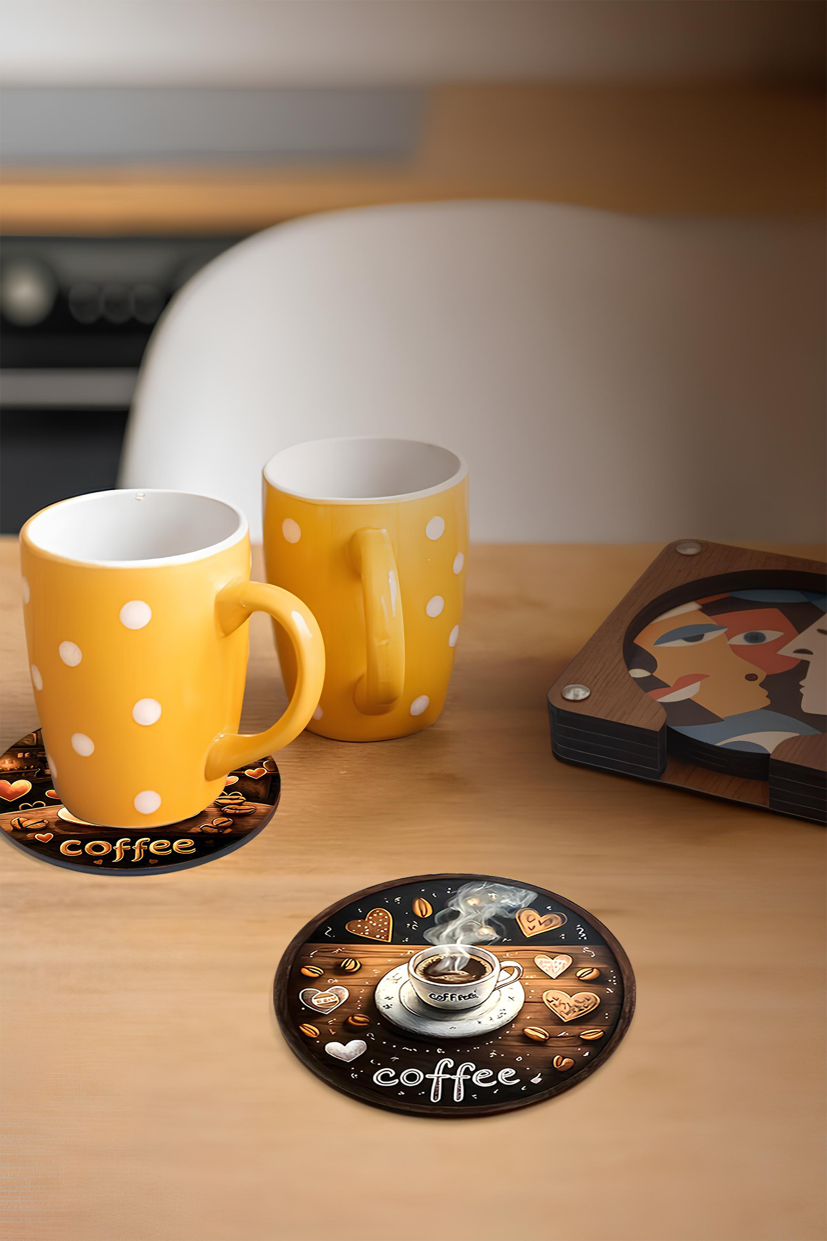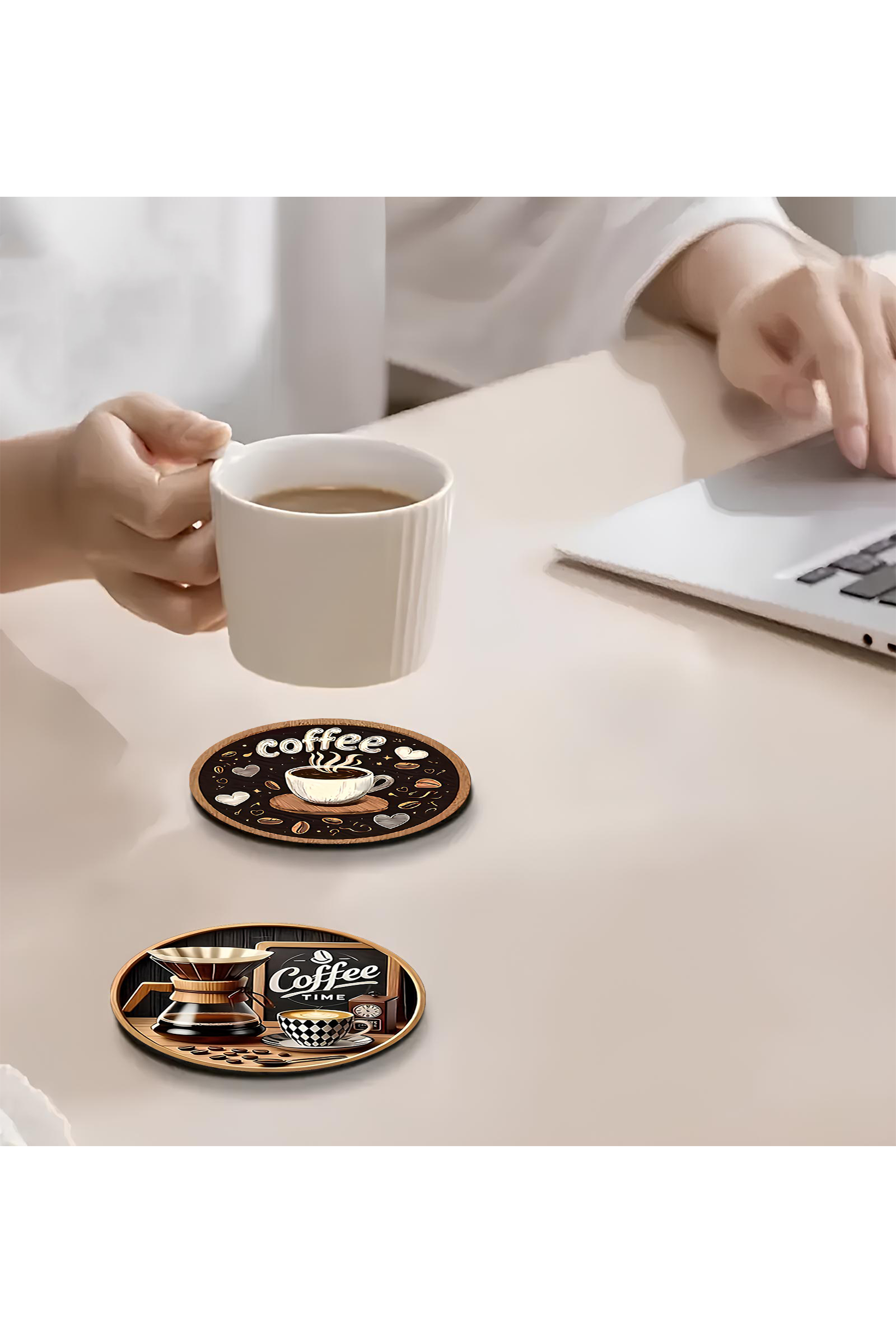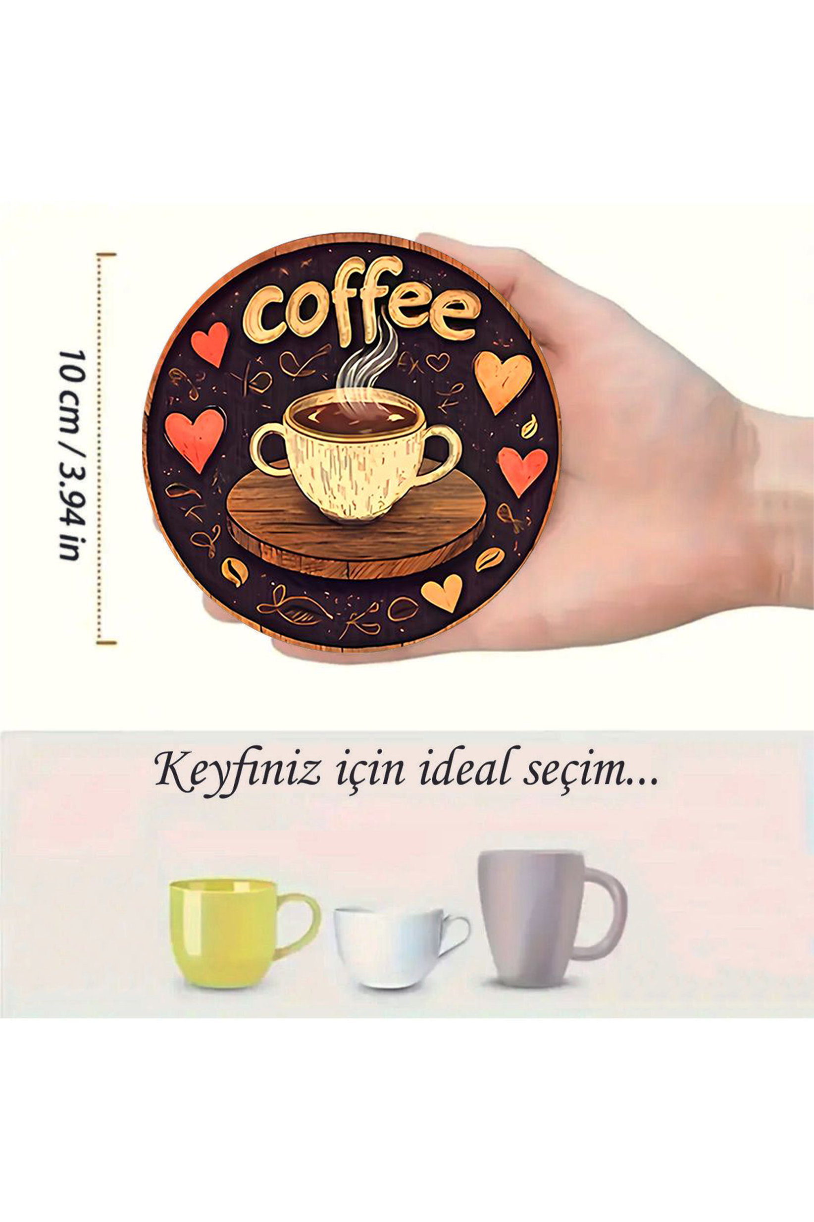 Kalpli Kahve Temalı 6’lı Bardak Altlığı – MDF – 10 cm BRD-043