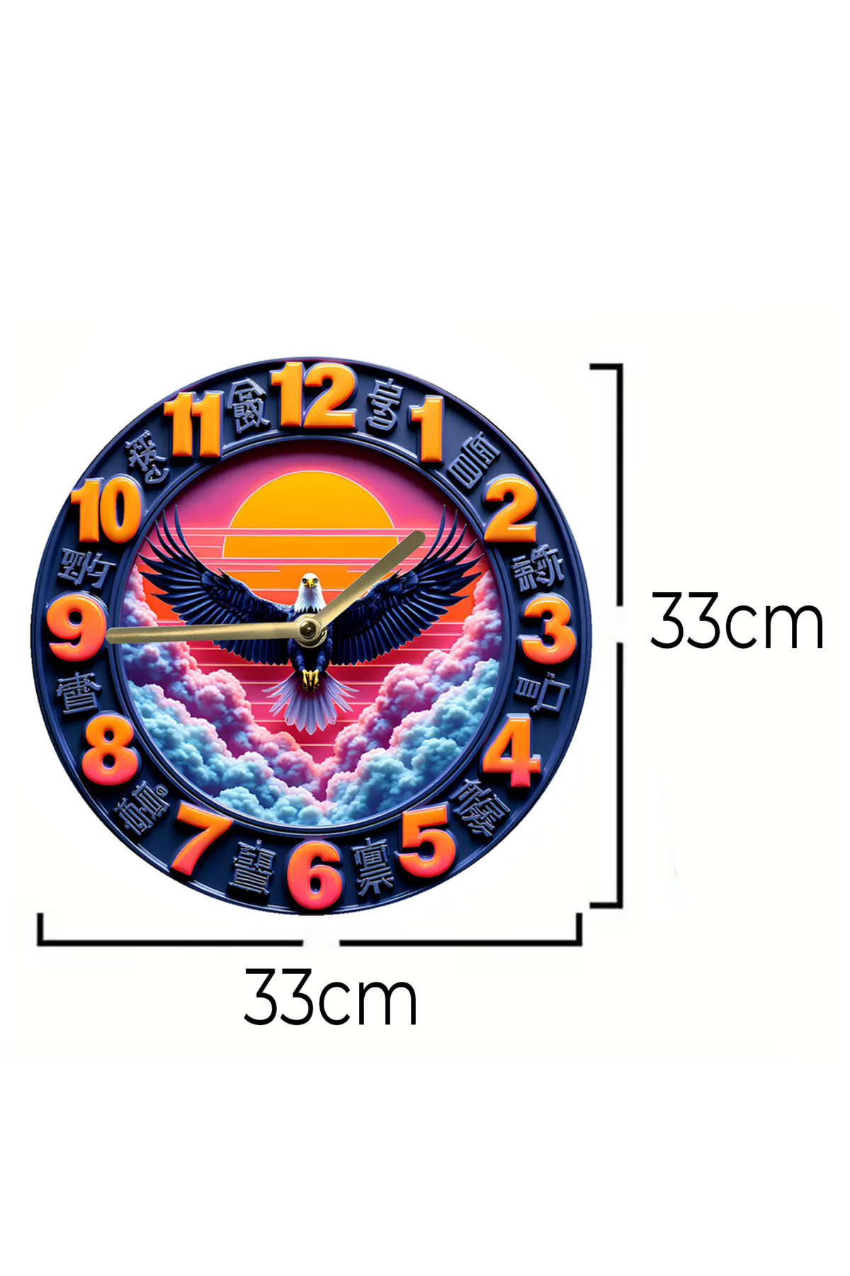 🦅 Kartal ve Gün Batımı Temalı Çift Katmanlı MDF Saat | 33 cm | Özgür Ruhlu Dekor Sdw352