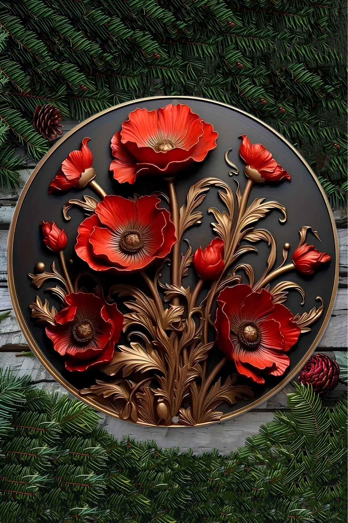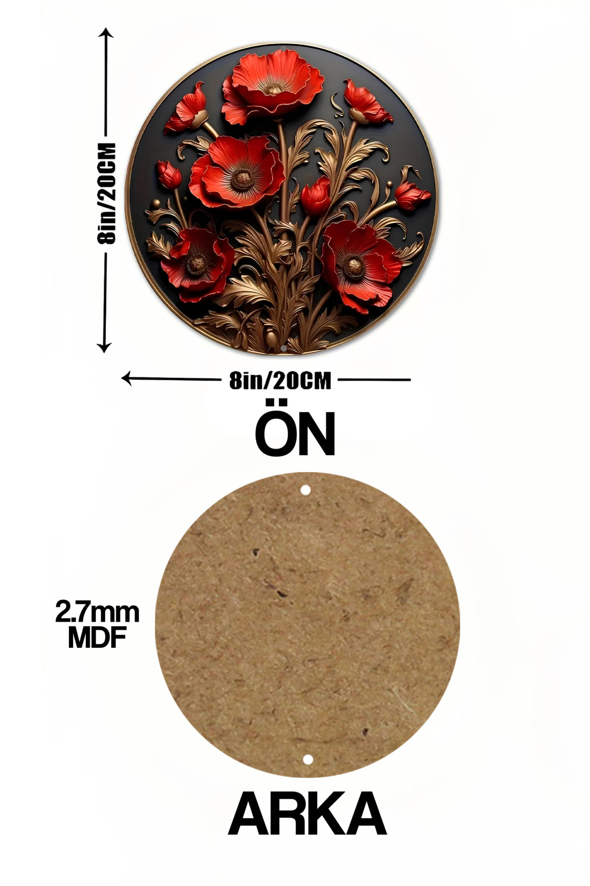 🌺 Kırmızı Çiçek Kabartmalı MDF Dekoratif Duvar Süsü – 20 cm | 3D Görünümlü DT036