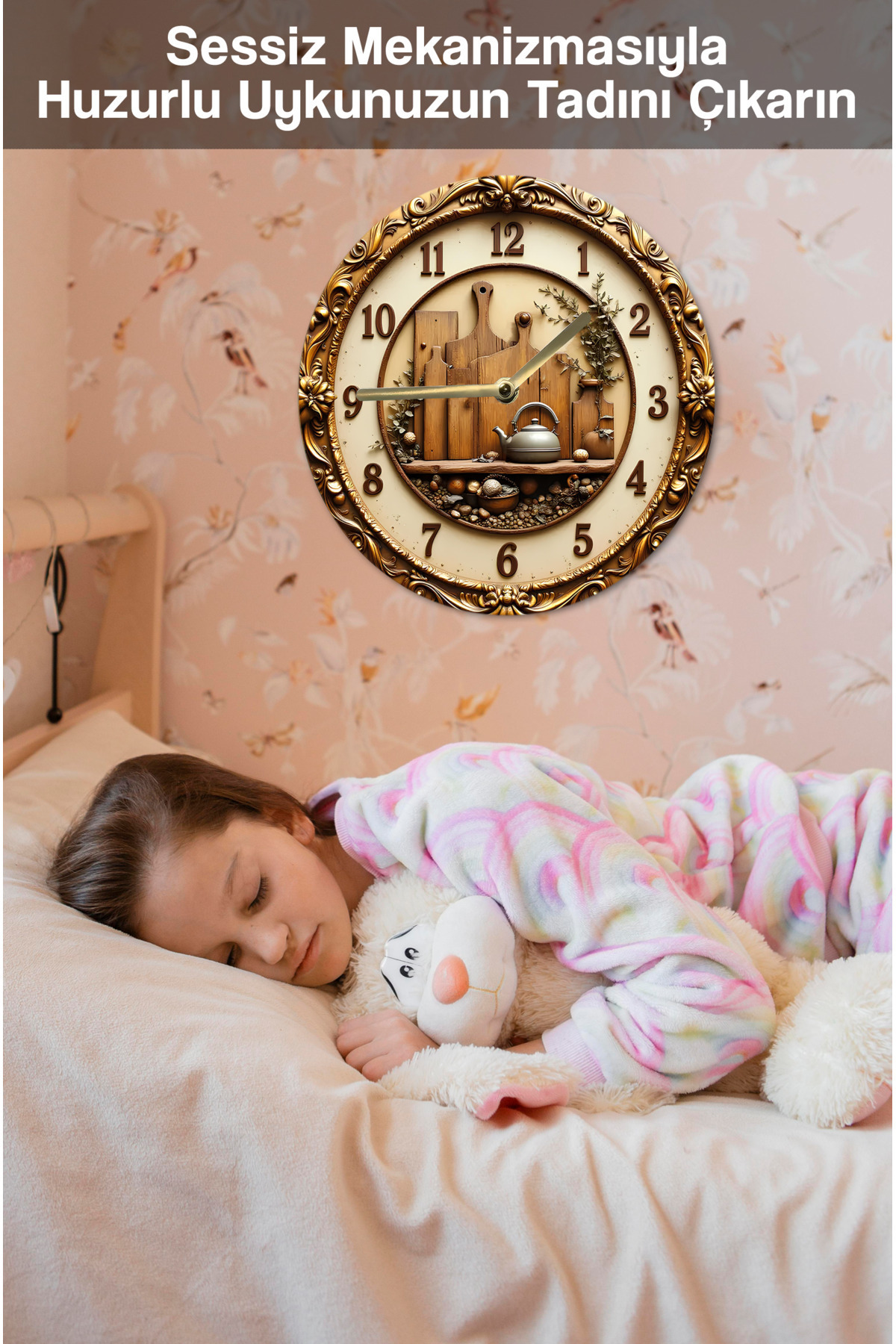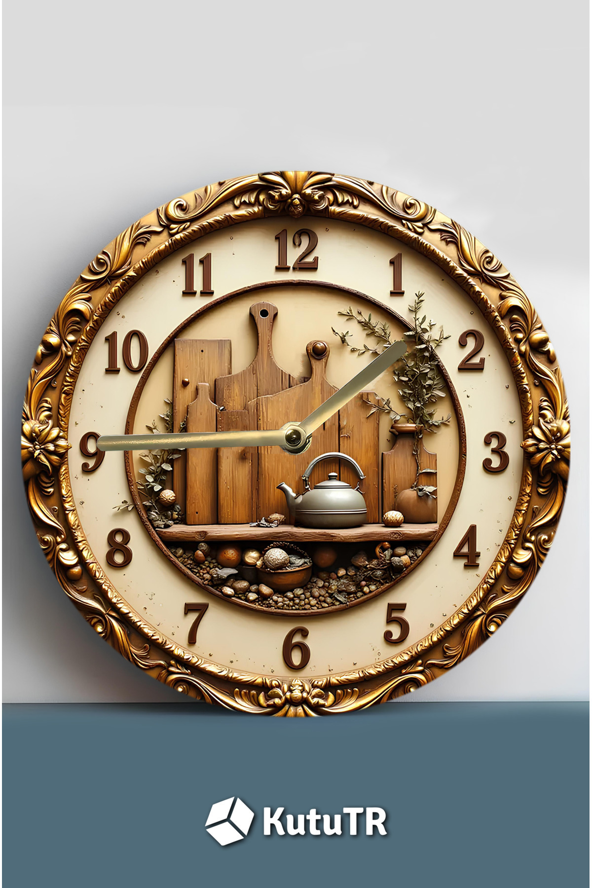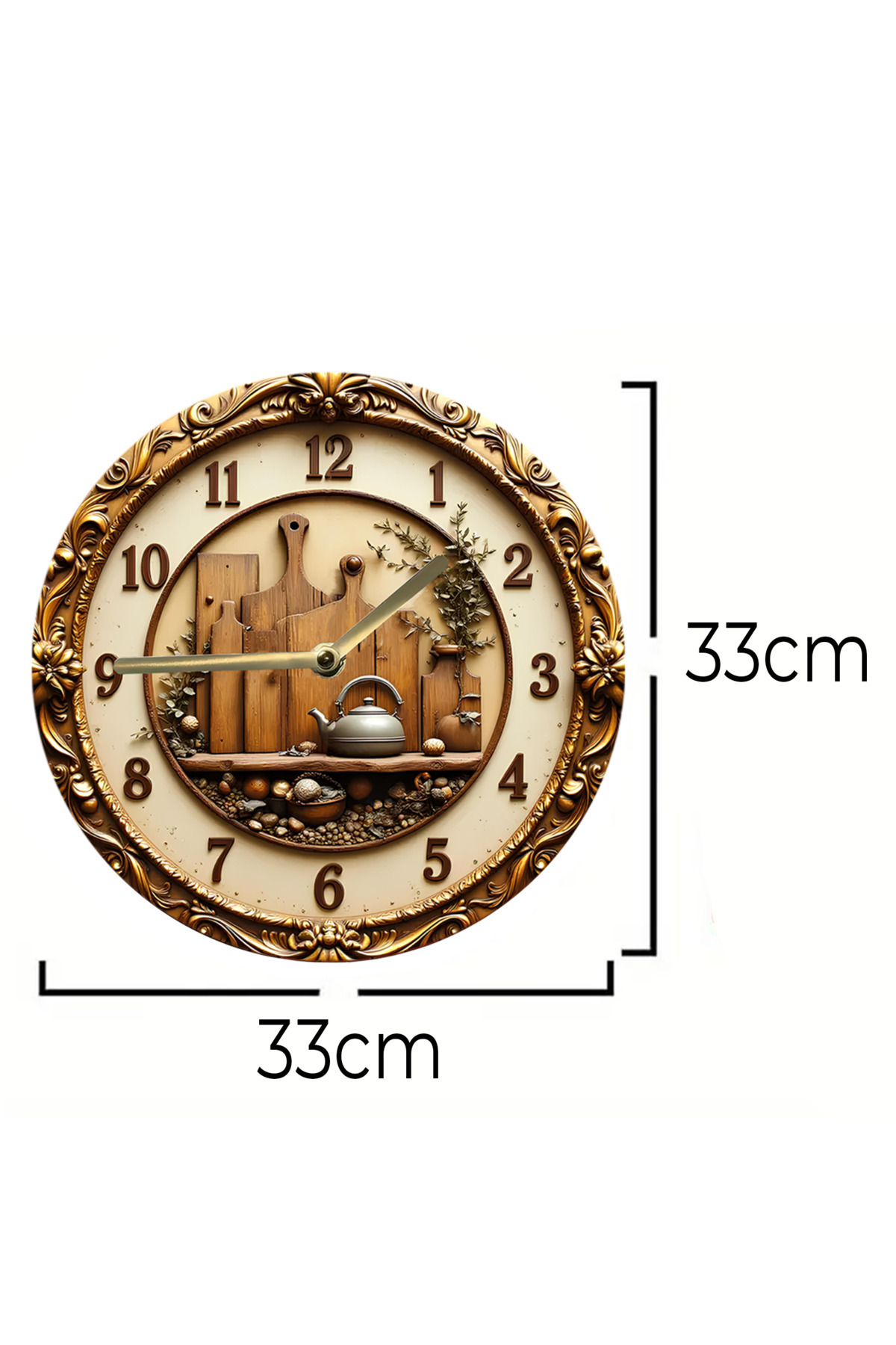 🕰️ Klasik Mutfak Temalı MDF Duvar Saati – 33 cm | 3D Görünümlü UV Baskı SDW351