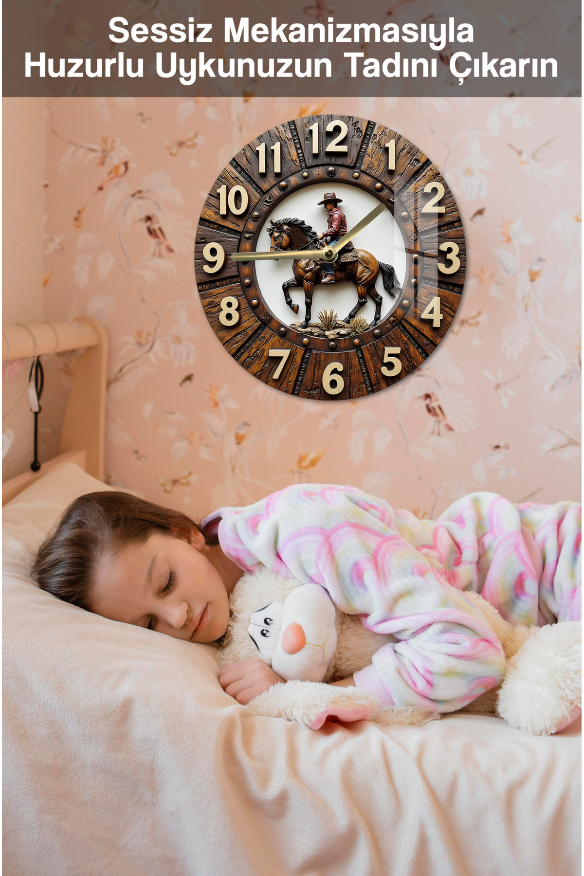 Kovboy ve At Figürlü 3D Görünümlü Temperli Cam Saat – 33 cm CSDW303