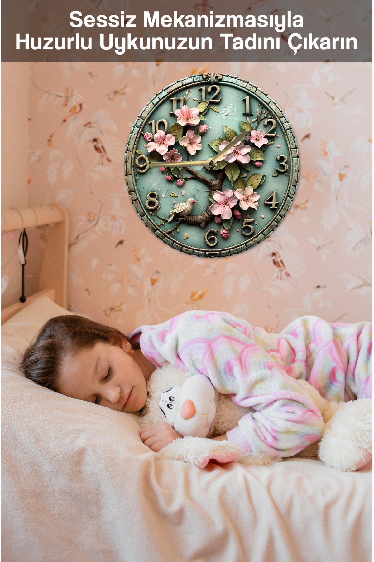 🌸 Kuşlu Çiçekli Vintage MDF Duvar Saati – 33 cm 🍃🕊️ SDW333