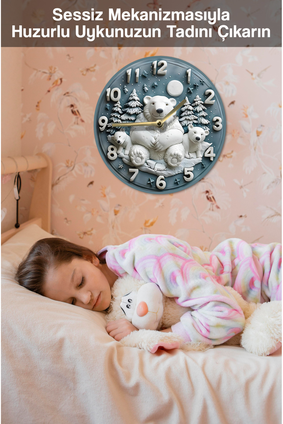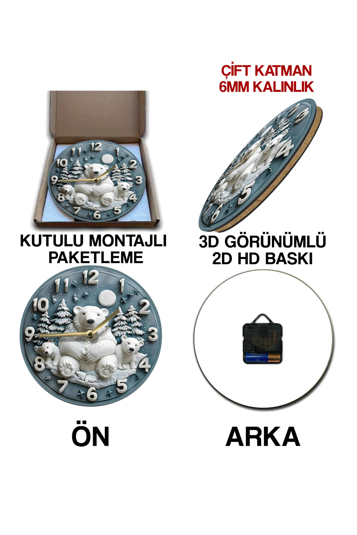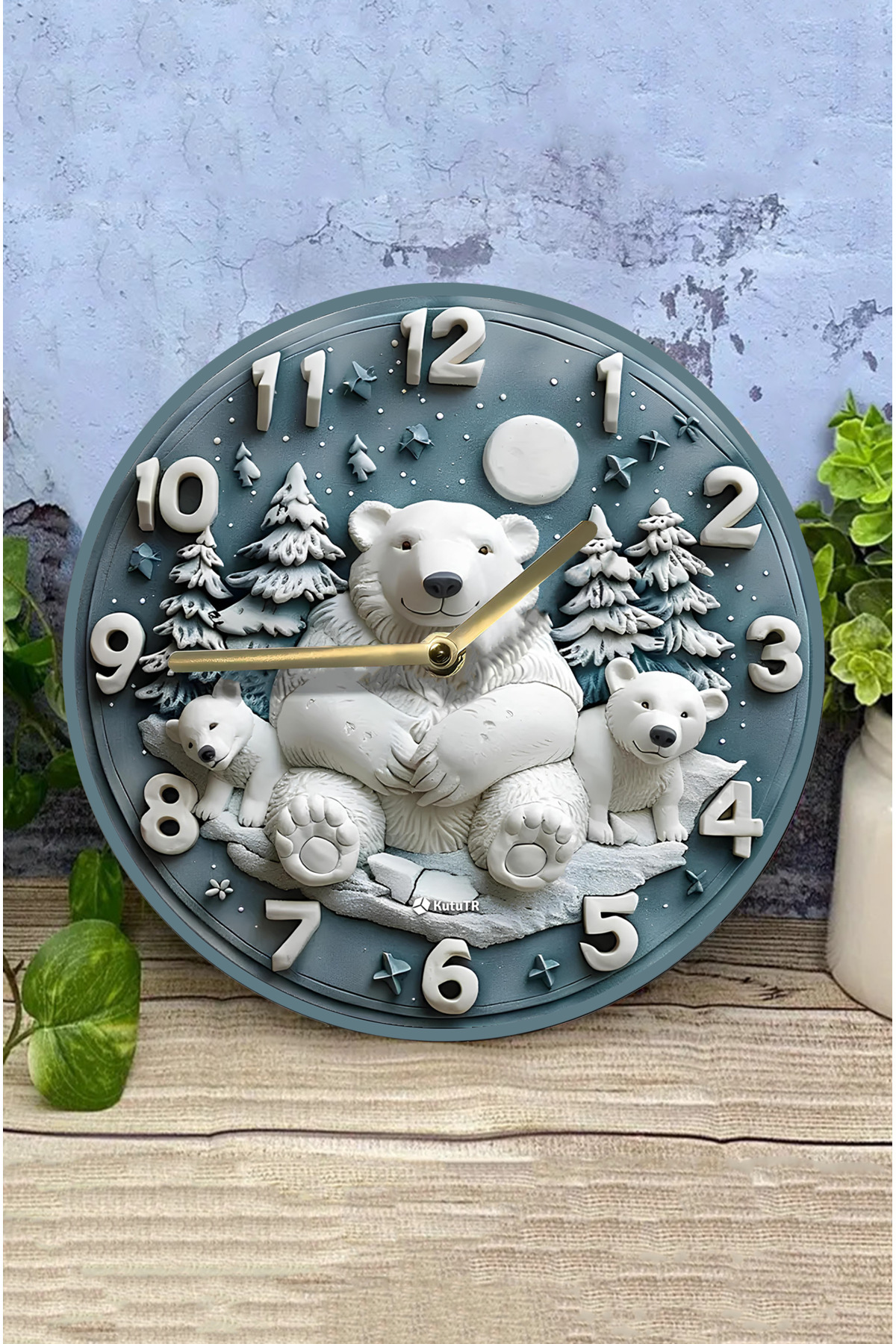 🐻 Kutulu 3D Görünümlü Kutup Ayısı Temalı MDF Duvar Saati – Çift Katmanlı | 33 cm sdw002