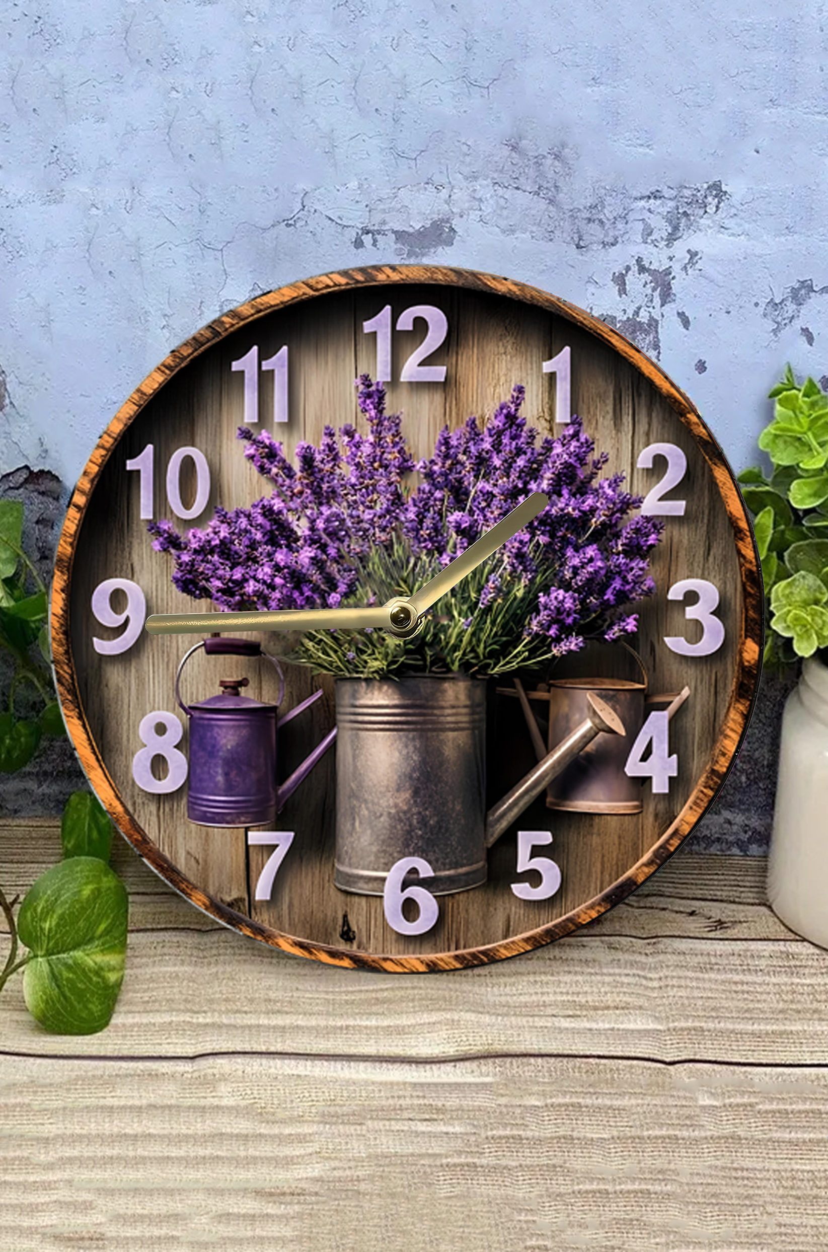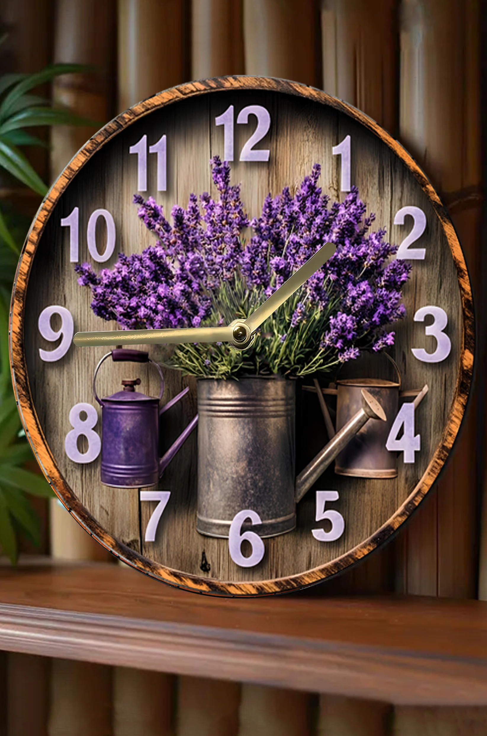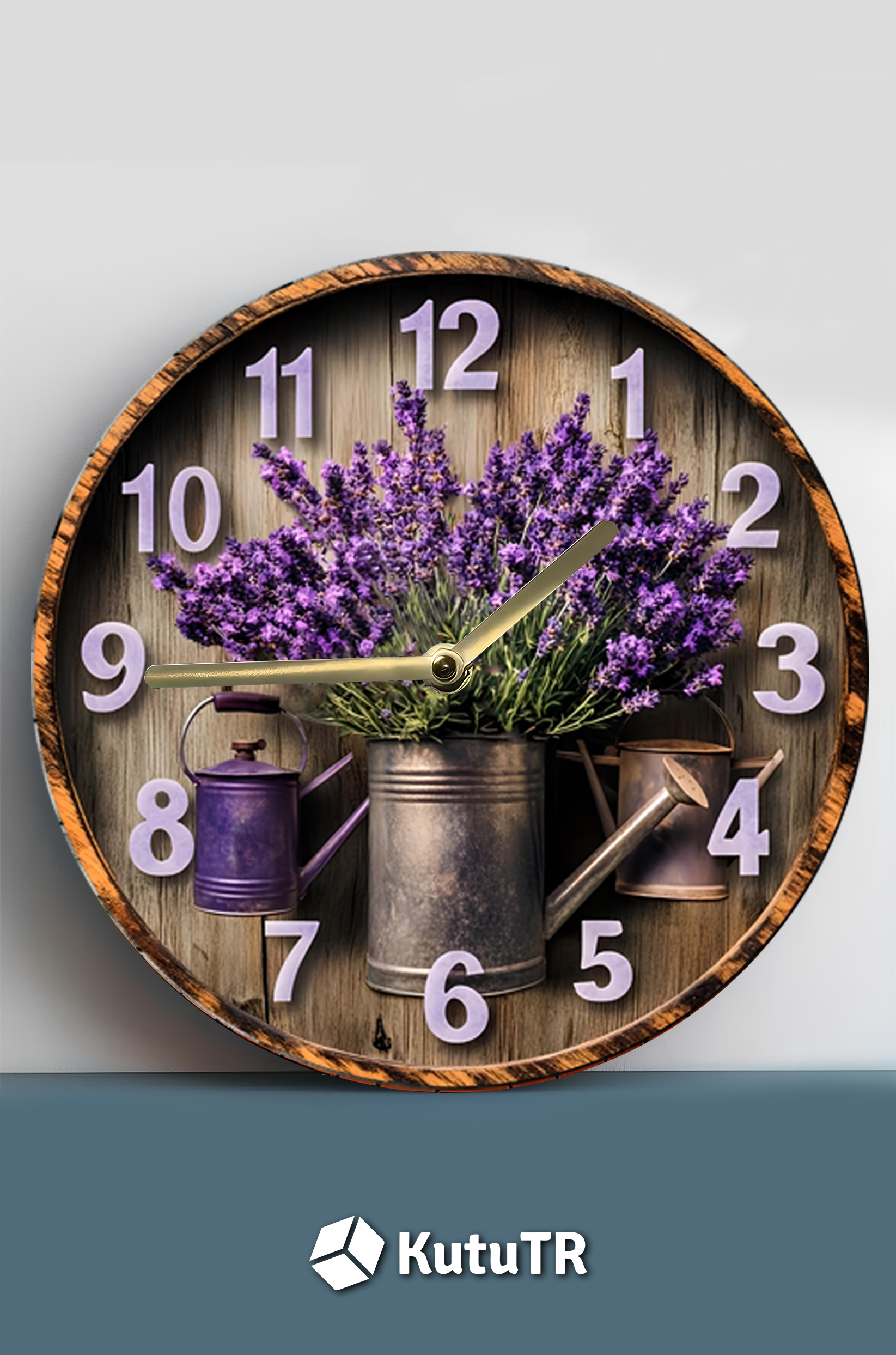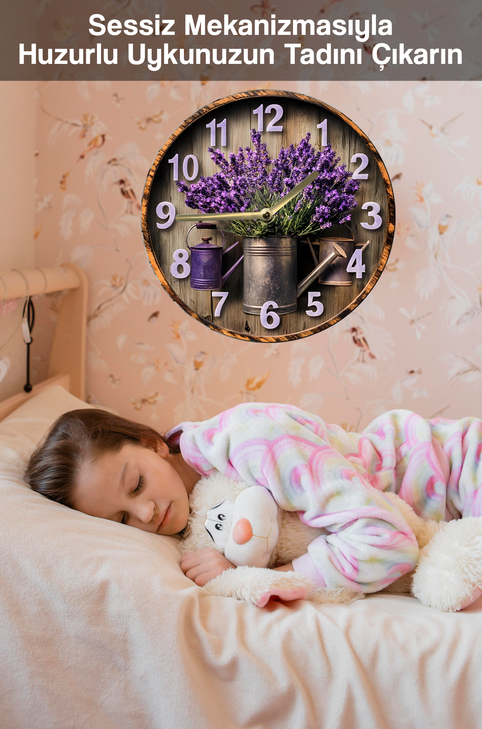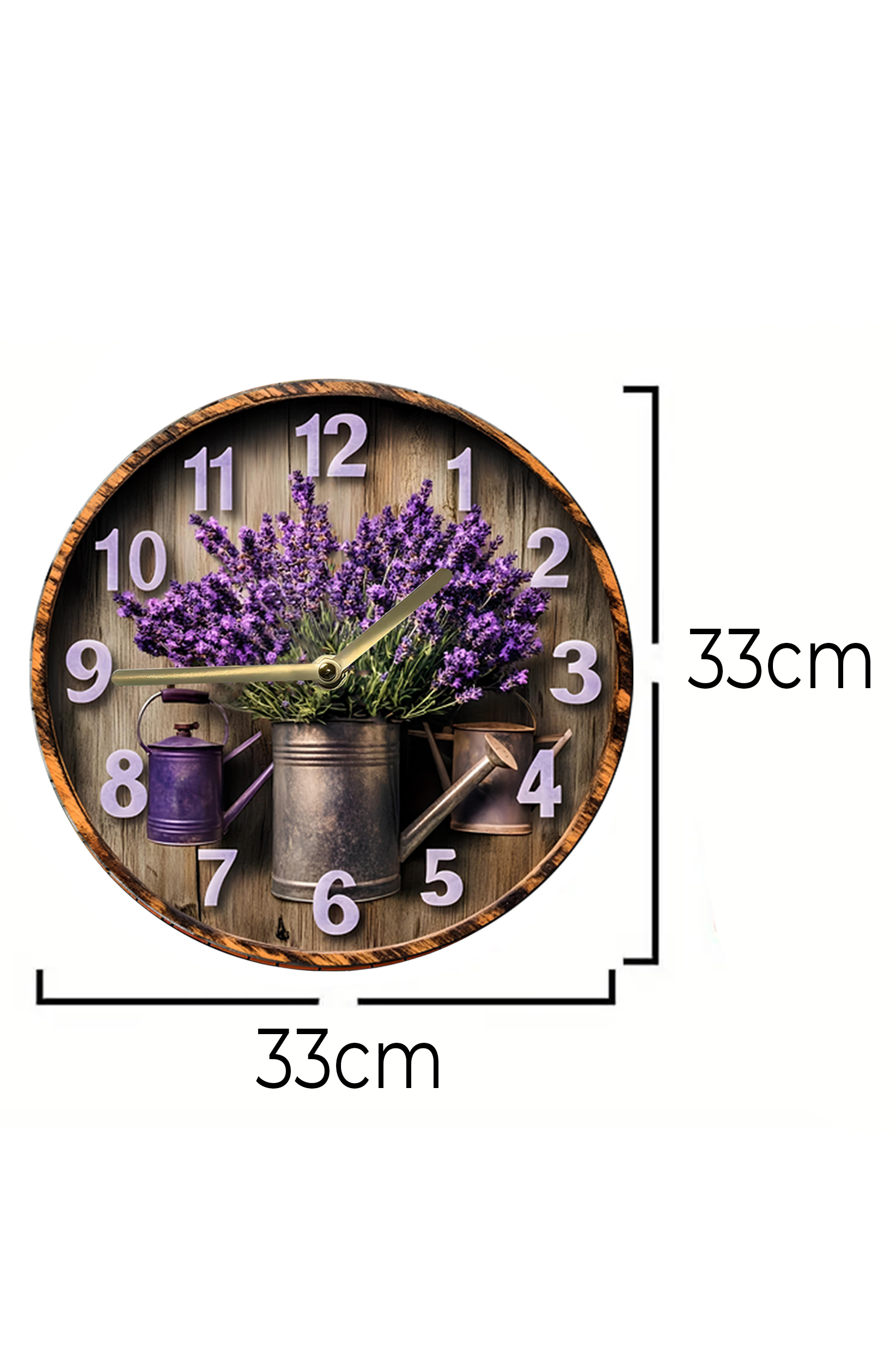 💜 Lavanta Temalı 3D Görünümlü MDF Duvar Saati – 33 cm 💜 sdw128
