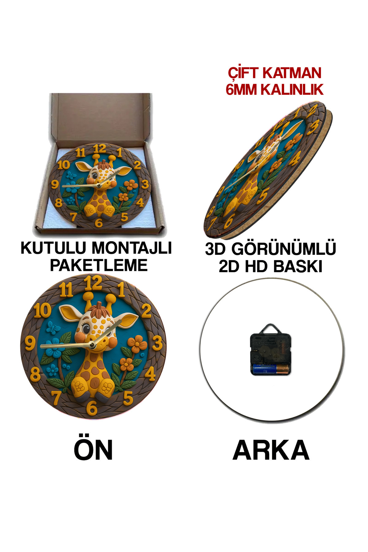 MDF 33 cm Sessiz Mekanizmalı Duvar Saati – 2D HD Baskı, 3D Görünümlü Tasarım