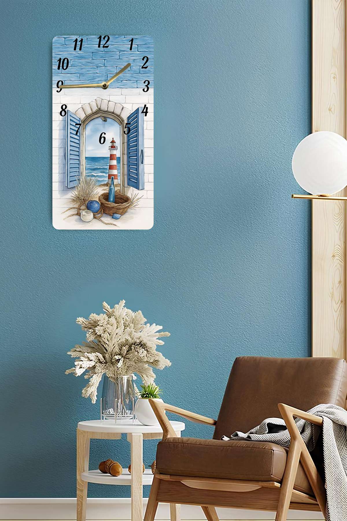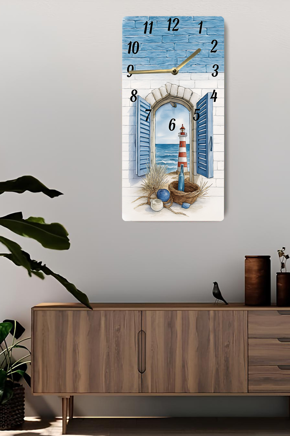 MDF Dikdörtgen Deniz Manzaralı UV Baskı Duvar Saati – 30x60 cm – USD035
