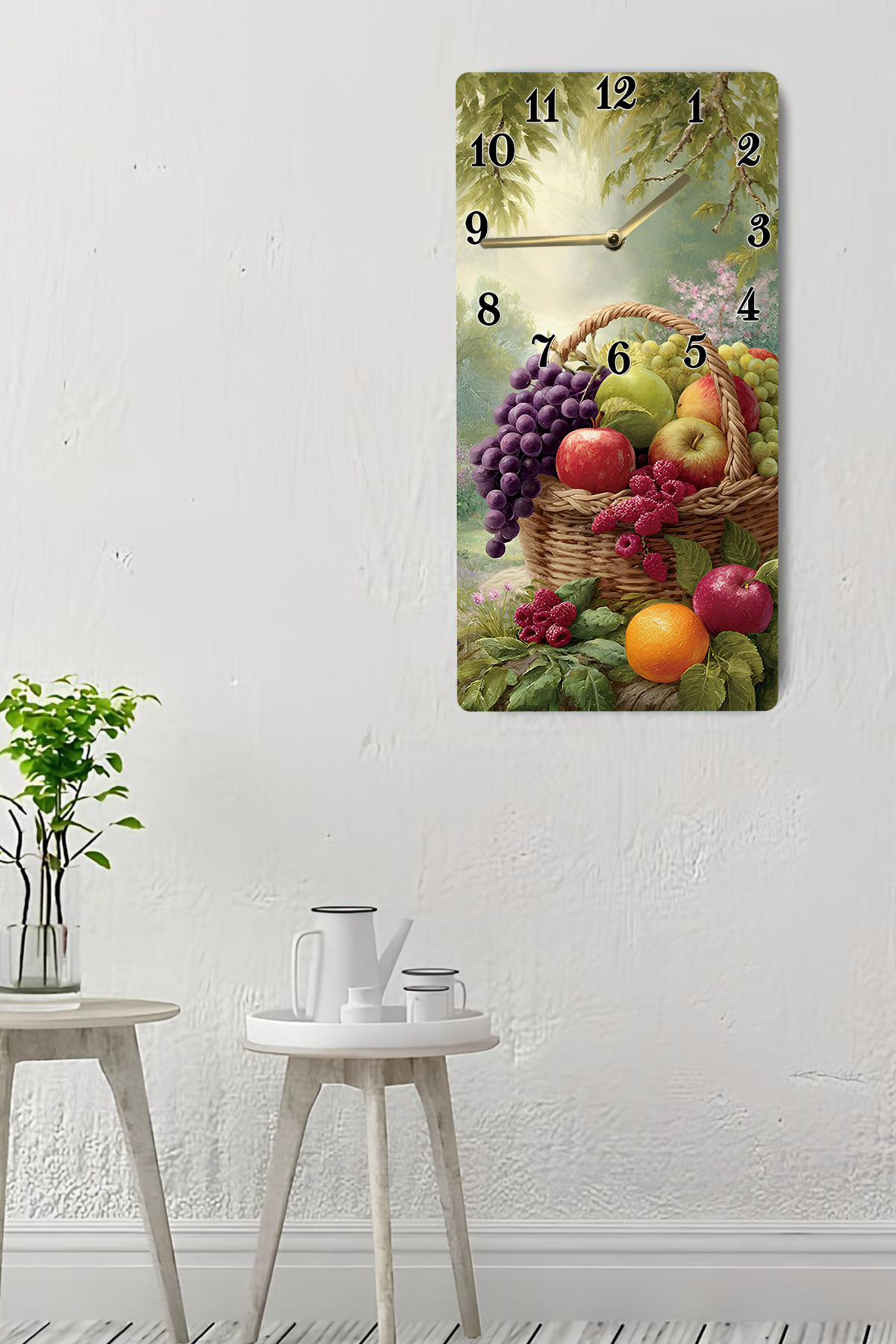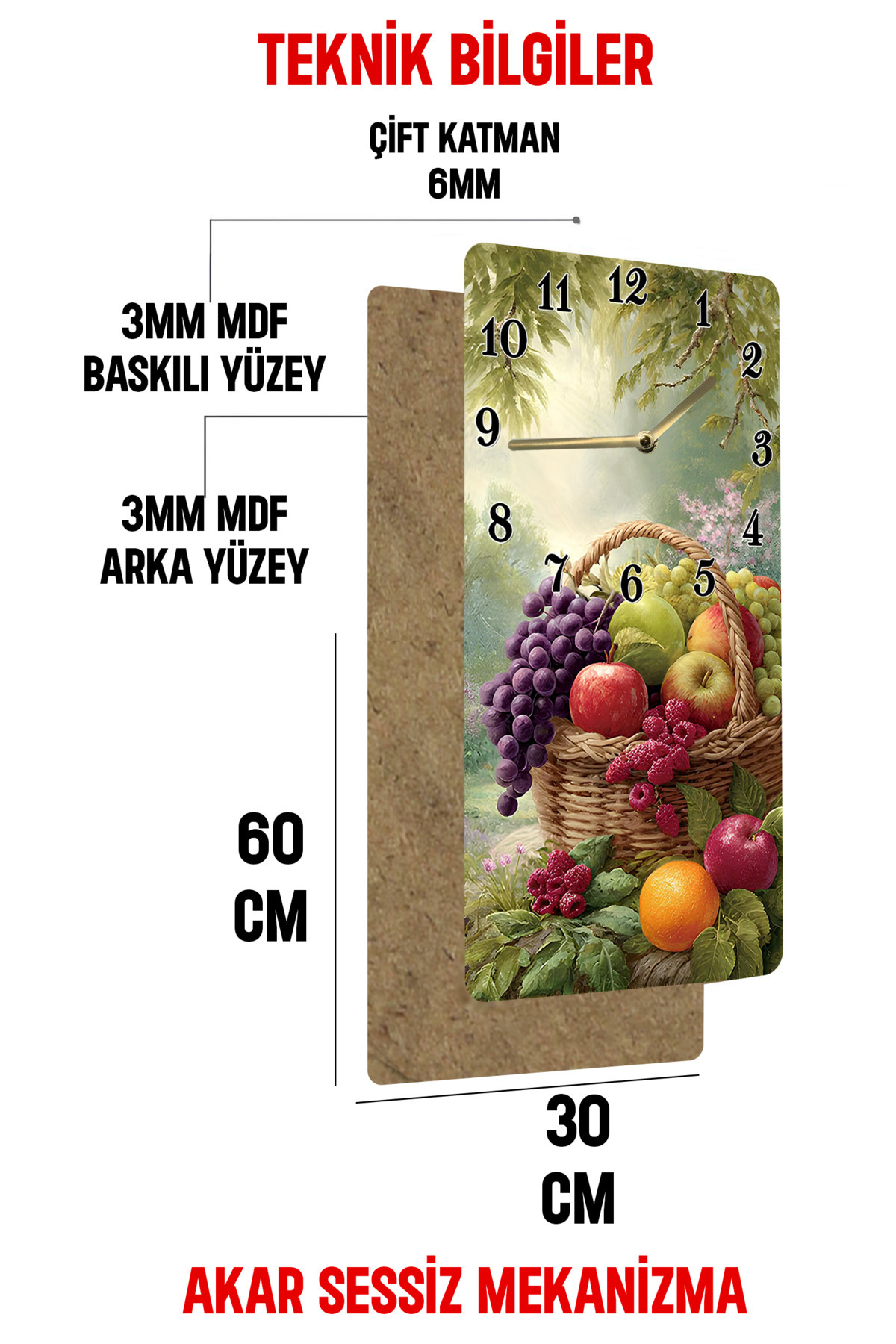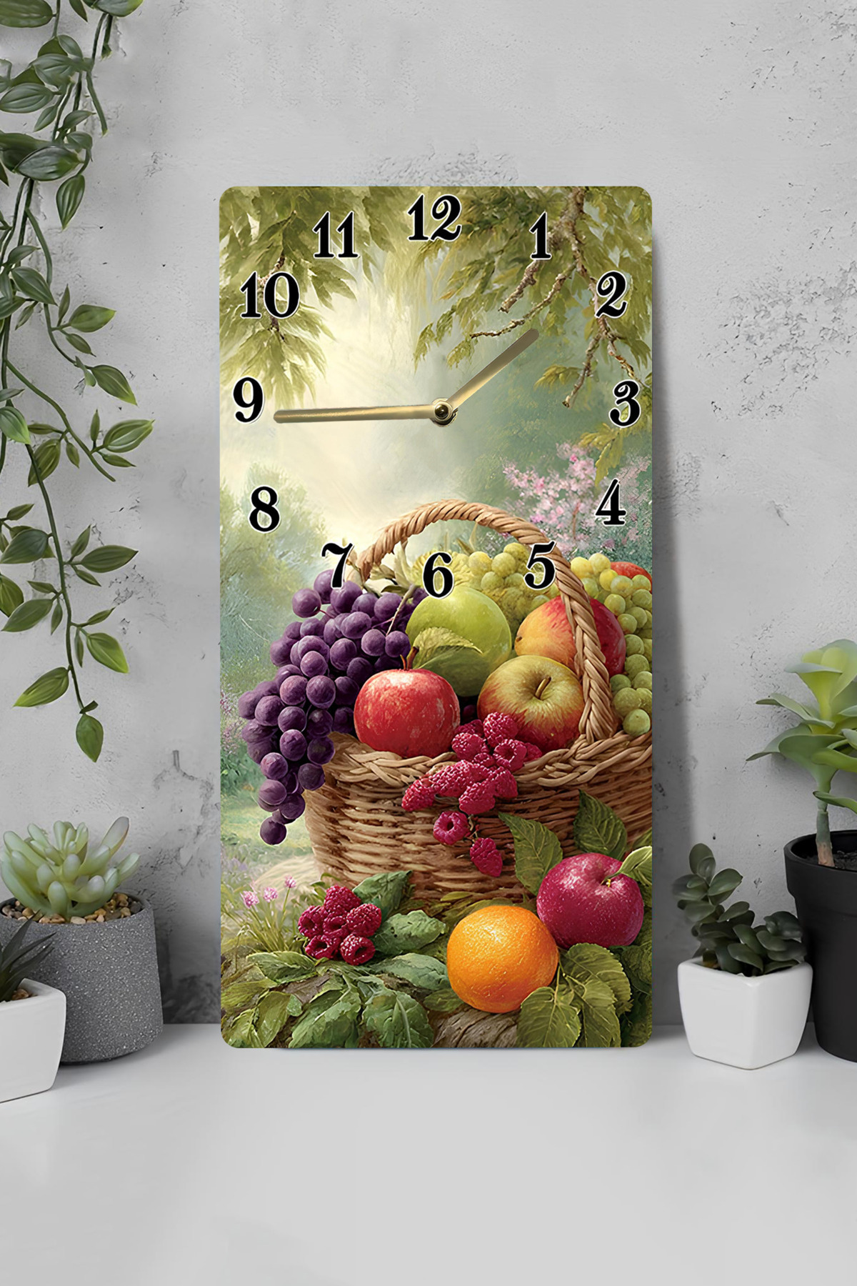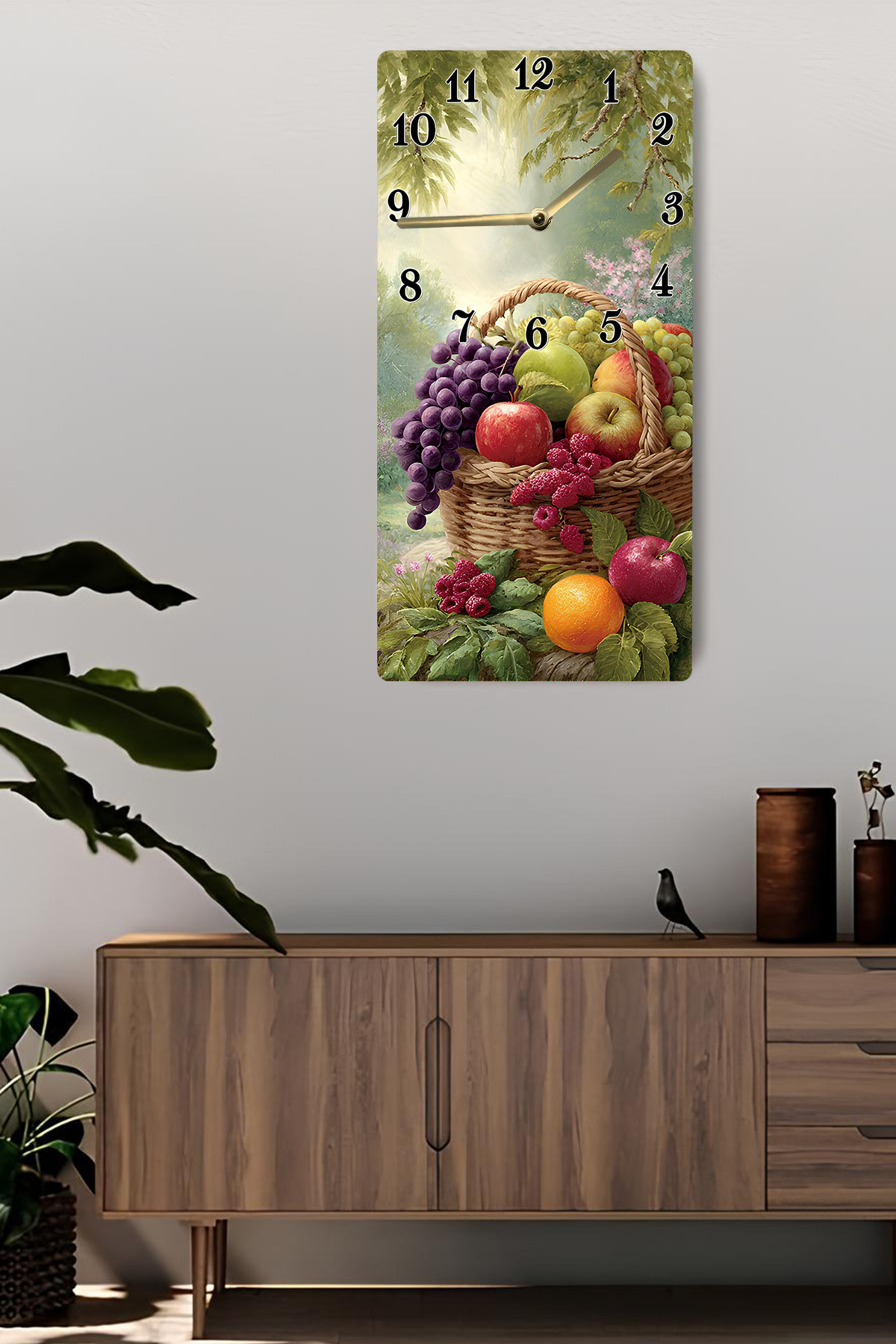 MDF Dikdörtgen Meyve Sepeti Desenli Duvar Saati – 30x60 cm UV Baskı – USD022