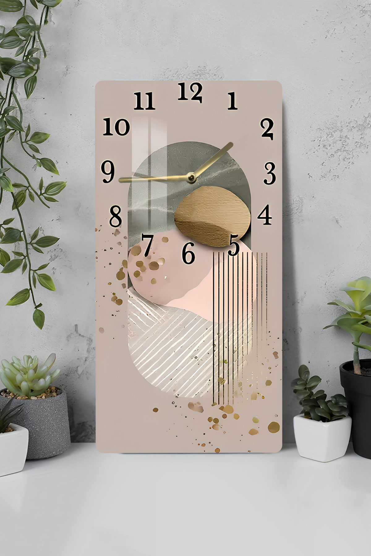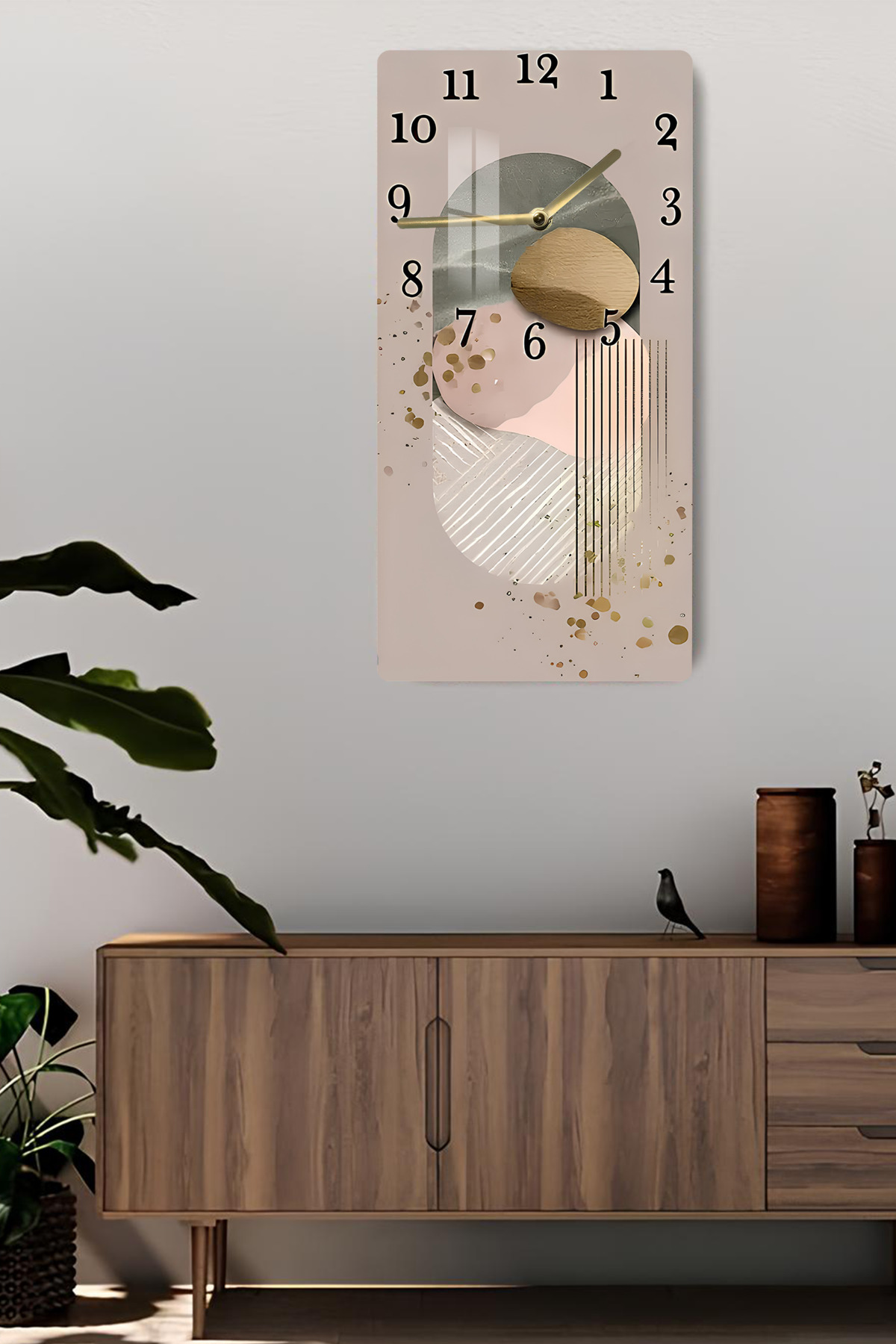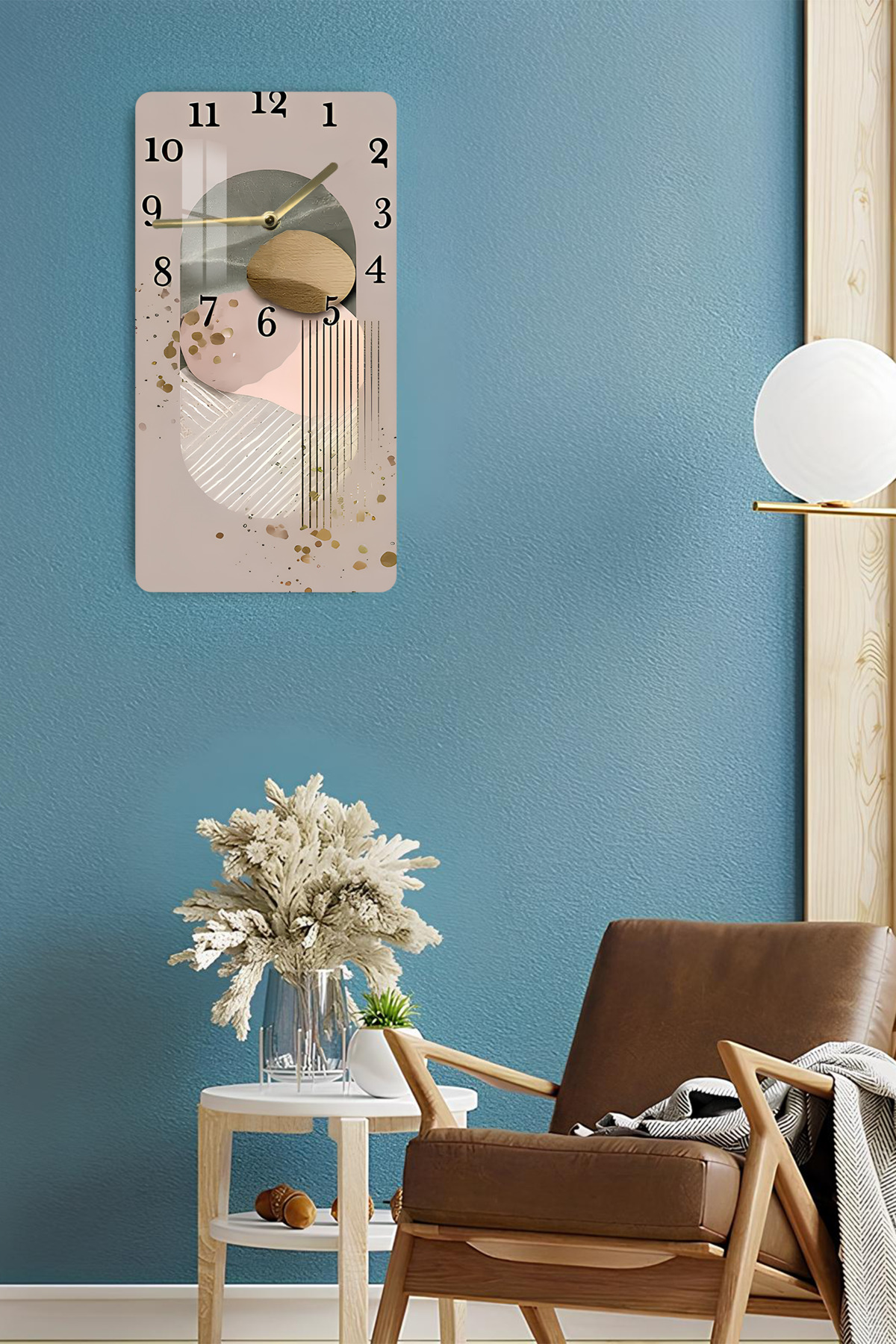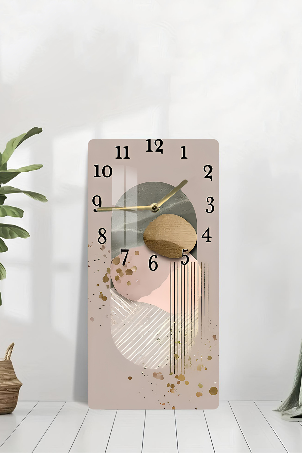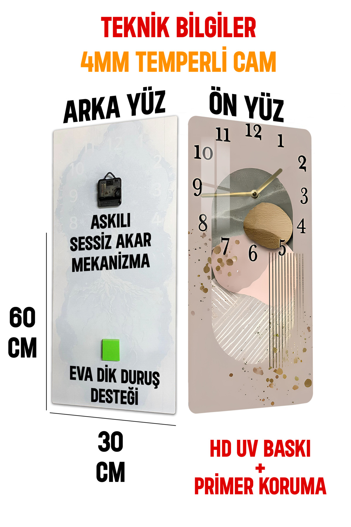 Soyut Modern Desenli Temperli Cam Tablo Saat – 30X60 cm | HD UV Baskı– CUSD089