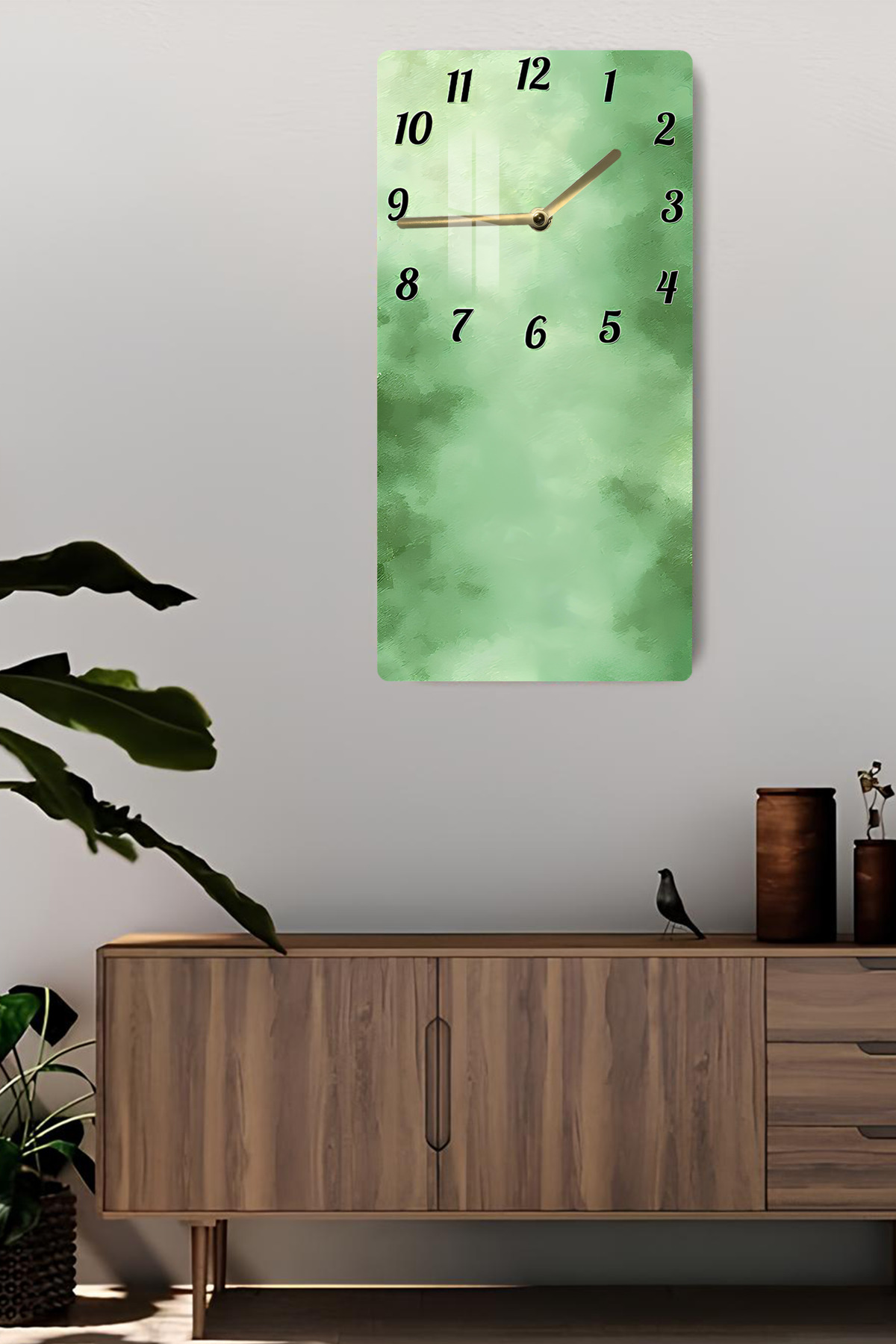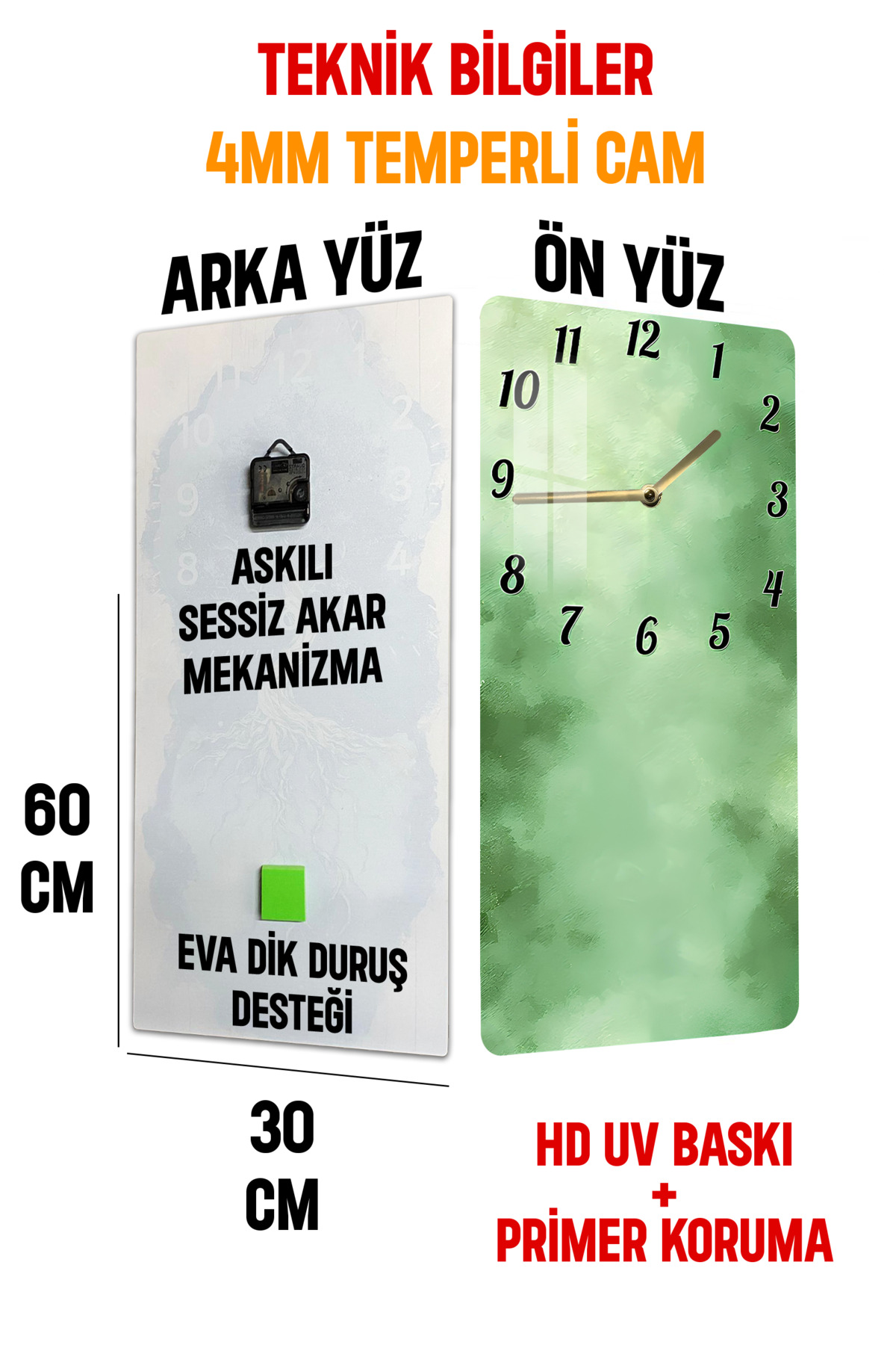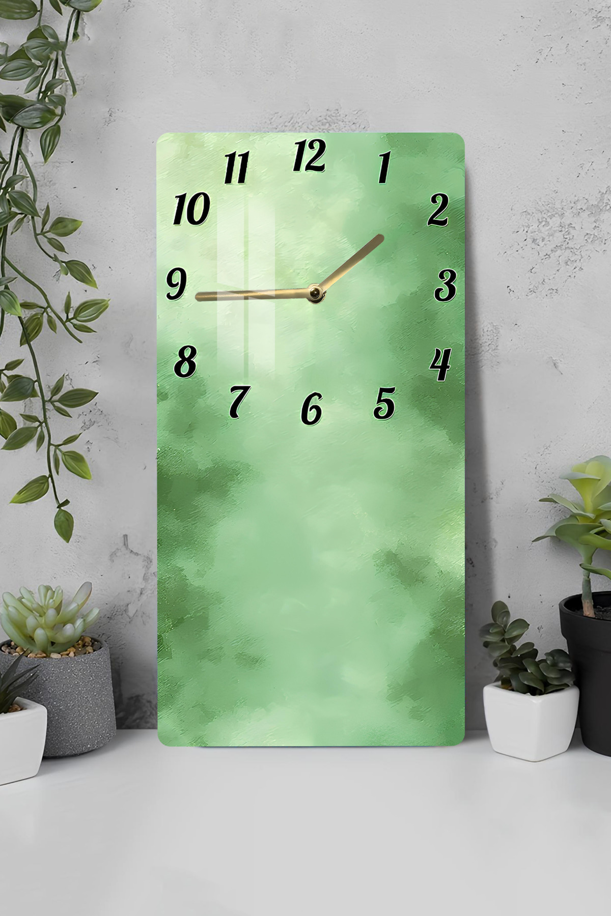 Yeşil Doku Desenli Temperli Cam Tablo Saat – 33x33 cm | HD UV Baskı– CUSD084