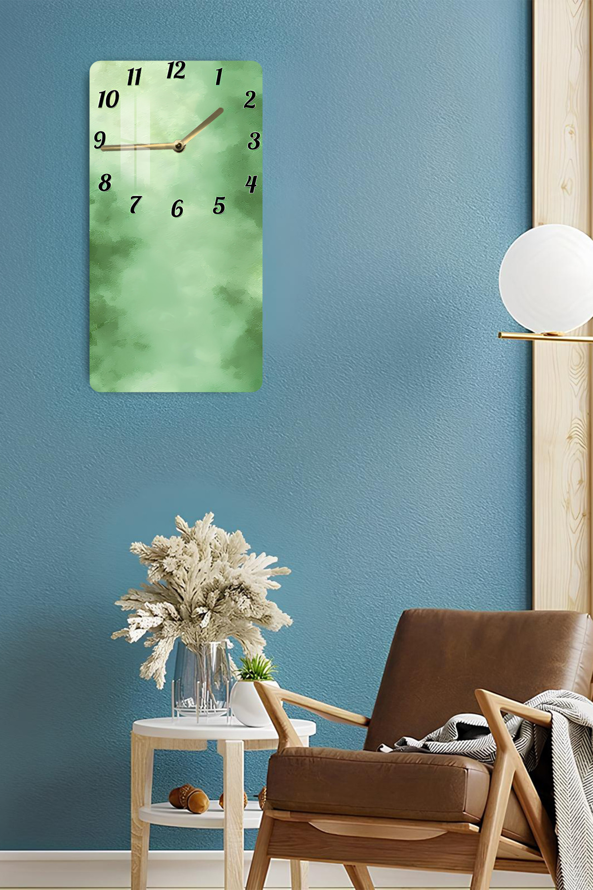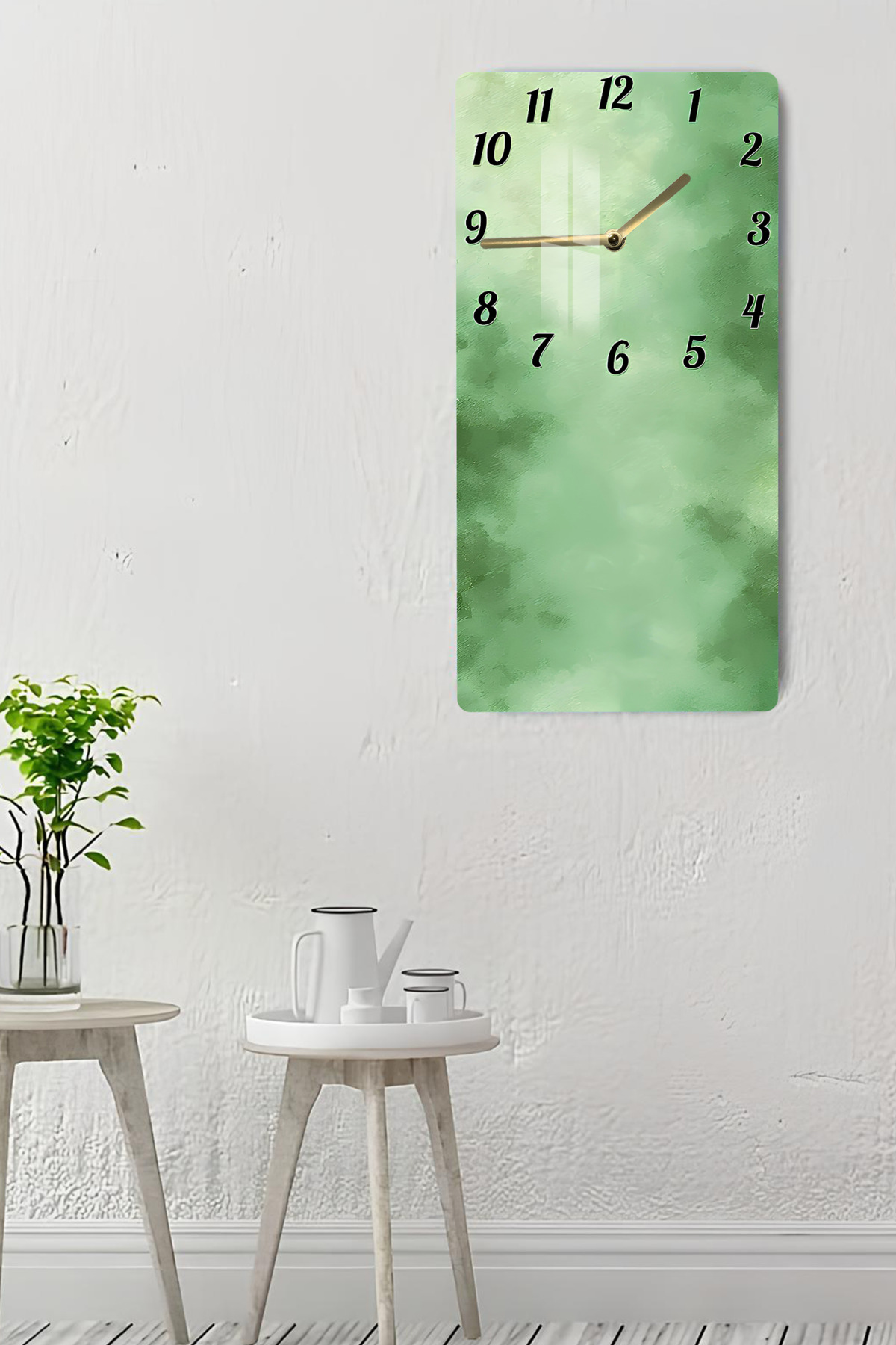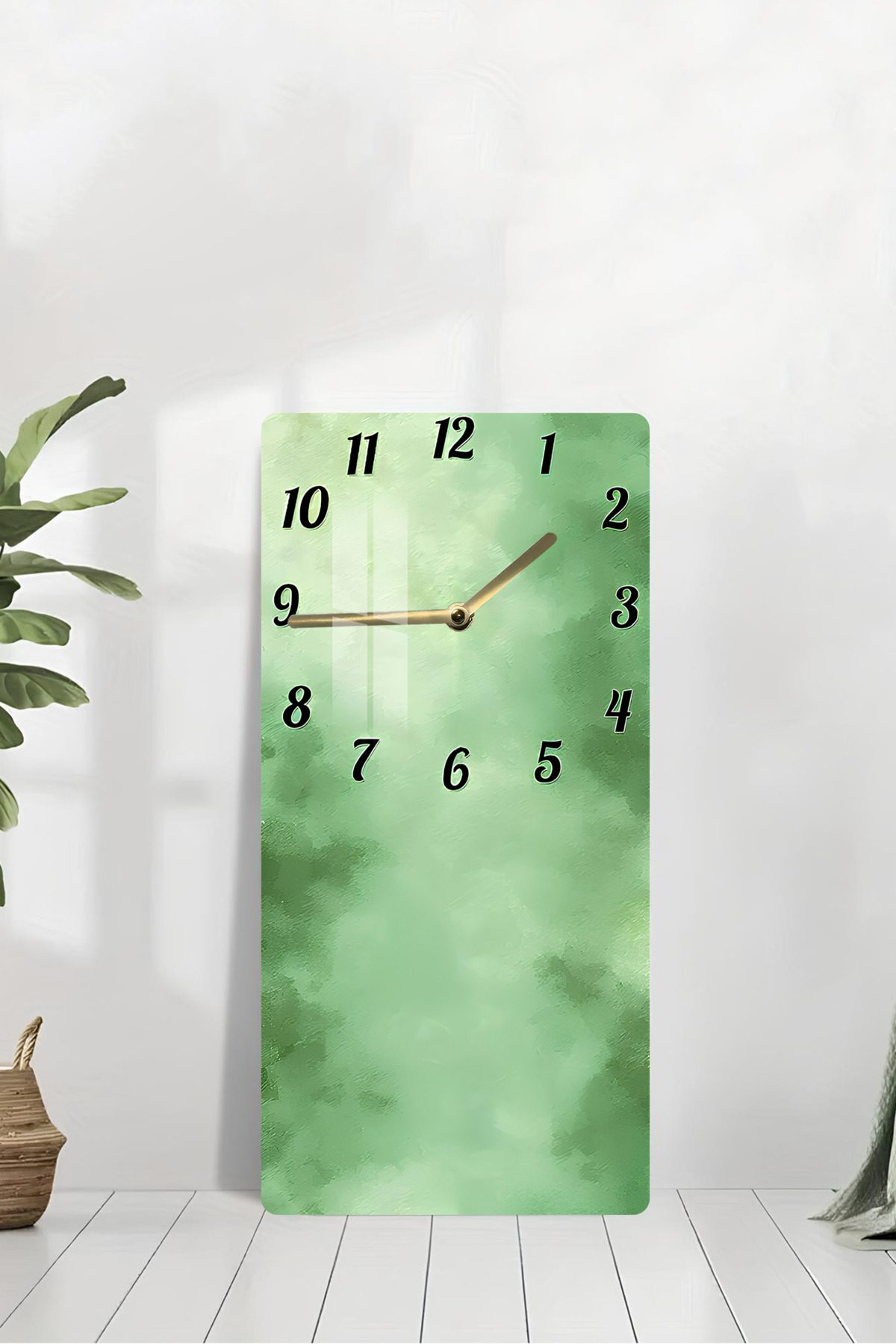 Yeşil Doku Desenli Temperli Cam Tablo Saat – 33x33 cm | HD UV Baskı– CUSD084
