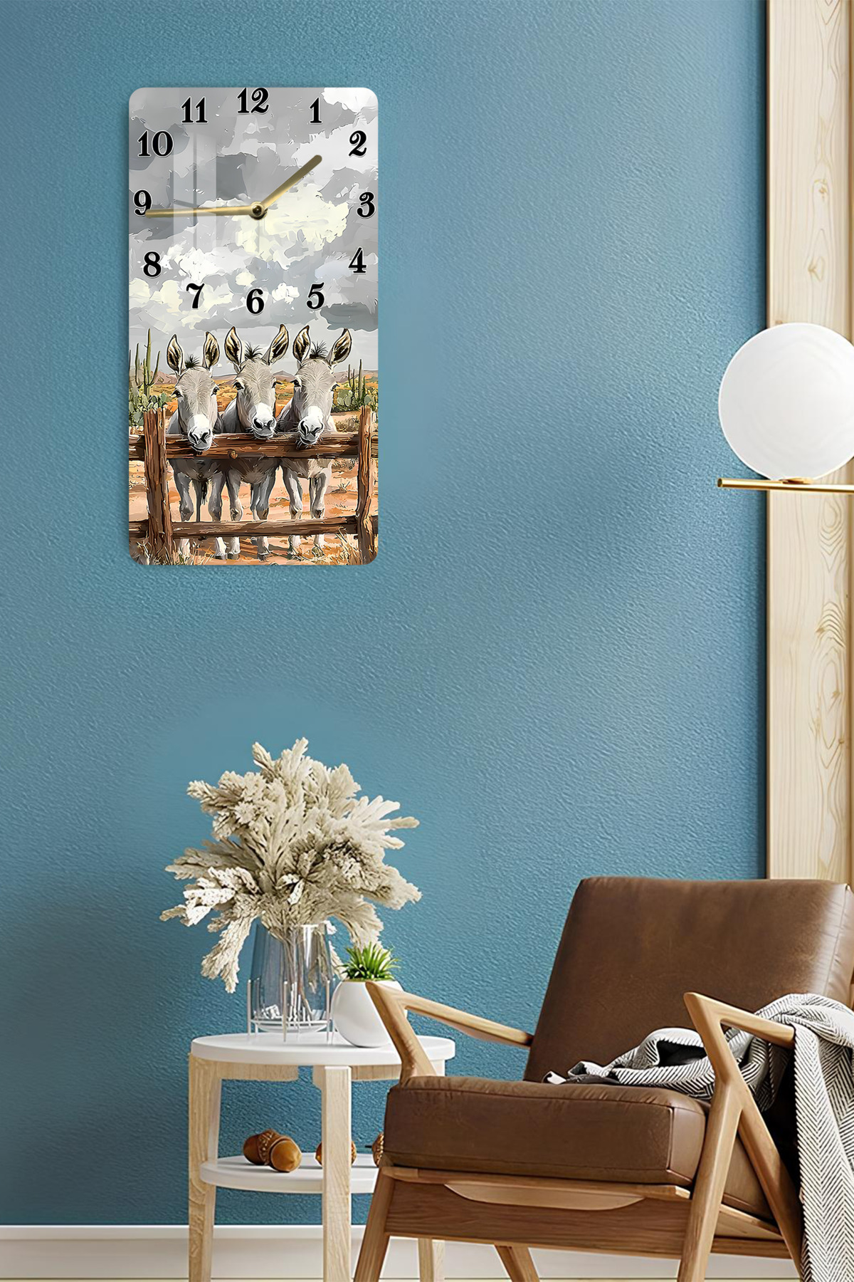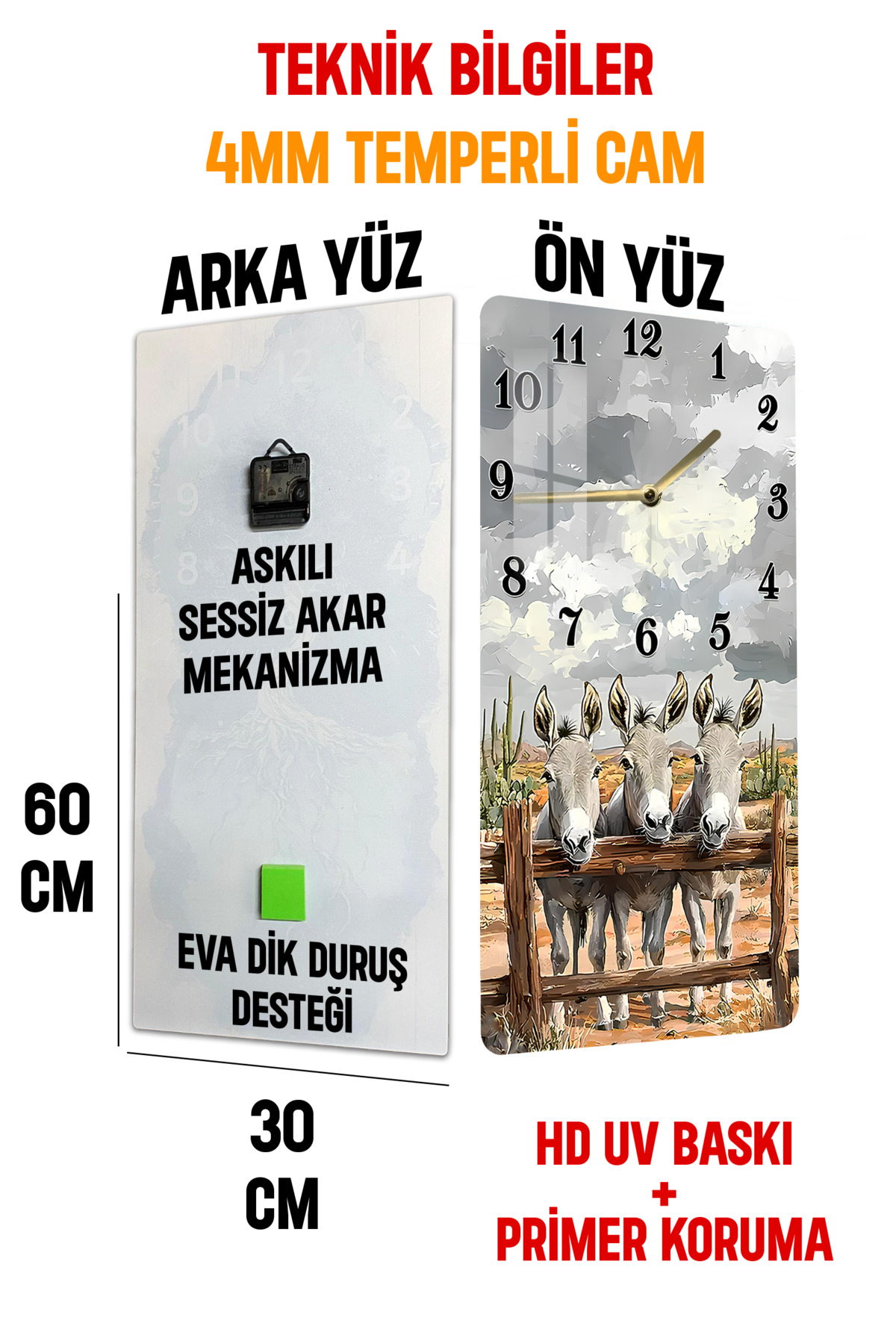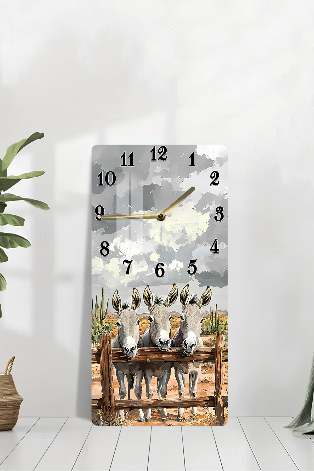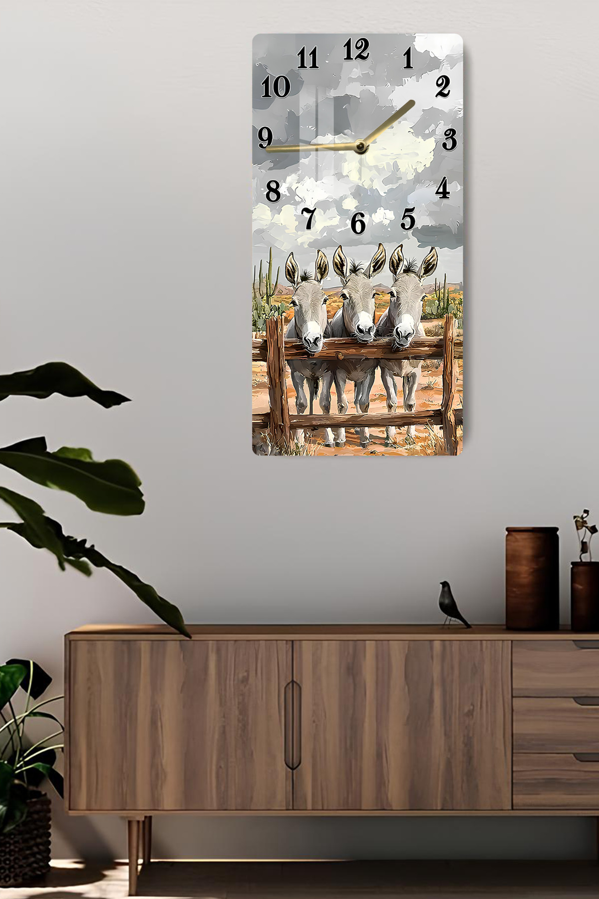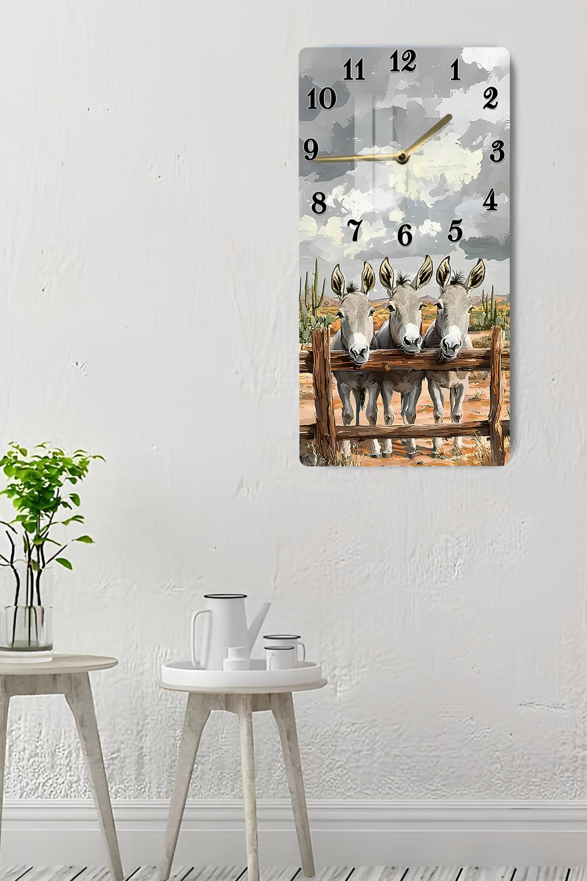 3 Sevimli Eşek Desenli Temperli Cam Tablo Saat – 33x33 cm | HD UV Baskı– CUSD088