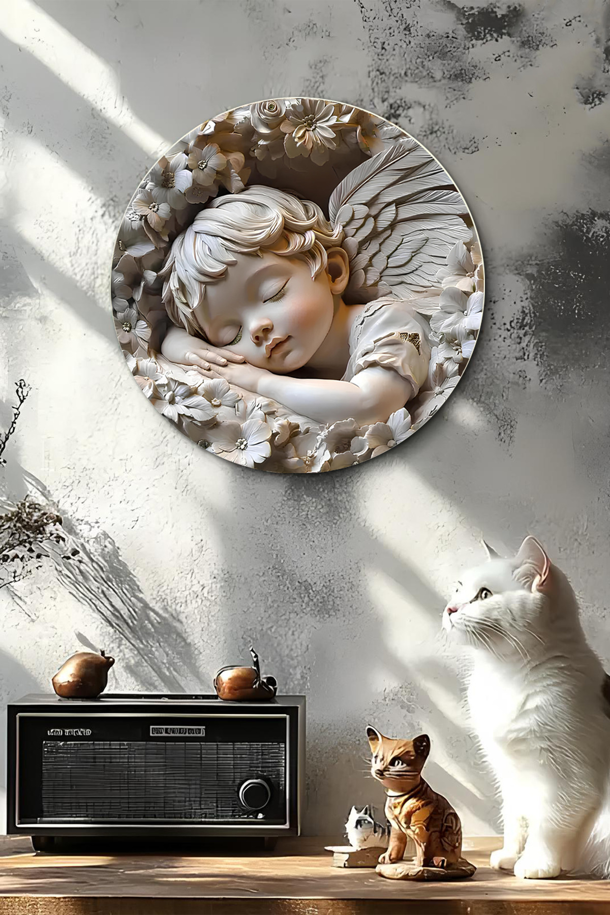 👼 Melek Figürlü Ahşap Duvar Süsü – 20x20 cm | MDF 3D Görünümlü Dekoratif Süs 🌼🌸 DT061