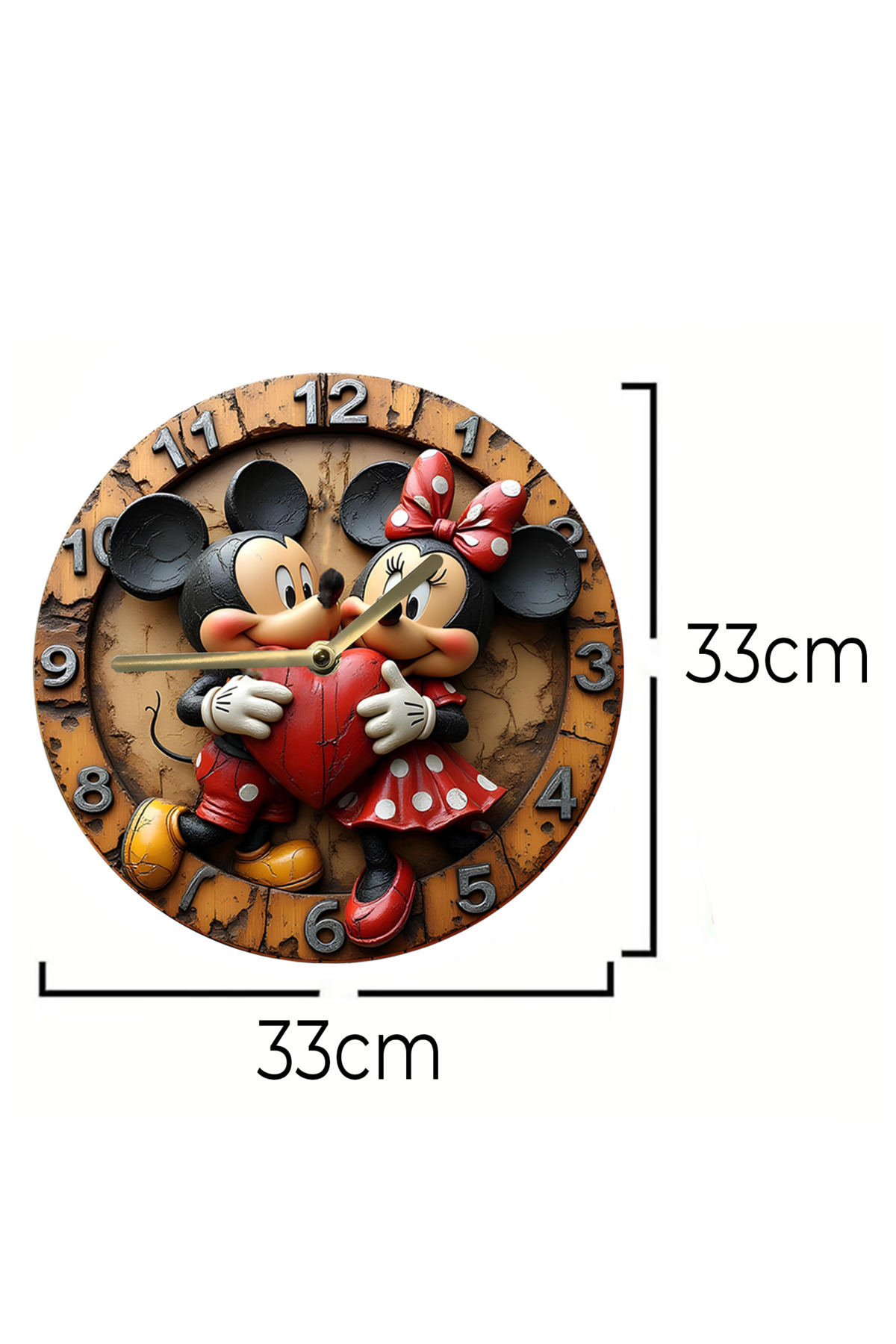 Mickey ve Minnie Temalı MDF Duvar Saati – 33 cm, 3D Görünümlü, 2D HD Baskı sdw232
