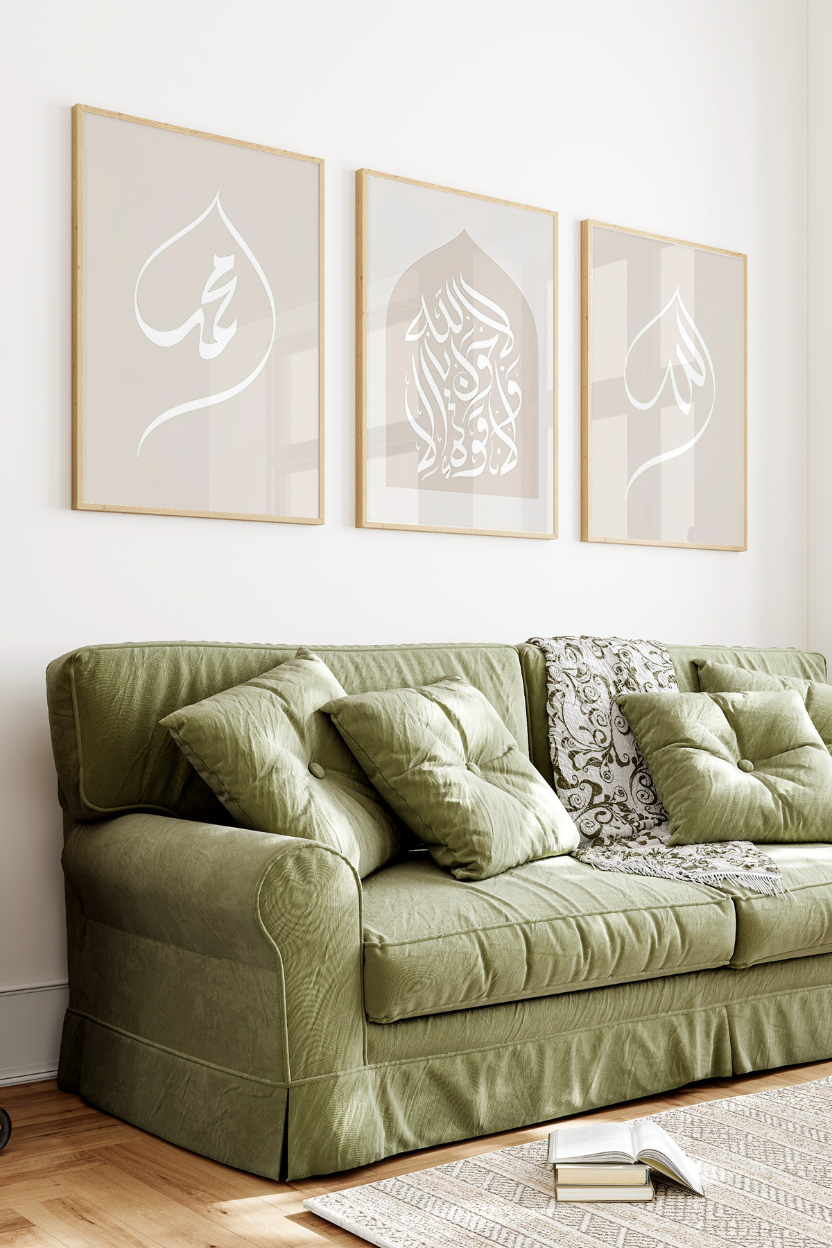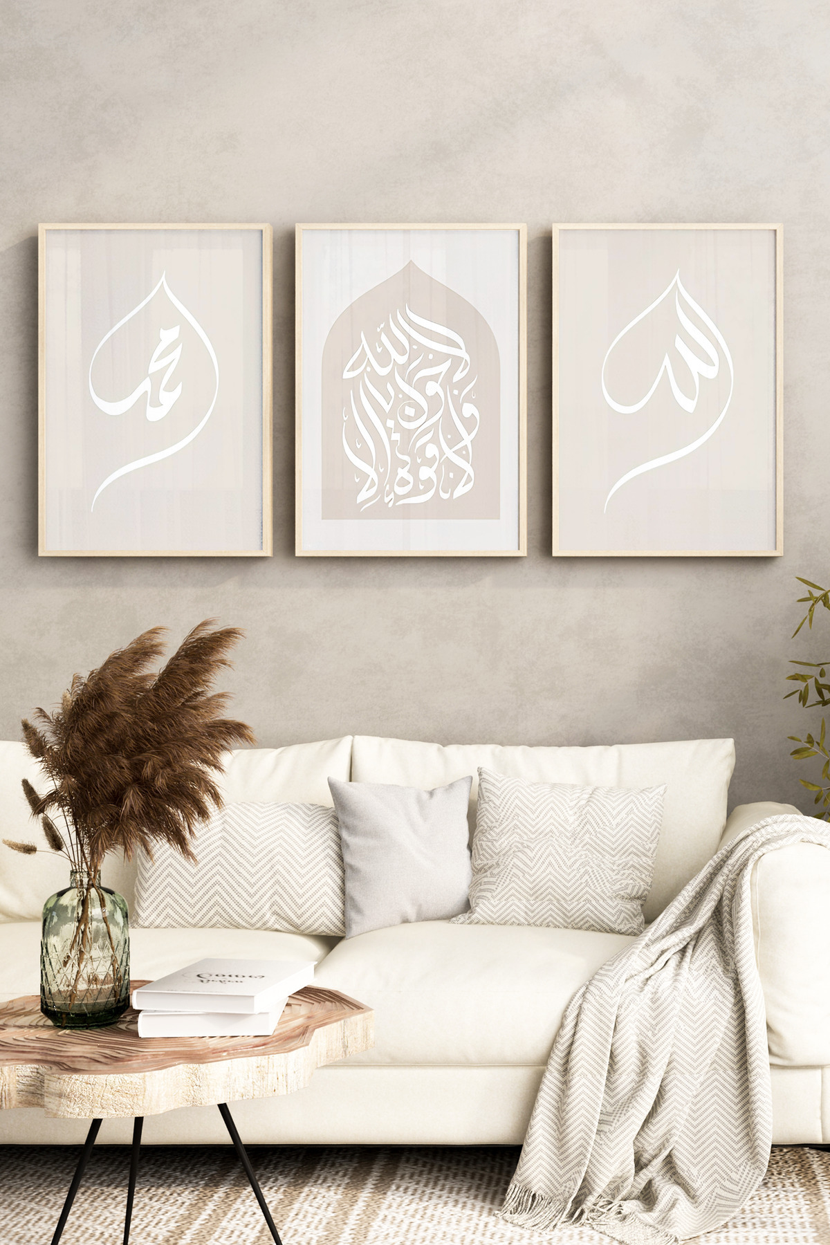 🌙 Minimal Hat Yazılı Çam Çerçeveli İslami 3'lü Tablo Seti 🖼️ CRV1184