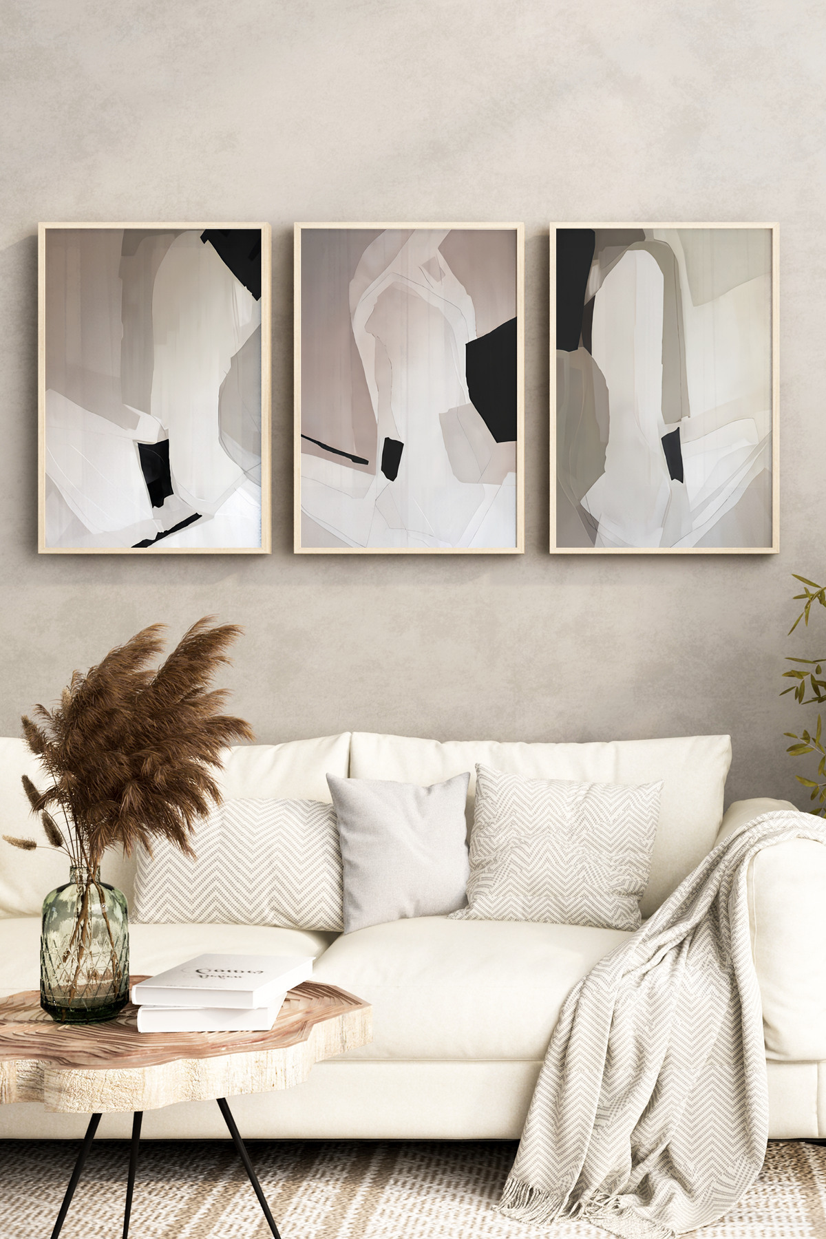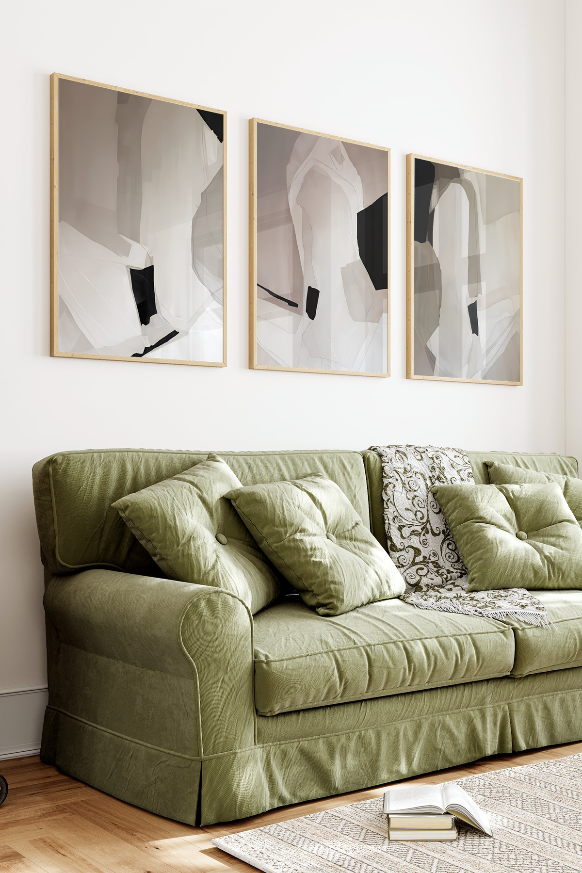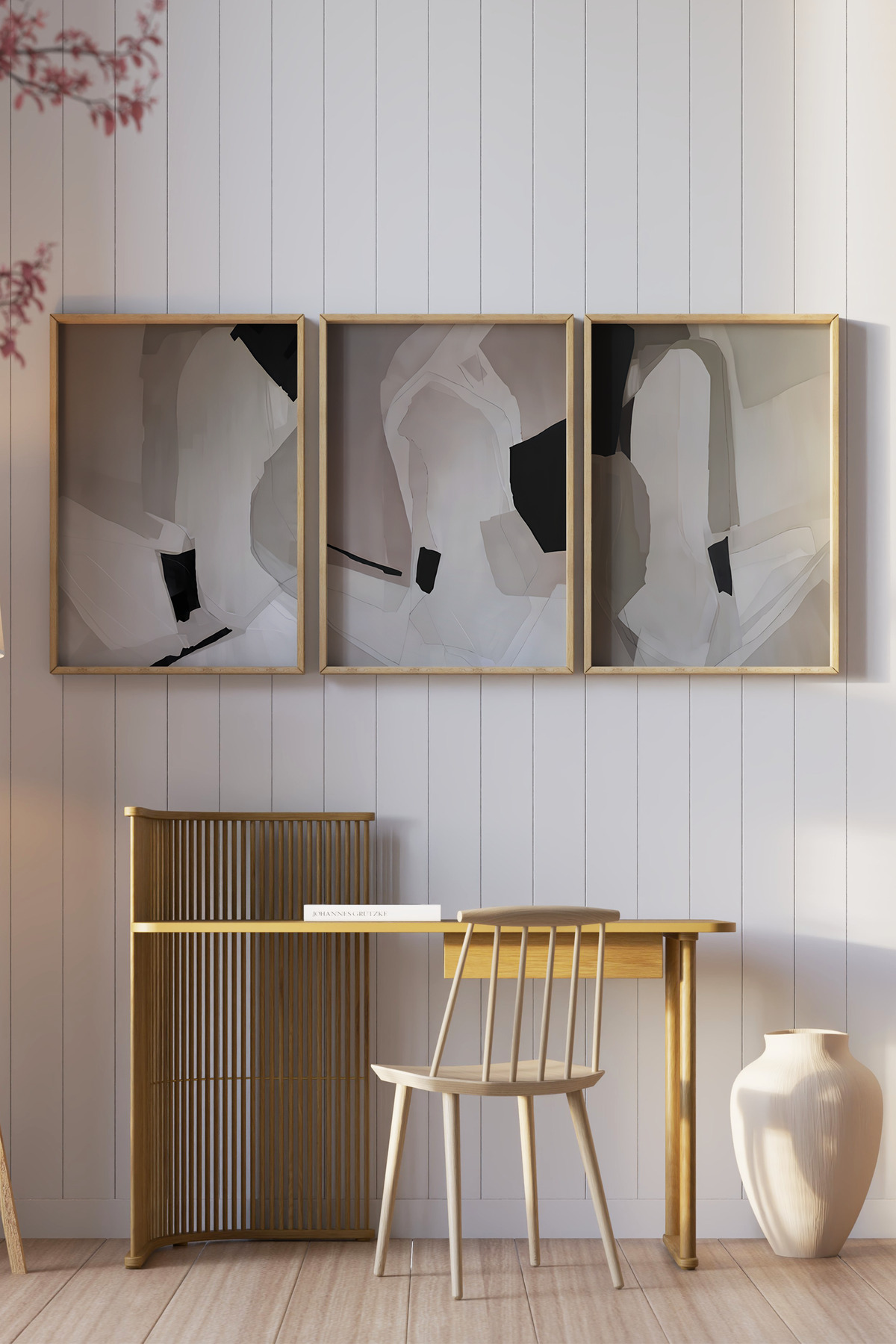 🖼️ Modern Tarzda Soyut Desenli 3'lü Ahşap Çerçeveli Tablo Seti🌿 CRV1144
