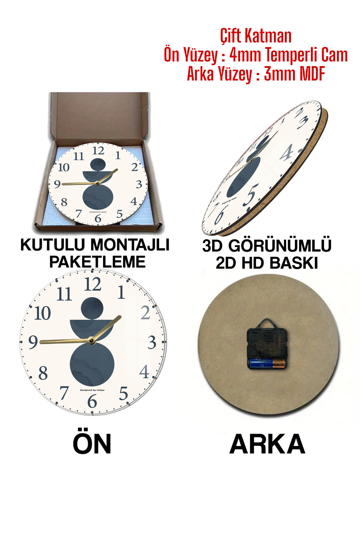 Modern Tasarımıyla Öne Çıkan Tasarım 3D Görünümlü Temperli Cam Saat – 33 cm CSDW038