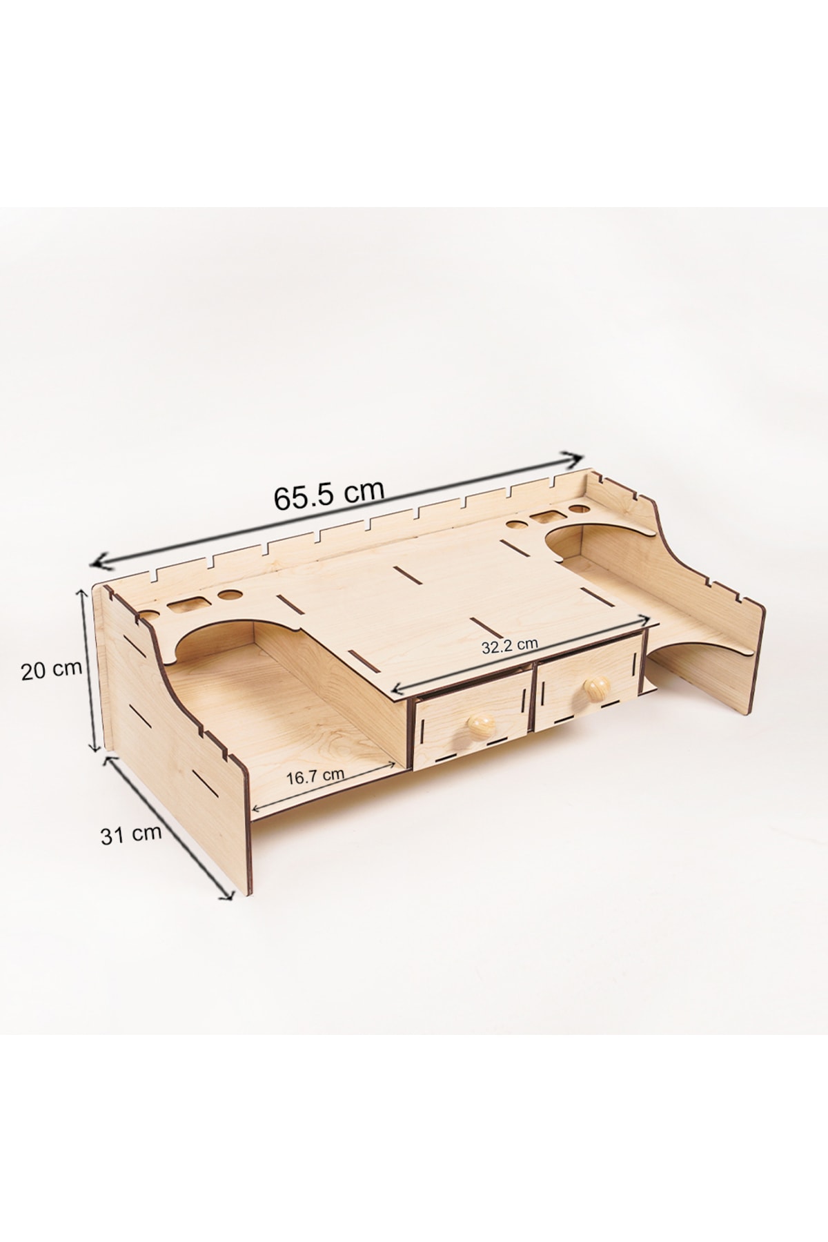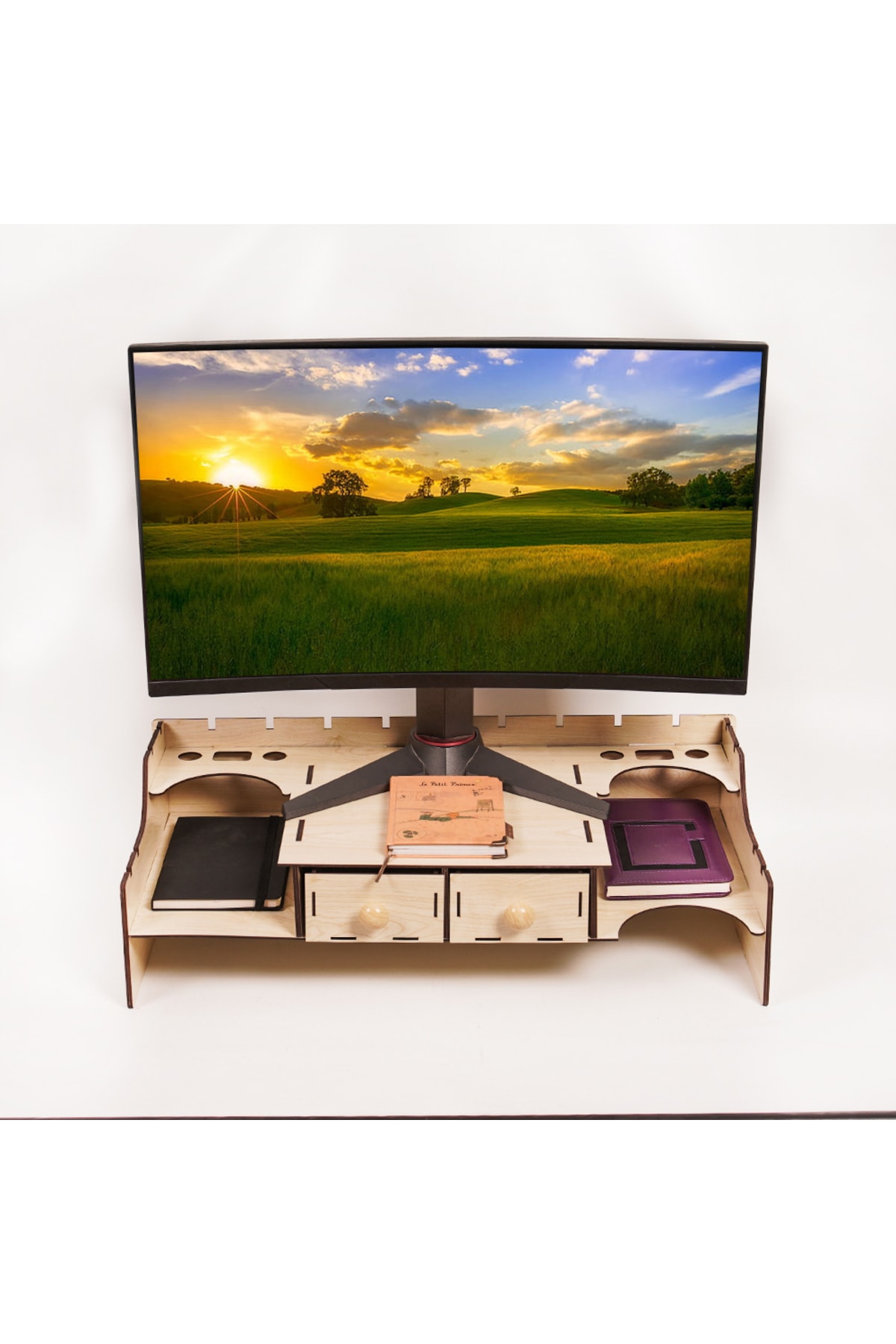 Monitör Yükseltici Masaüstü Organizer Kalemlik Akçaağaç Montajı Yapılmış