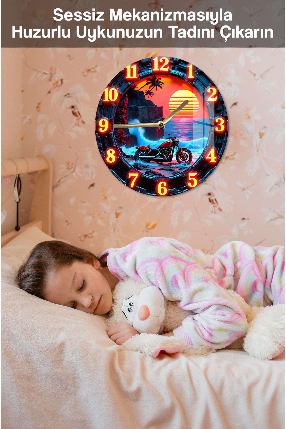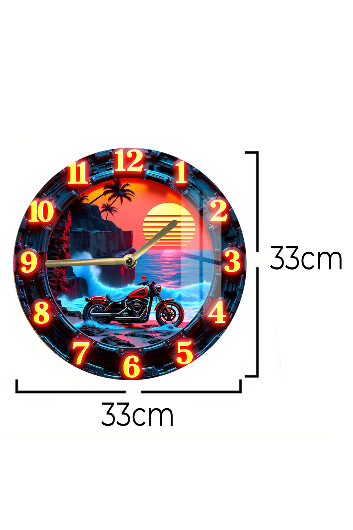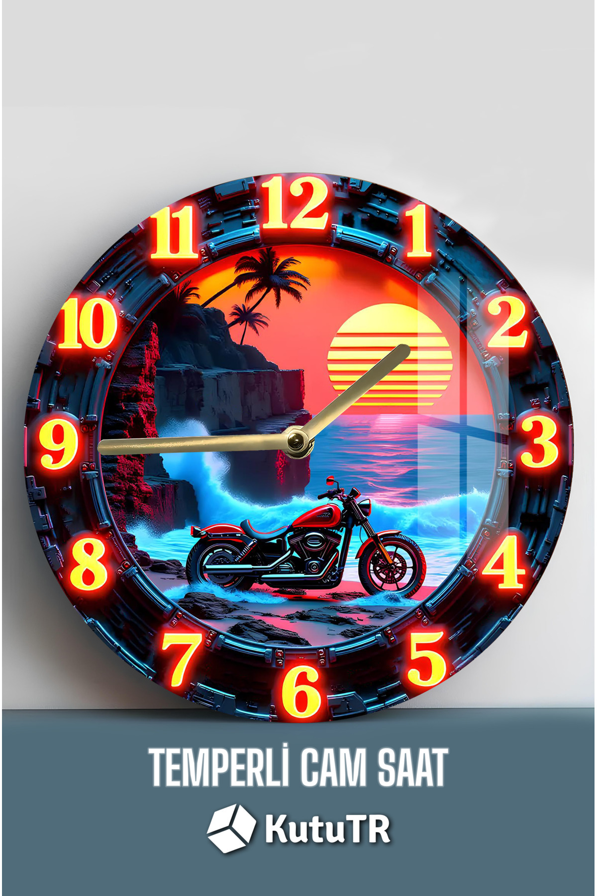 Motosiklet Temalı Şık Tasarım 3D Görünümlü Temperli Cam Saat – 33 cm CSDW051