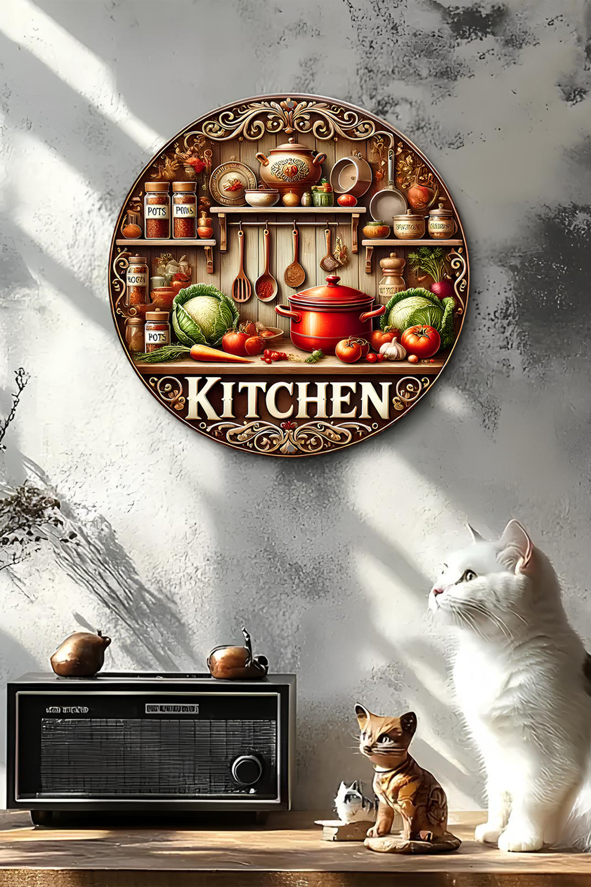 📌 Mutfak Temalı Yuvarlak Ahşap Duvar Süsü – Renkli & Şık Dekoratif Tasarım! 🍅🍲🥬 DT068