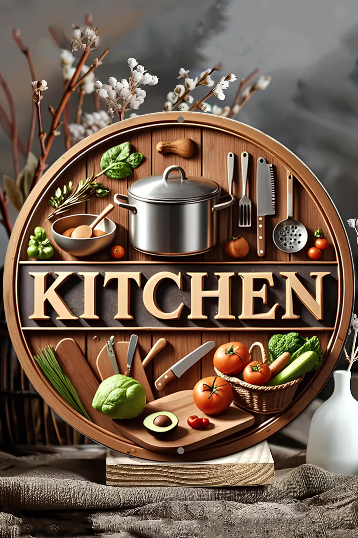 🍅 Mutfakta Şıklık ve Neşe Bir Arada! 🍳 "KITCHEN" Temalı Ahşap Duvar Süsü 🌿🌸 DT063