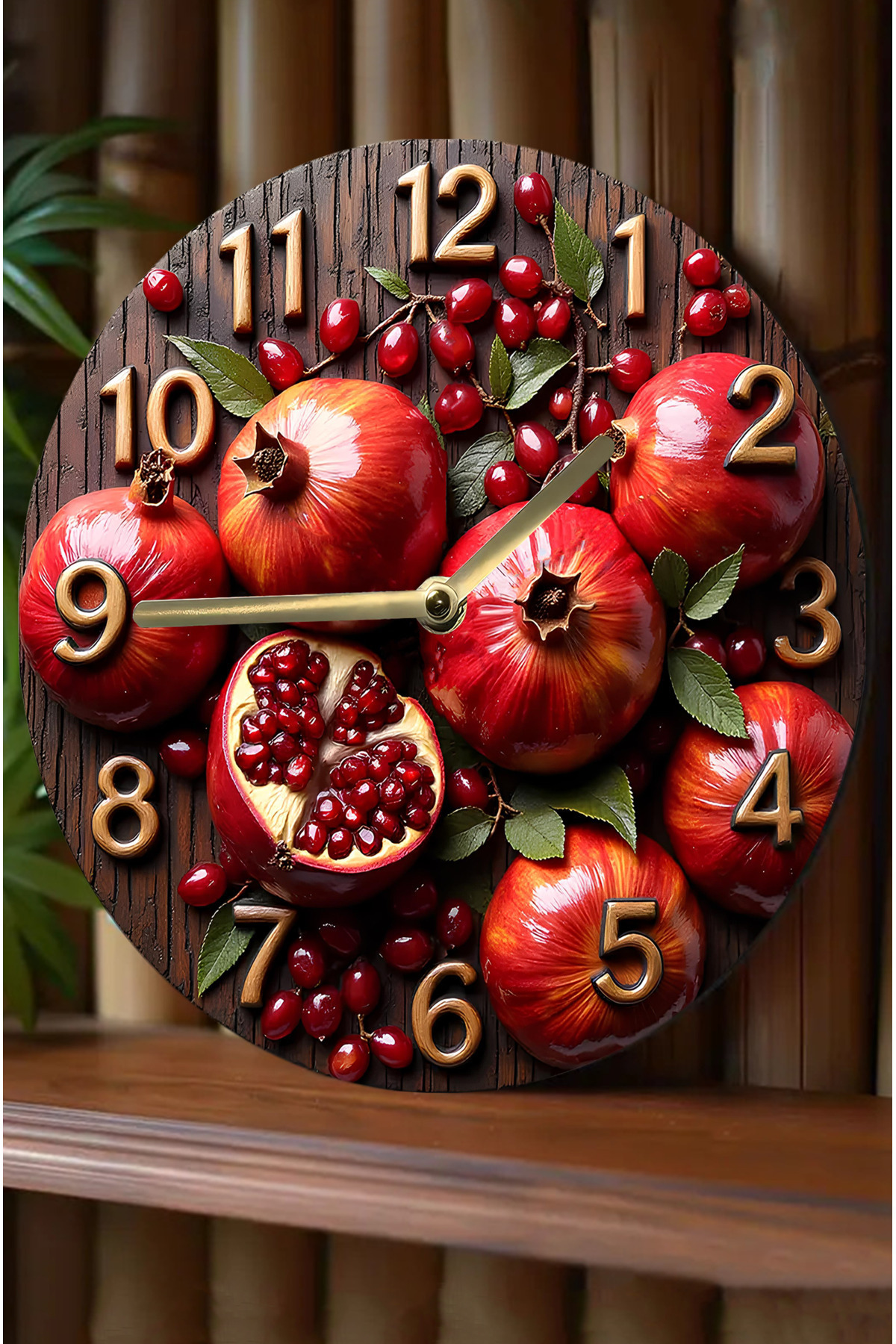 🕰️ Nar Temalı 3D Görünümlü MDF Duvar Saati – 33 cm | UV Baskılı Modern Tasarım SDW345