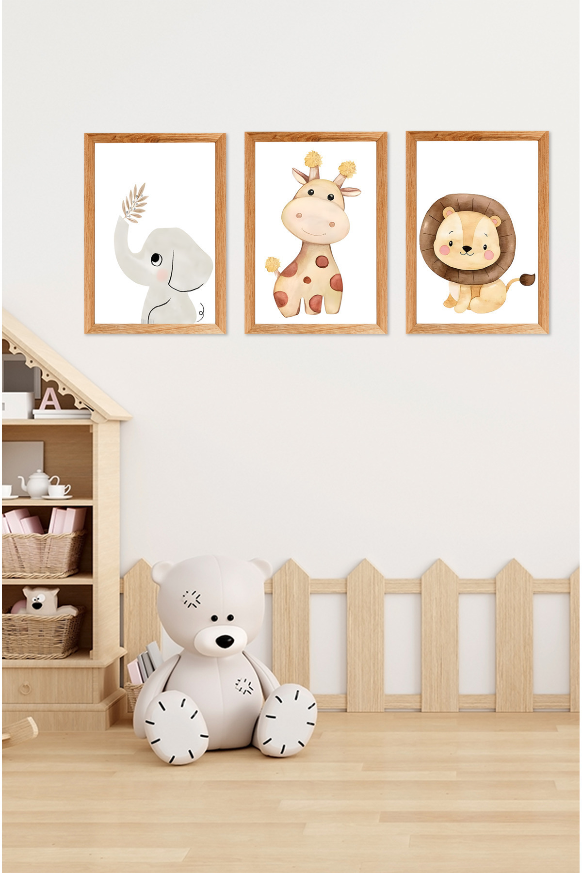 Notpa 3' Lü Tablo Set Çocuk Odası Fil,zürafa,aslan