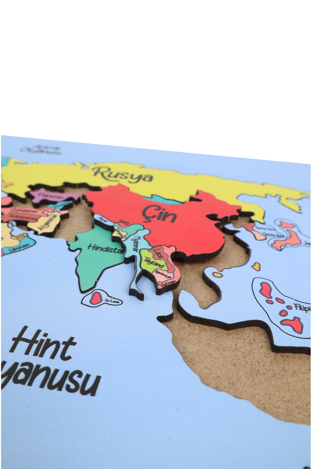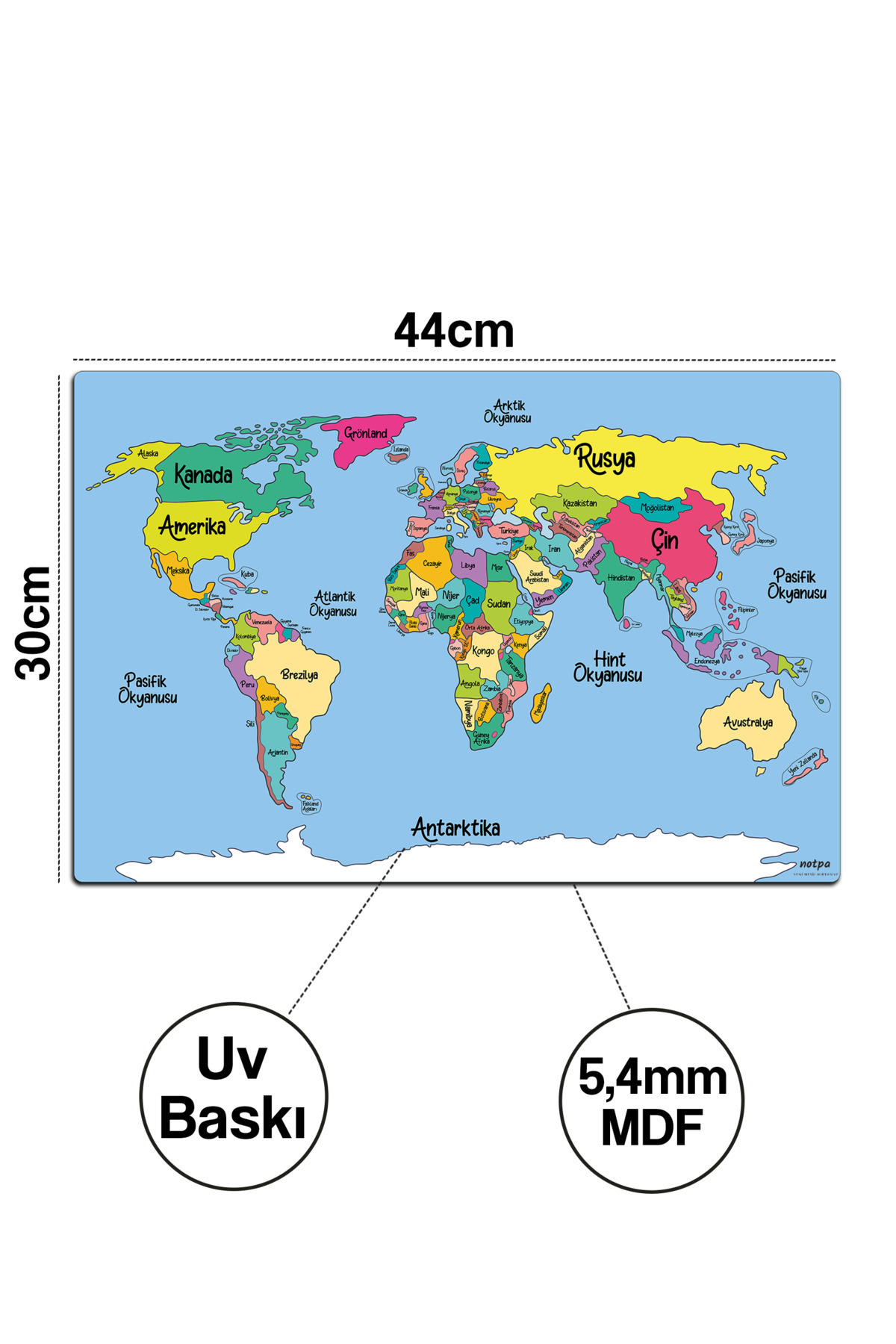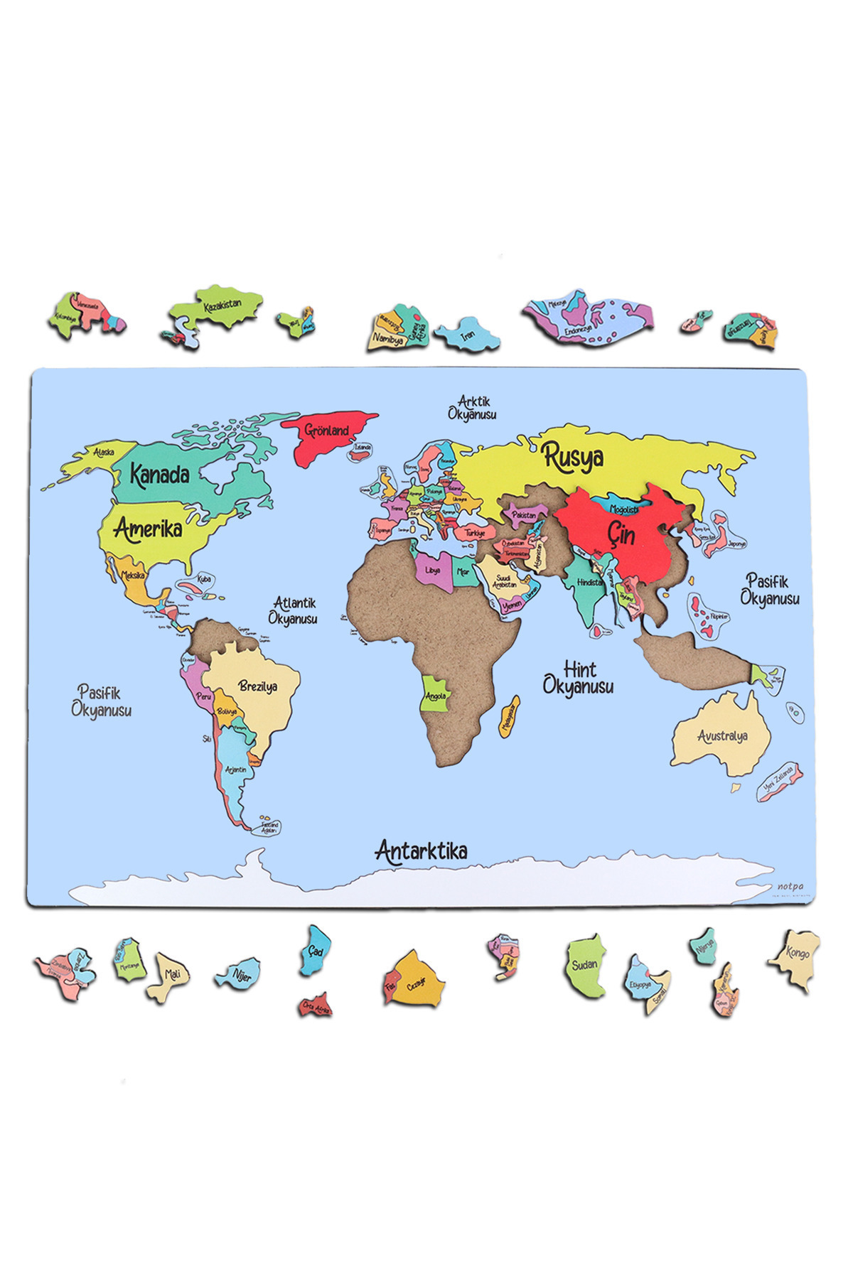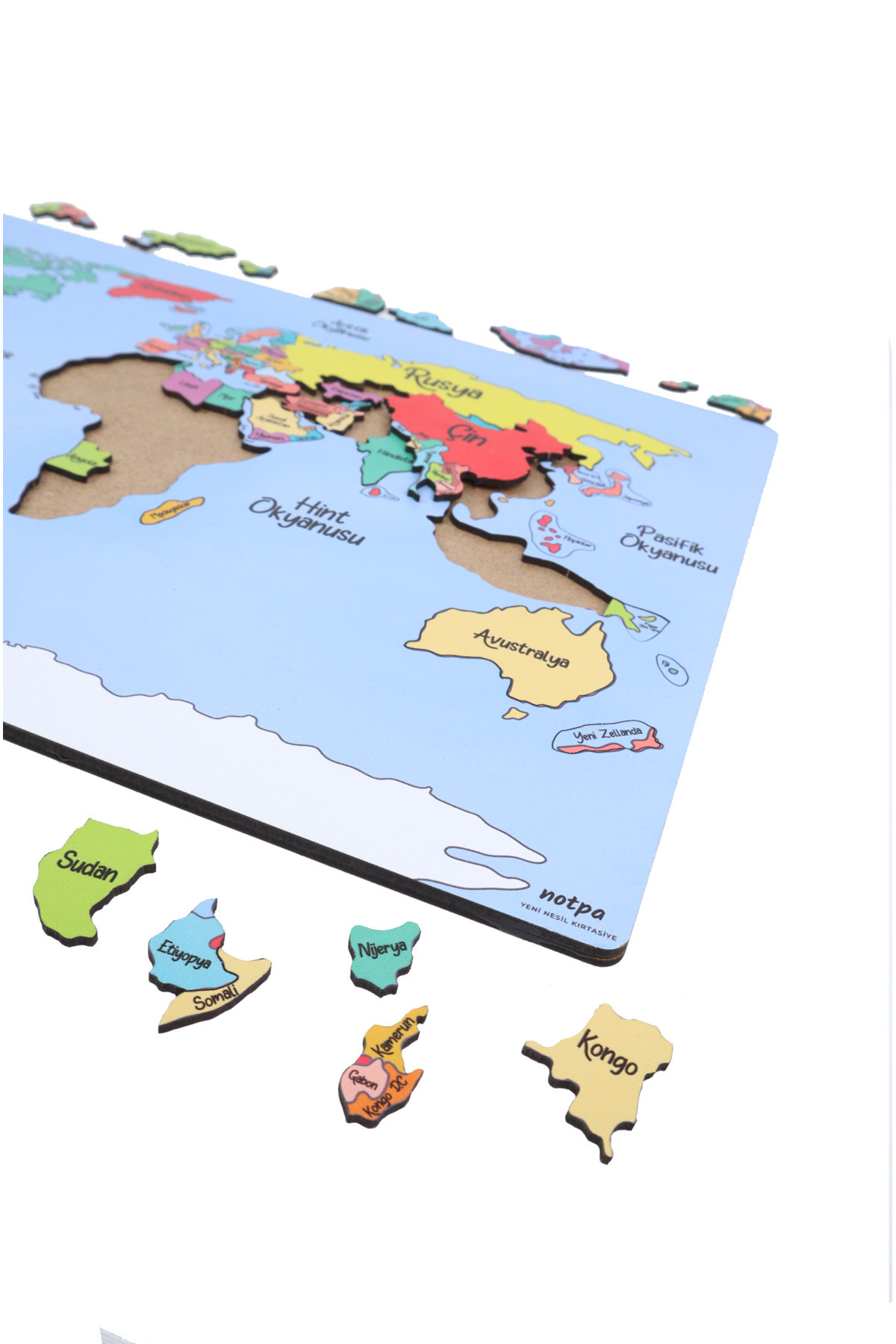 Notpa Ahşap Renkli Dünya Haritası Puzzle 5 Yaş Ve Yetişkinler Için Yapboz 30x44 cm