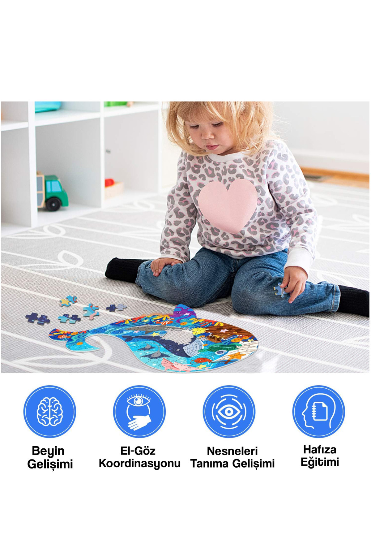 Notpa Ahşap Renkli Hayvanlar Serisi Balina Puzzle 5 Yaş Ve Yetişkinler Için Yapboz 30x47cm