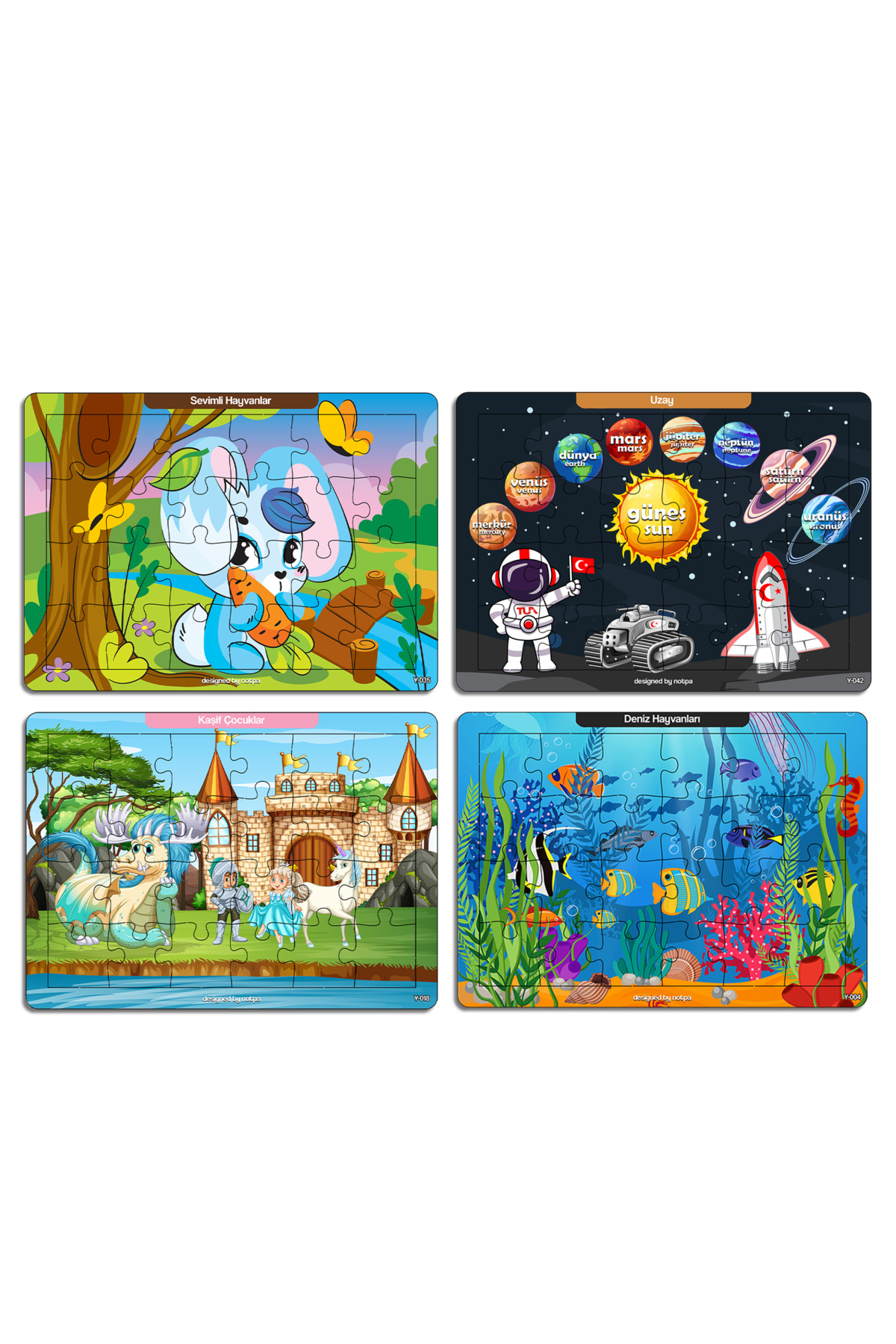 Notpa Çocuklar Için Eğitici Ve Öğretici Ahşap 24 Parça Renkli Puzzle 4lü Set 12