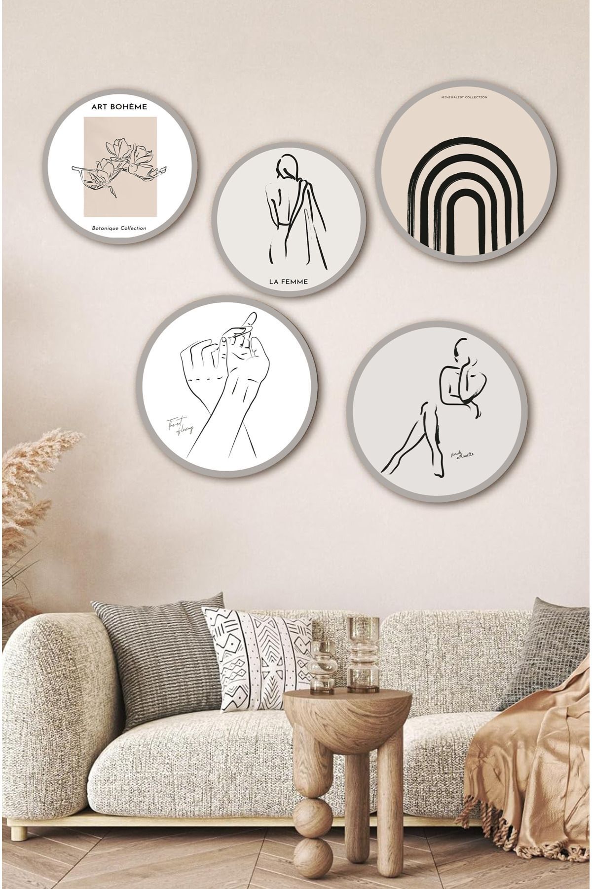 Notpa Dekorize Mdf 5 Parça Çerçeve Görünümlü Tablo Set 5004