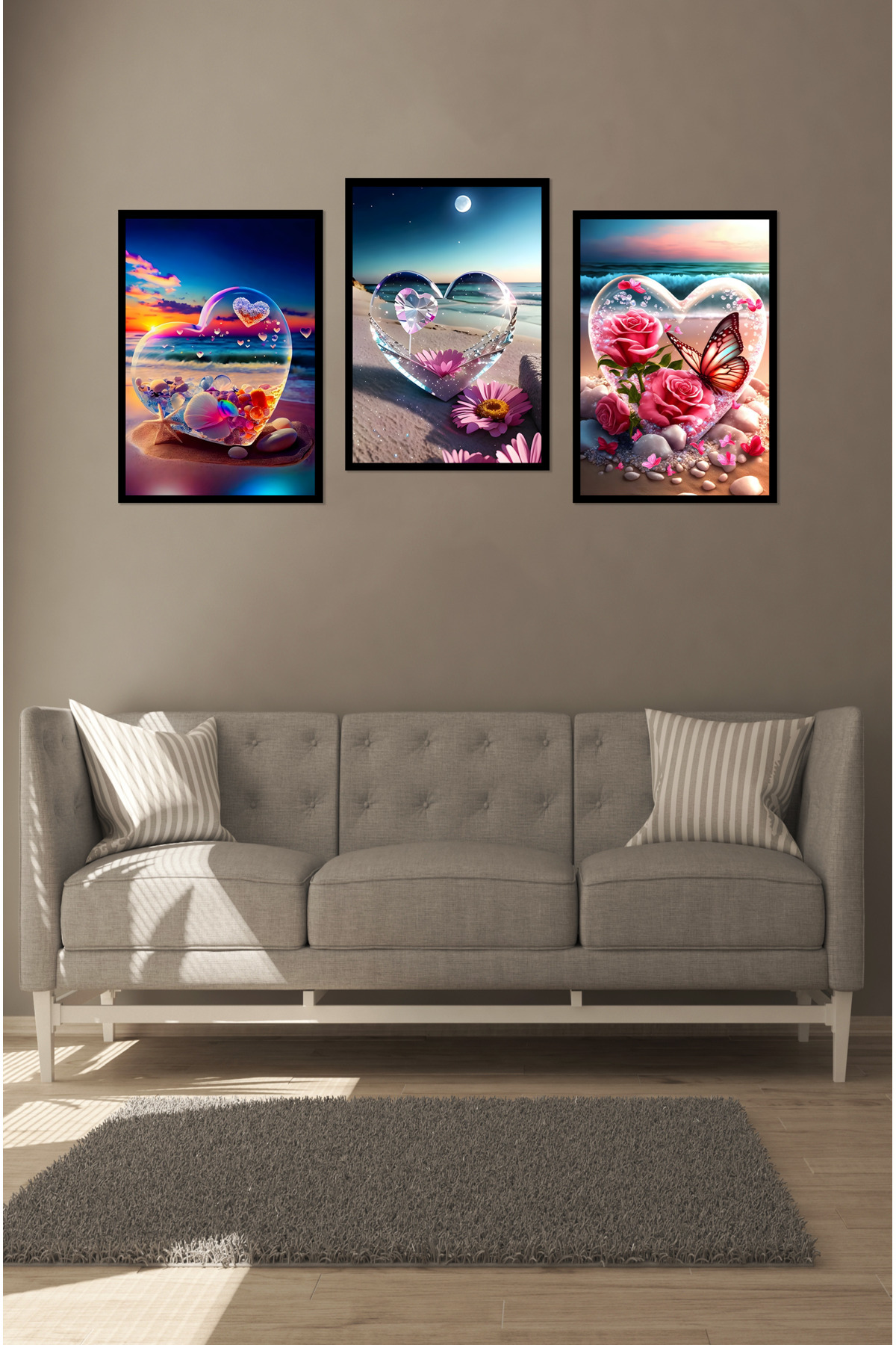 Notpa Düşler Sahili 3'lü Dekoratif Tablo Seti 21x30 Kalp