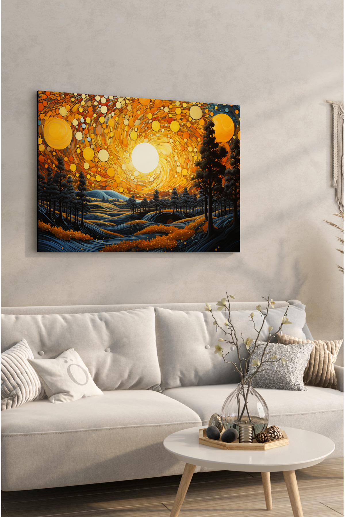 Notpa Güneş ve Orman Pastel Tablo Çalışması Kanvas Tablo UV Baskı