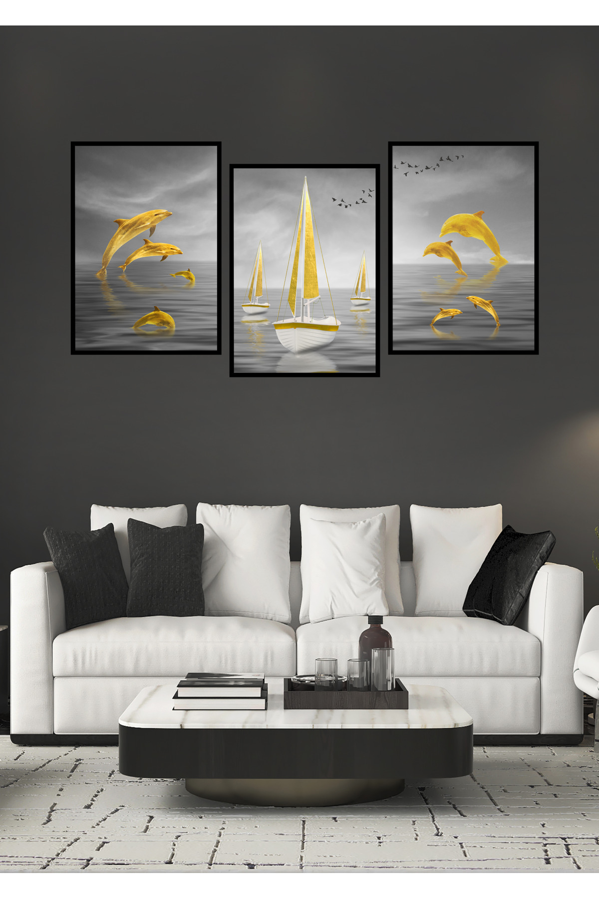 Notpa Salon Oturma Odası I?çin Duvar Dekoru Dekorize Mdf Tablo Seti 3 Parça 3 Mm