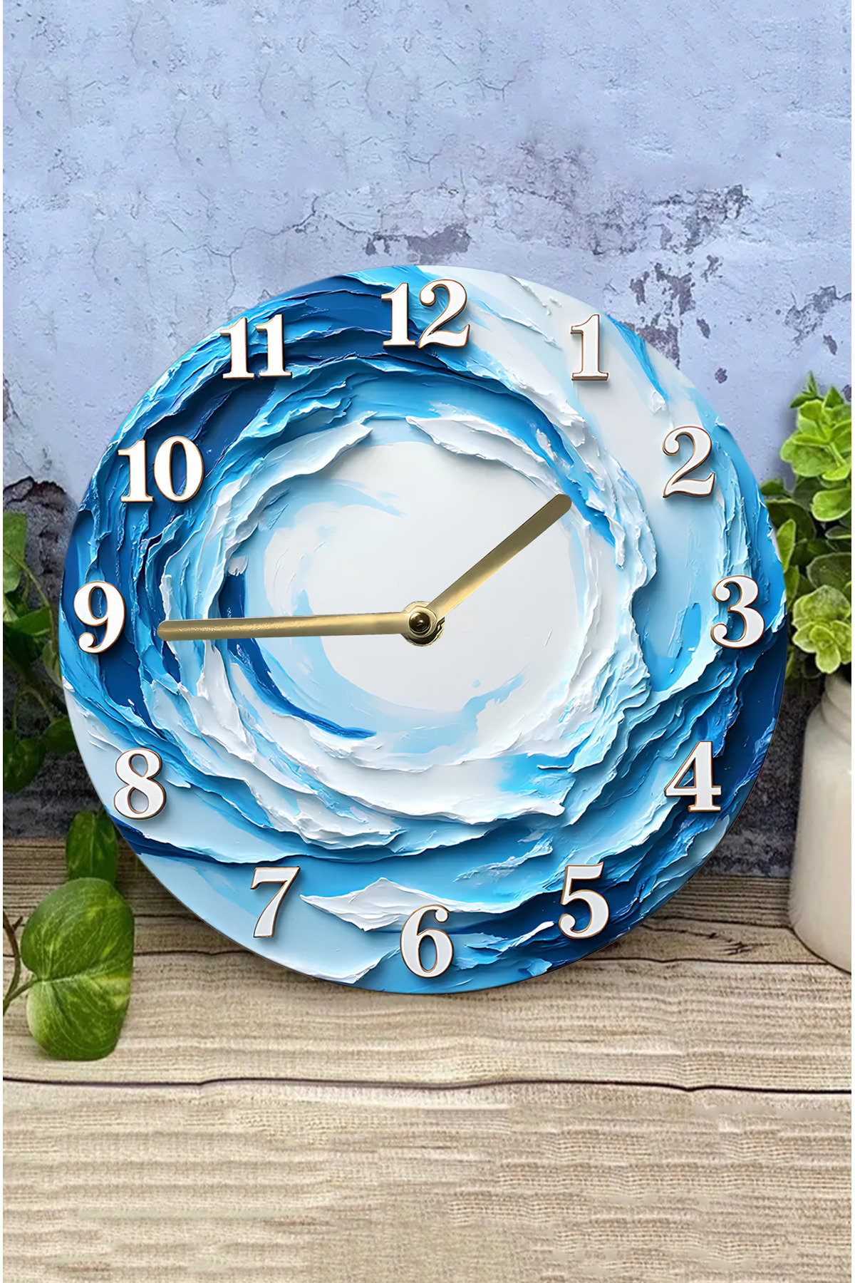 🌀 "Okyanus Dalgası" 3D Görünümlü MDF Duvar Saati – 33 cm sdw296