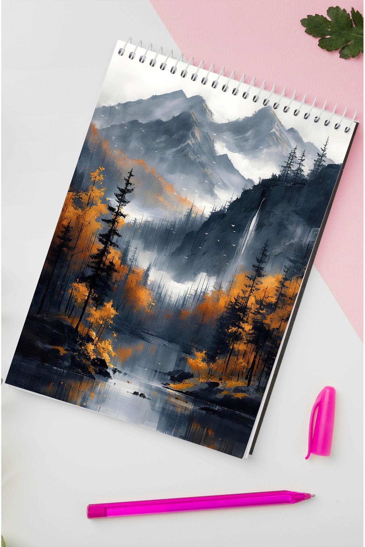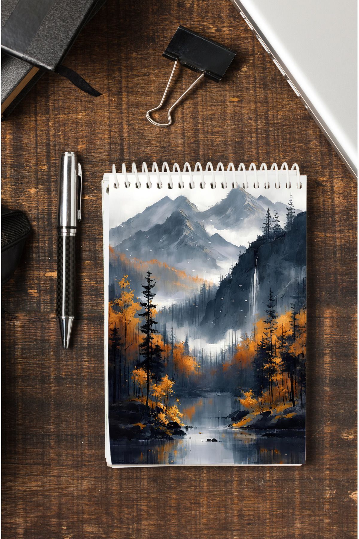 Orman Desenli Ahşap Mdf Kapaklı 80 Yaprak Çizgili 14x21 Vip Bloknot 70gr/m2 Ç-OB16